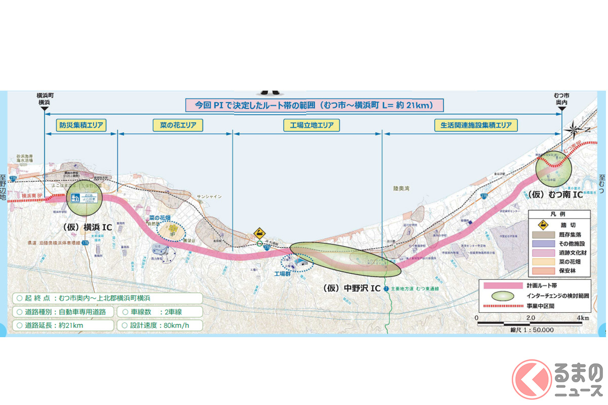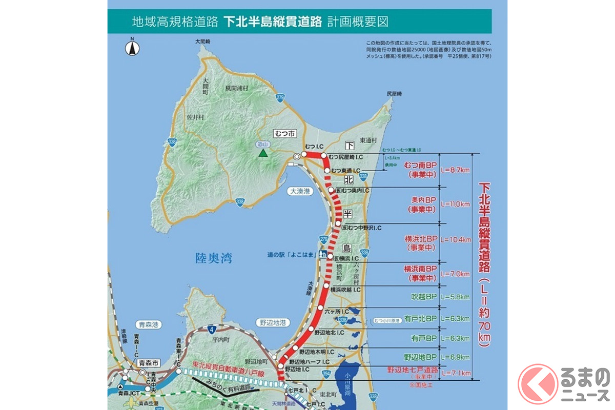 本州最北の「横浜」に「14kmのバイパス」完成! 「新幹線アクセス」&フェリー利用も可能に!? 青森の「右腕」下北半島を“縦断”の「下北道」 開通に前進