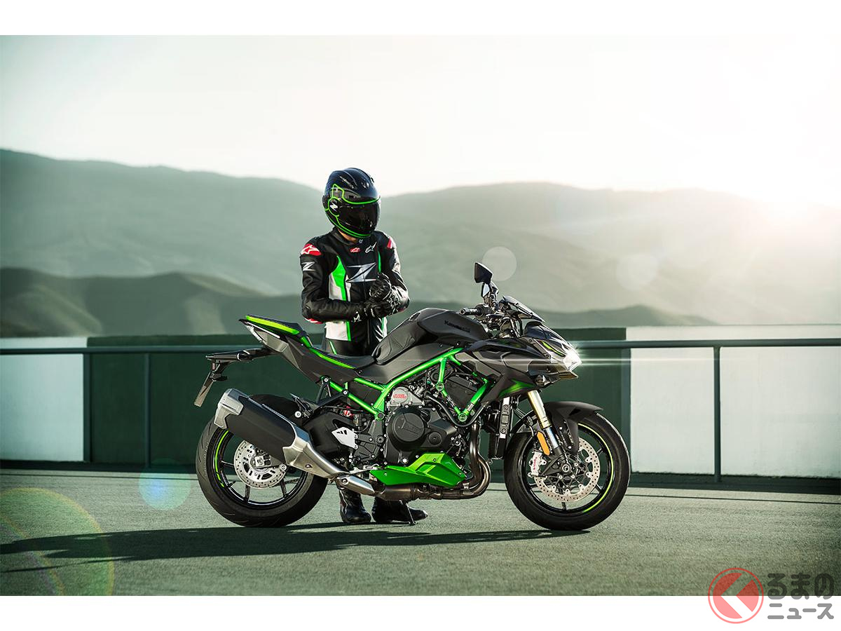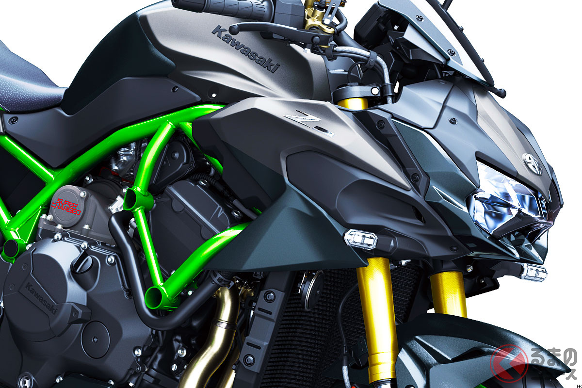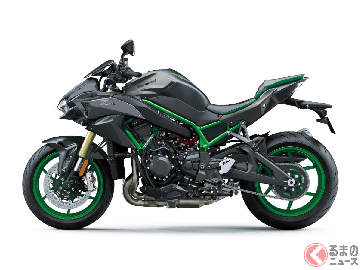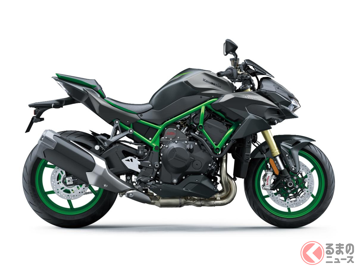 カワサキ新「爆速スポーツモデル」発表! 超パワフルな「スーパーチャージャー」&“大排気量エンジン”搭載! 新たに「鮮烈グリーン」採用した“過給機”搭載バイク「新Z H2 SE」とは!