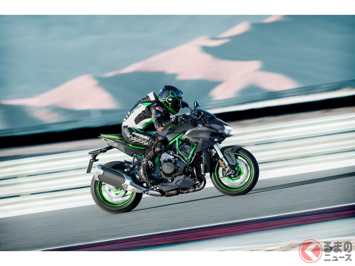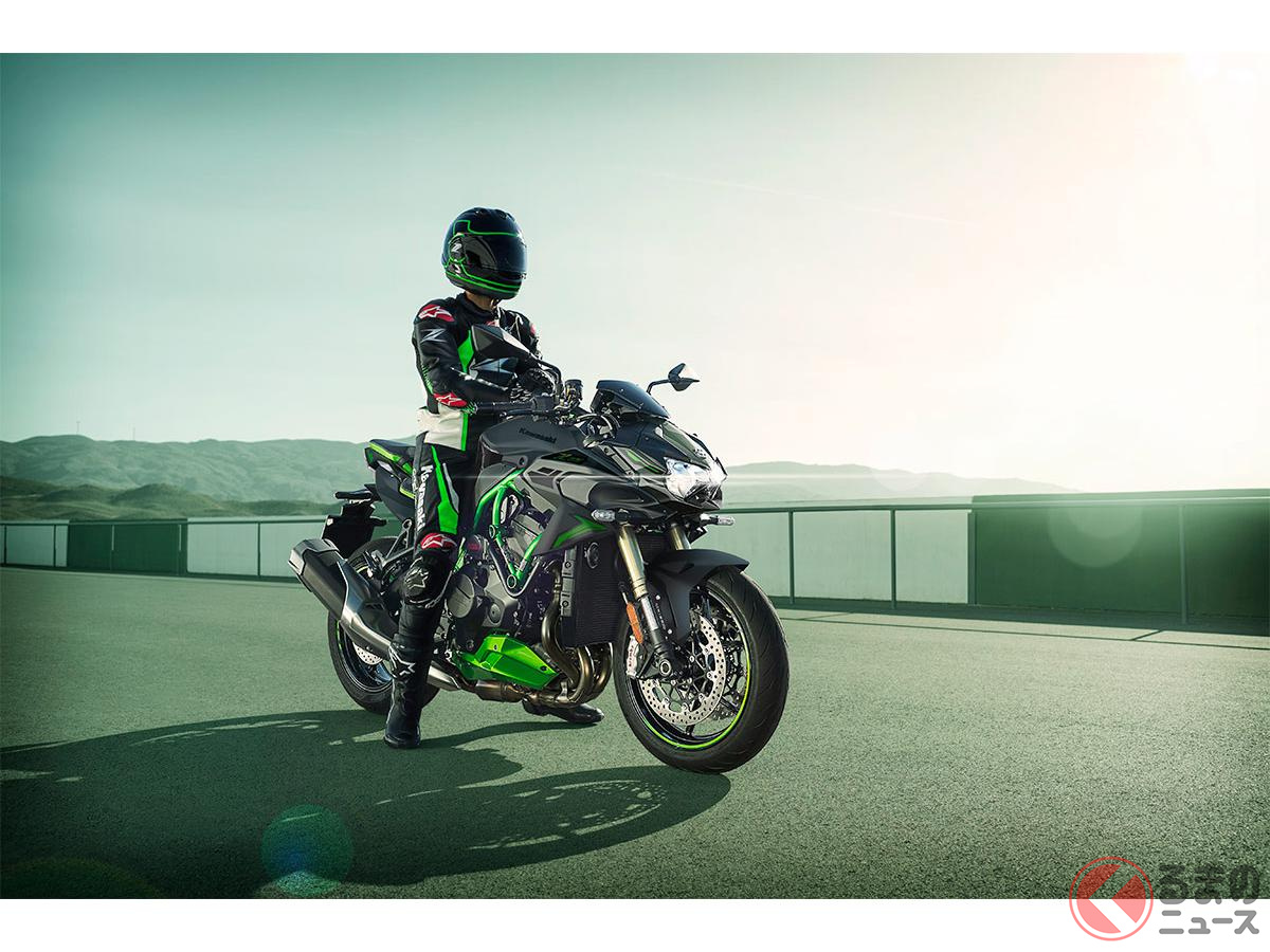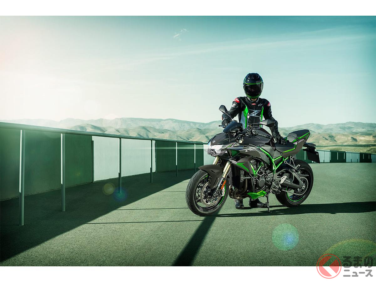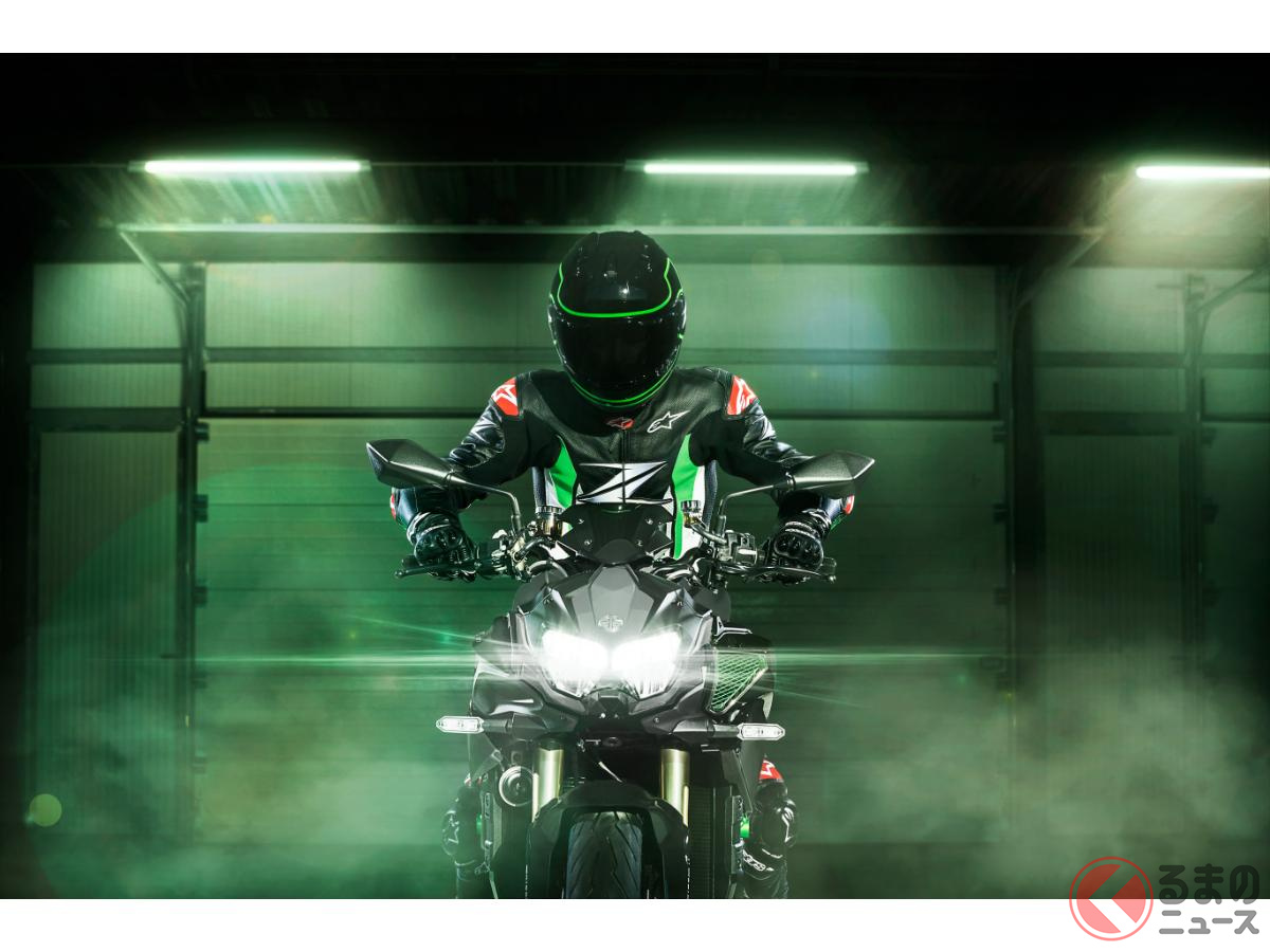 カワサキ新「爆速スポーツモデル」発表! 超パワフルな「スーパーチャージャー」&“大排気量エンジン”搭載! 新たに「鮮烈グリーン」採用した“過給機”搭載バイク「新Z H2 SE」とは!