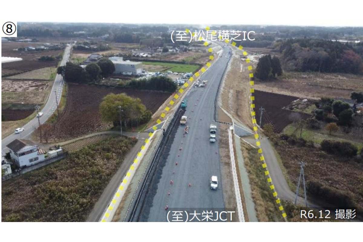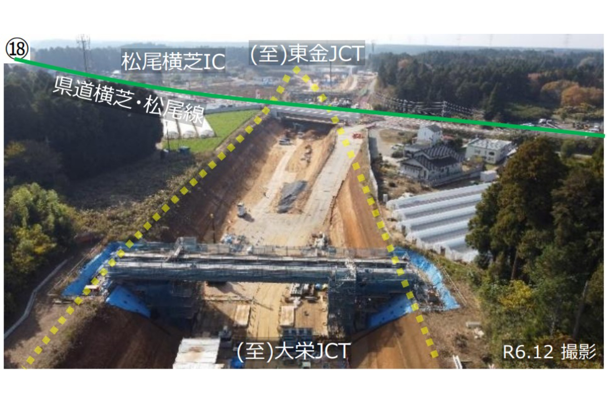 千葉県区間の圏央道は約95kmあるうち、約8割が開通しています。残った未開通区間の大栄JCTから松尾横芝ICまでは現在工事が進行中です。工事はどのくらい進んでいるのでしょうか。