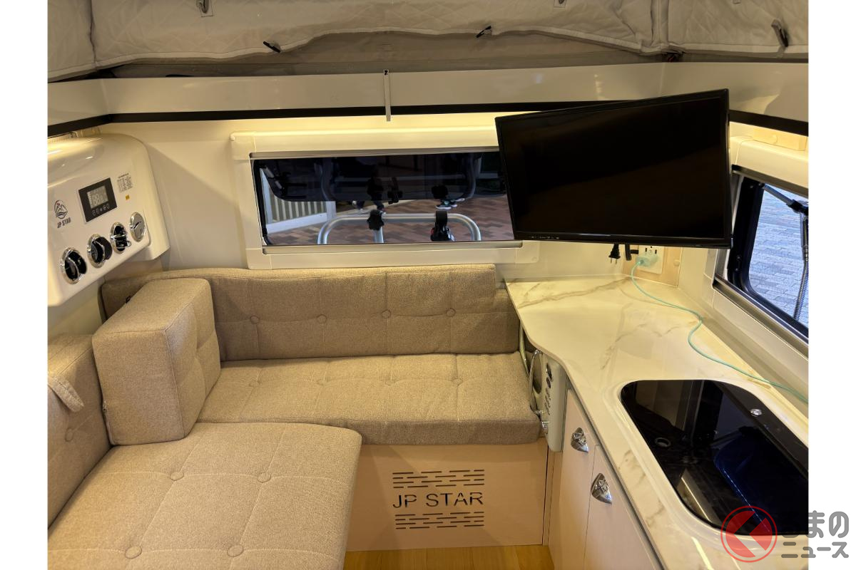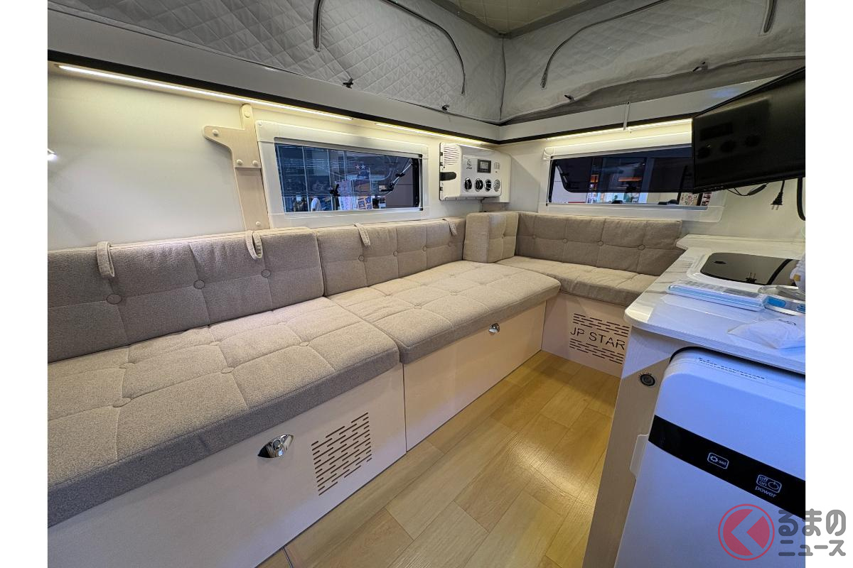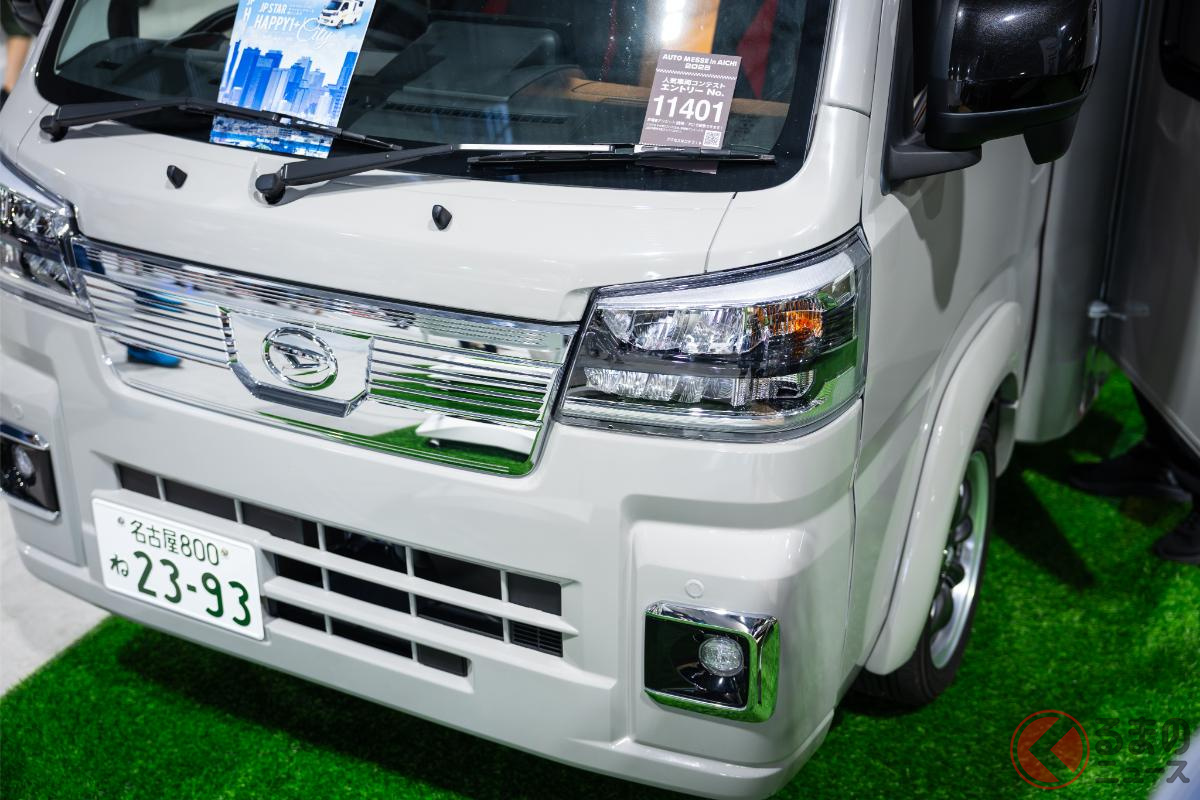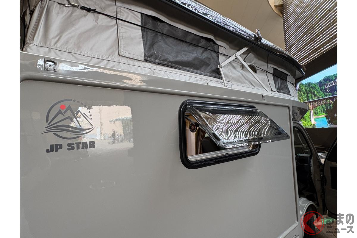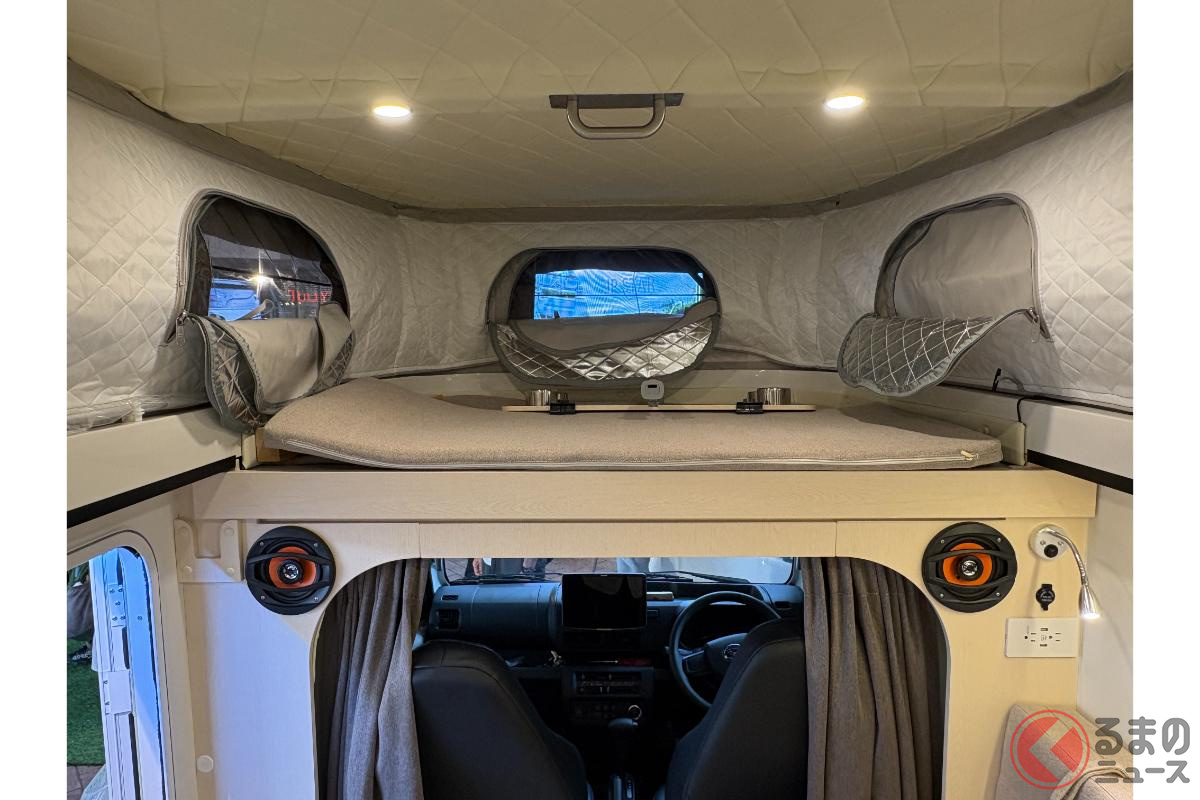 400万円! 4人乗れる「“軽規格超え”軽トラ」Happy1+ city TYOに反響多数! ダイハツ「ハイゼットトラック」ベースの「超広々仕様」に「YouTubeでみた!」「見た目より広そう」の声も! 4人寝られるJP STARキャンパー展示に“熱視線”集まる!