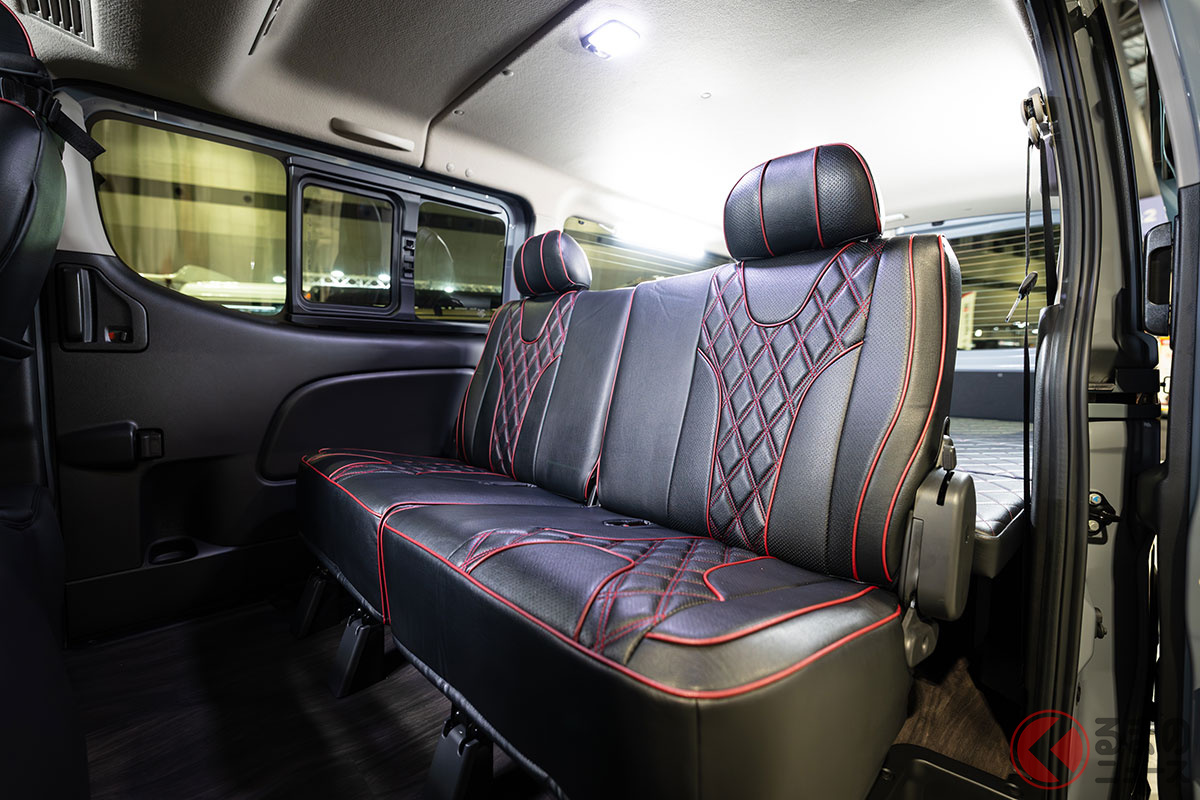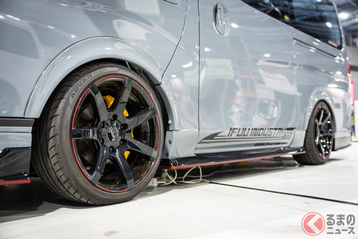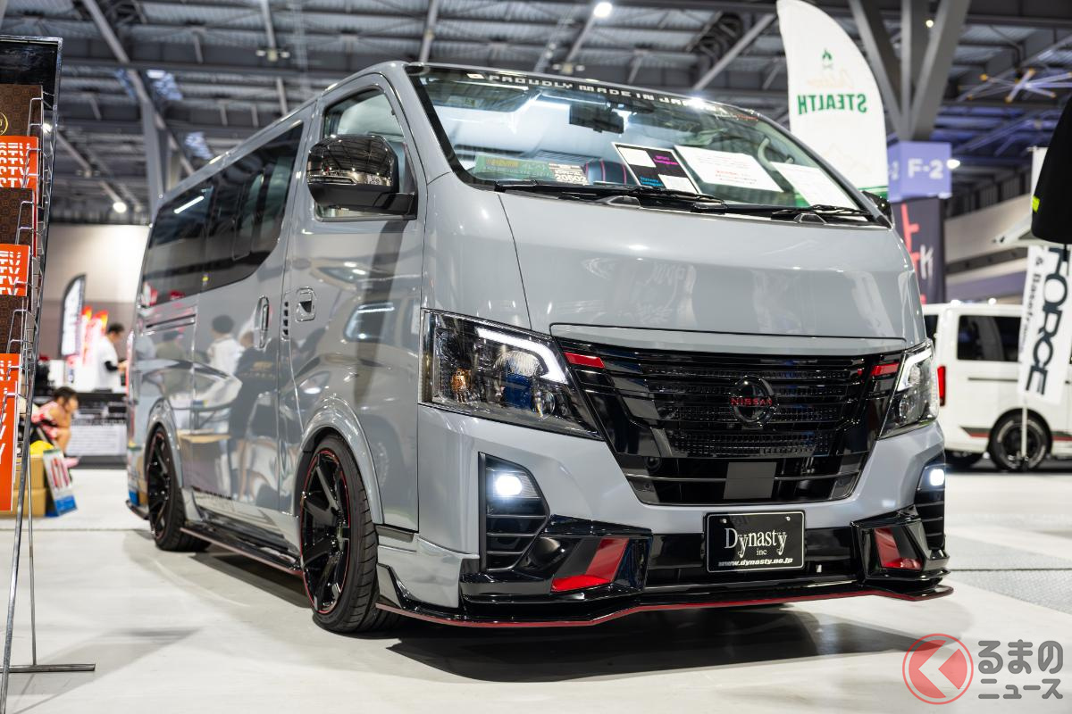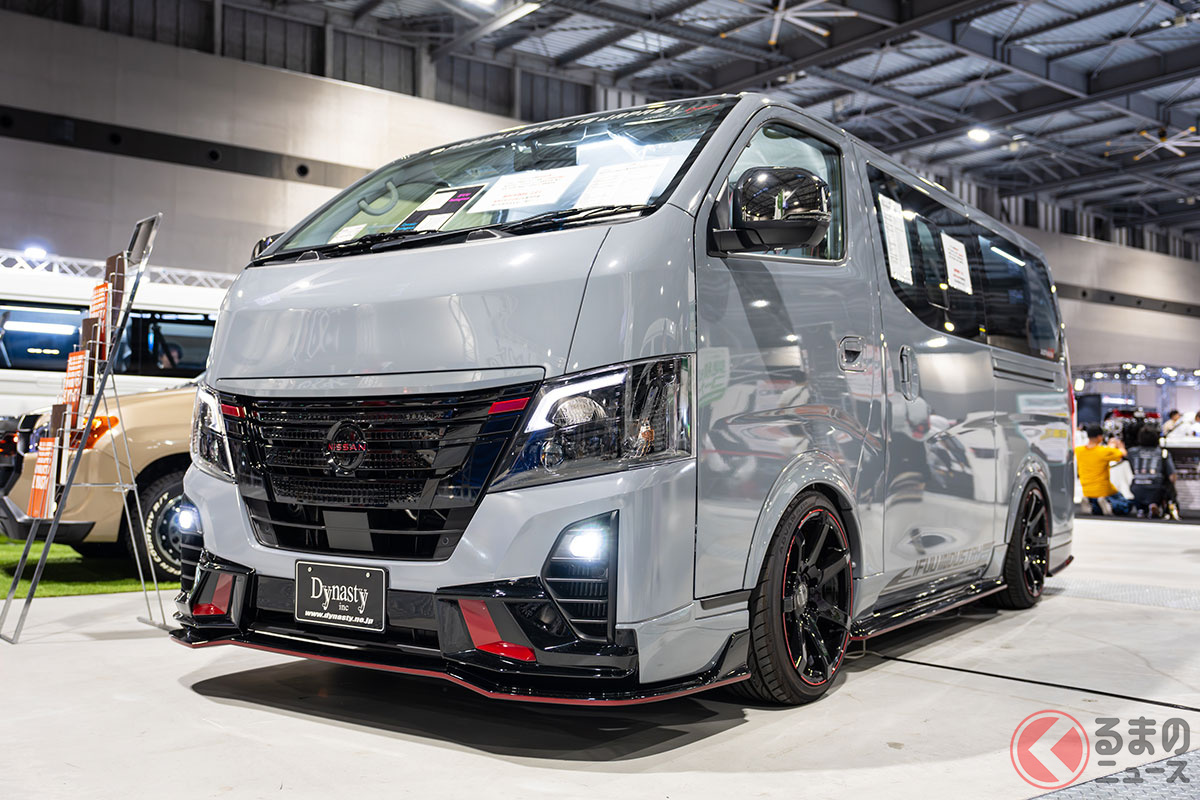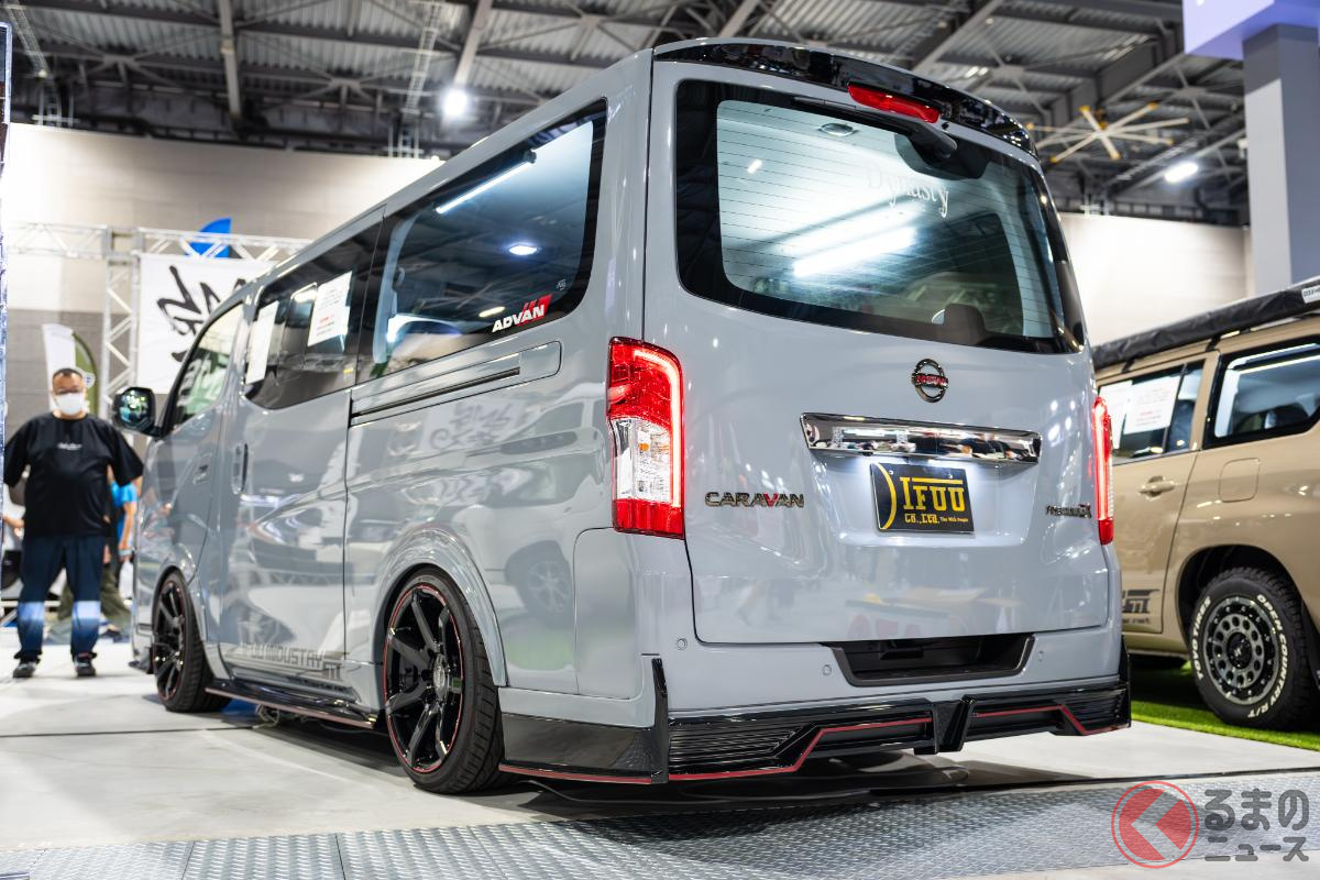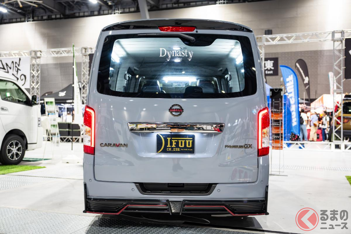 日産「キャラバンGT-R!?」が超スゴい! ド迫力「フルエアロ」は“NISMO”風「レッドアクセント」×ワイドボディ採用! めちゃ速そうなIFUU「Dynasty ALIVE GT-v」カスタムカーを展示
