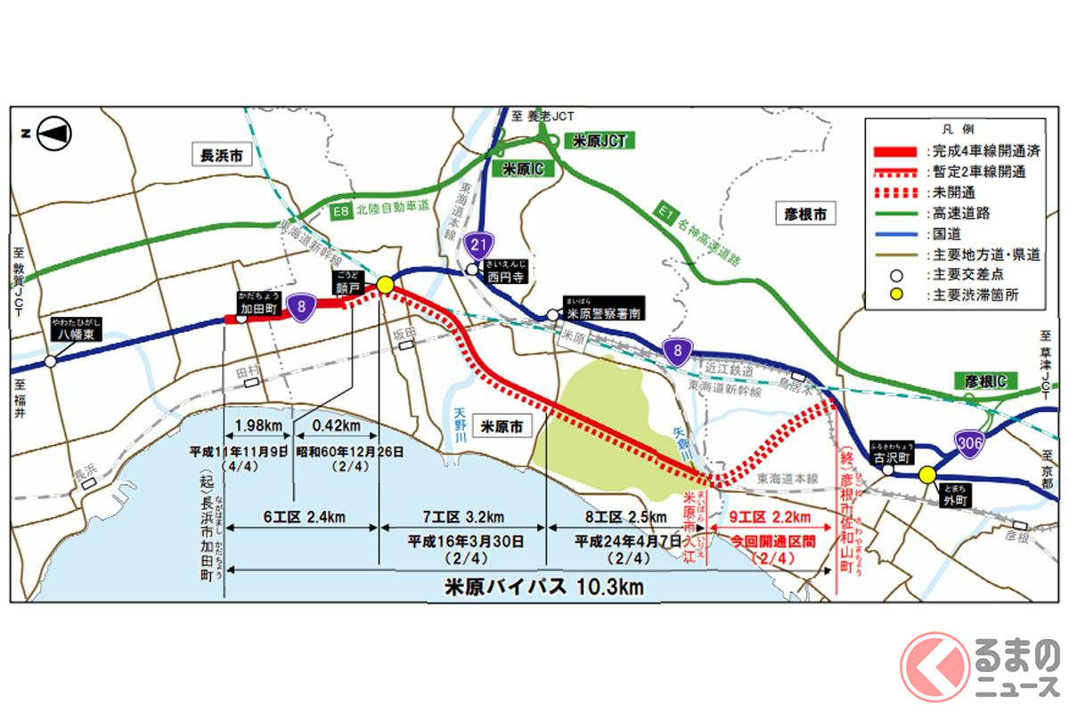 関西~北陸を結ぶ「8号バイパス」まもなく全線開通へ! 「ブツ切れ」解消で渋滞解消&所要時間大幅解消に期待大! 「米原バイパス」開通でどう変わる?