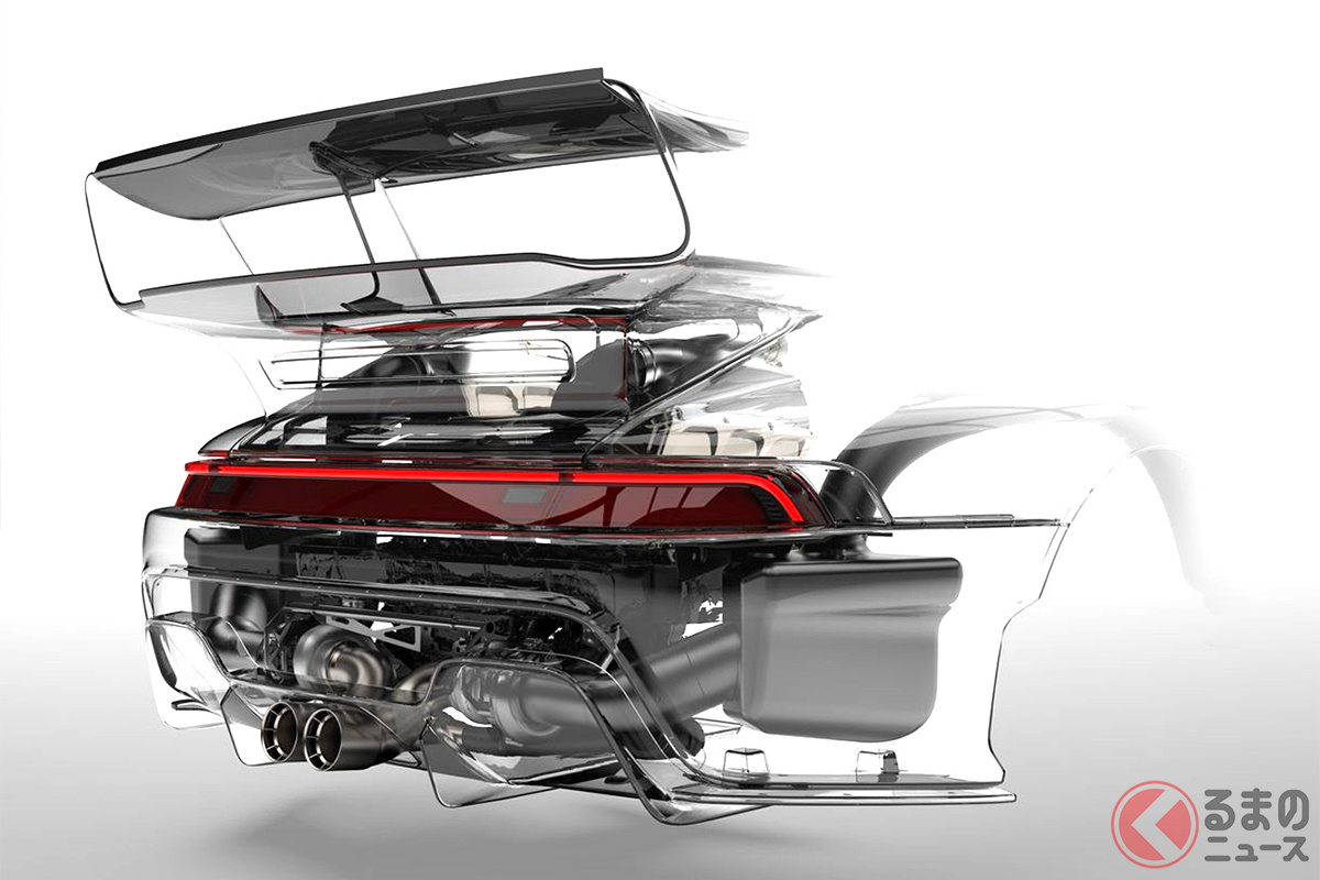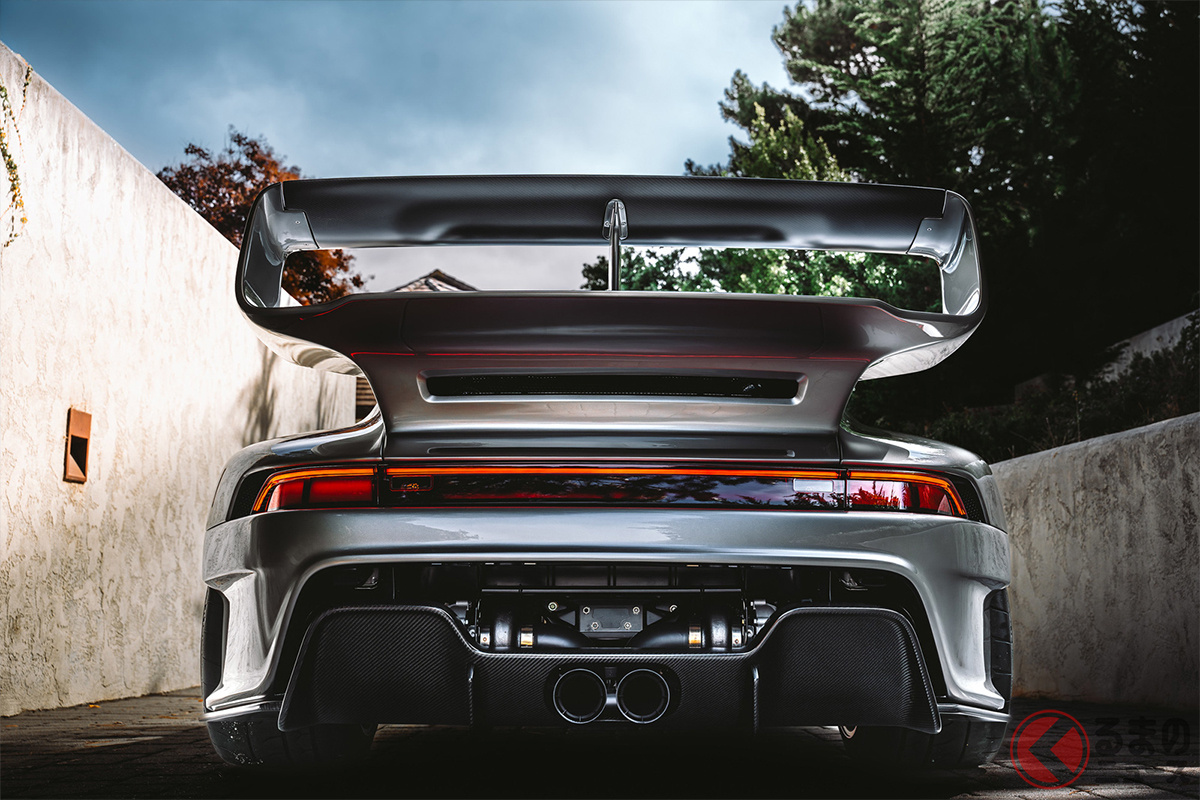 1000馬力超えד6速MT”! 斬新「“2ドア”スポーツカー」登場! 渋イイ「旧車デザイン」に巨大ウイング&軽量ボディ採用! 「豪華内装」も魅力! ポルシェ「911」ベースの米国で公開されたガンサーワークス「プロジェクトF-26」とは?