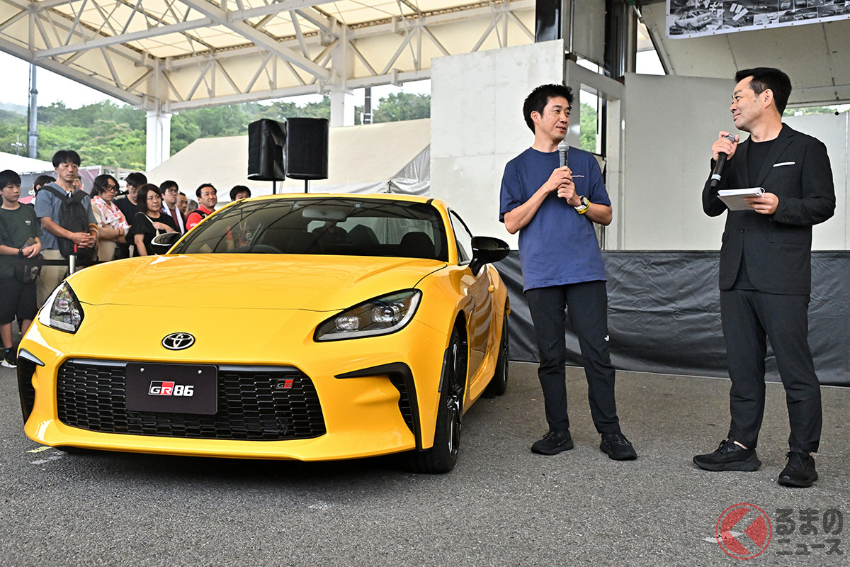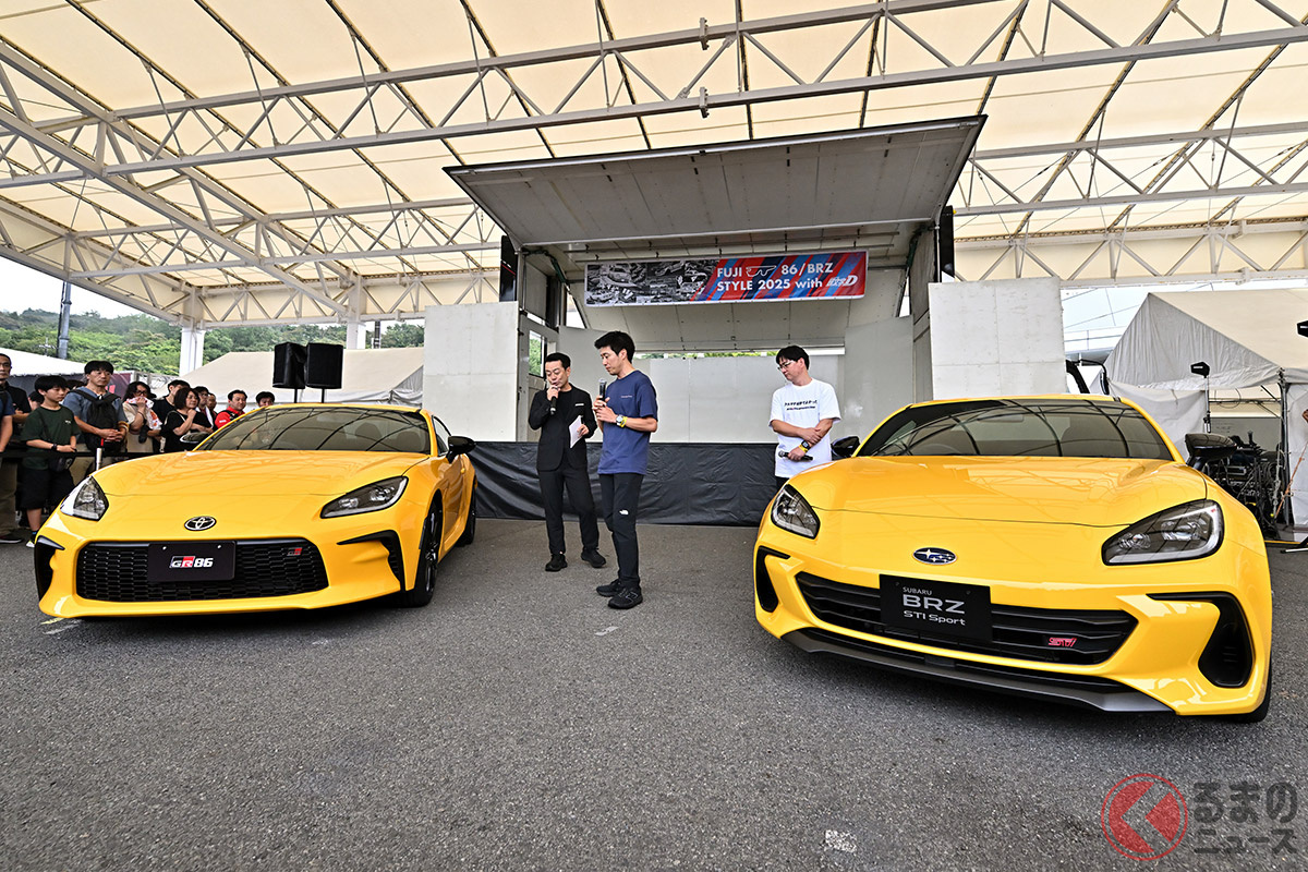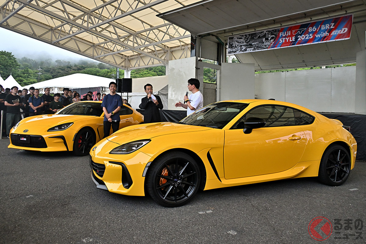 斬新「黄色いスポーツカー」が降臨! トヨタ「GR86」&スバル「BRZ」の“限定車”お披露目! 開発者が語る「こだわりの差別化」とは?