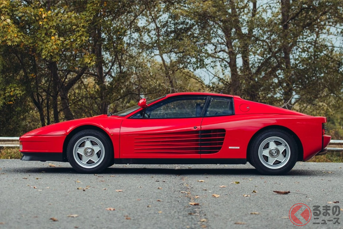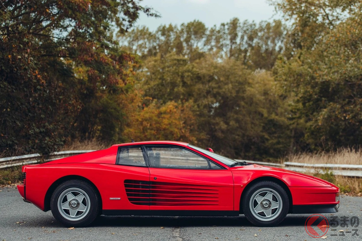 ボディサイドの“フィン”が美しい! 40年前の「真っ赤なフェラーリ」がベルギーのオークションに登場! 初期型にしか存在しない片耳ミラー仕様「テスタロッサ モノスペッキオ」とは?