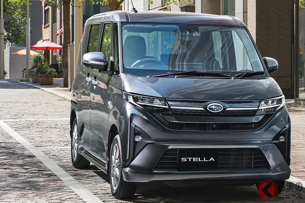 新車136万円! スバルの「新型“スライドドア”ワゴン」に注目! リッター「約23キロ」走る“精悍”スタイル×全高1.6m級で「ちょうどイイサイズ」! 新型「ステラ」ダイハツ版「兄弟車」とどう違う!?