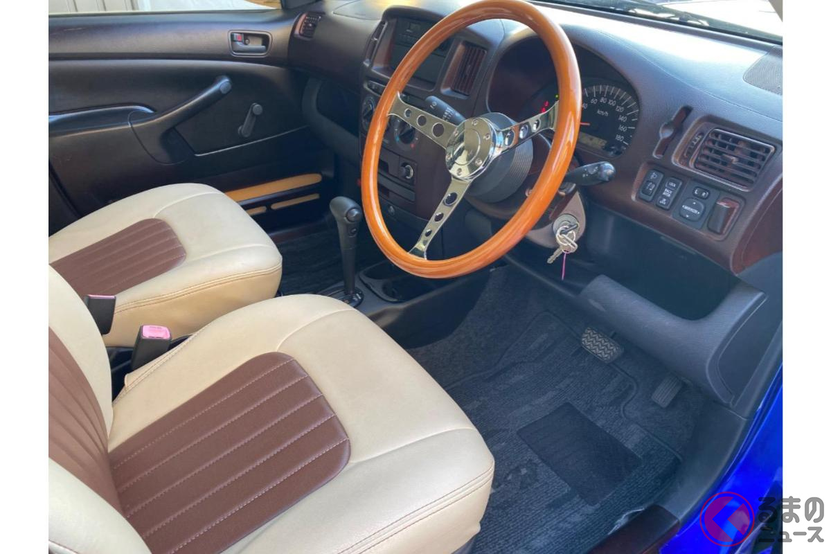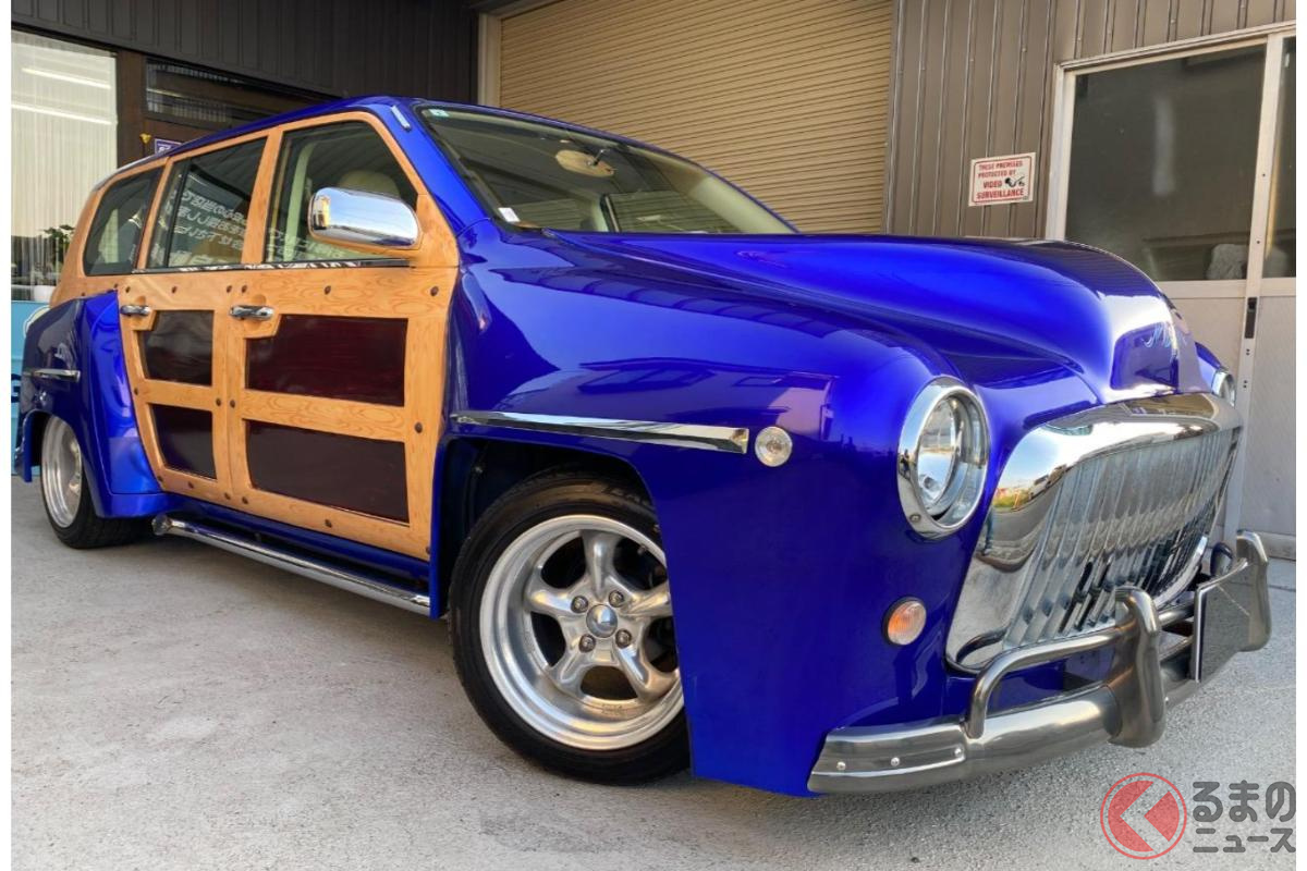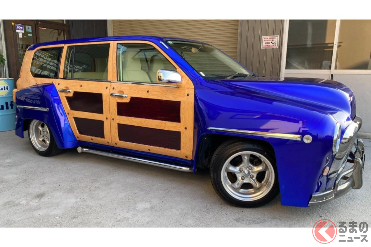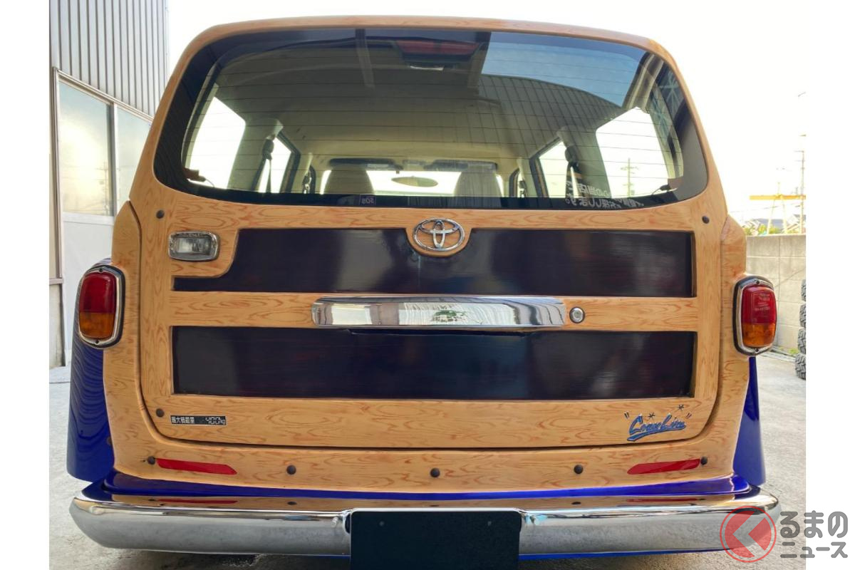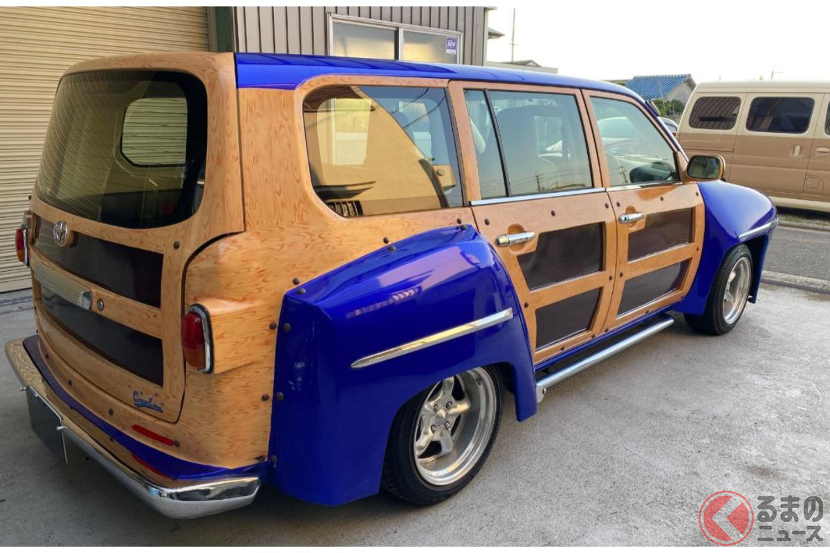 えっ…! トヨタ「プロボックス」なの!? 超レトロ顔の「商用バン」がスゴイ! ウッドパネル&鮮烈ブルーがカッコイイ「カスタムモデル」とは