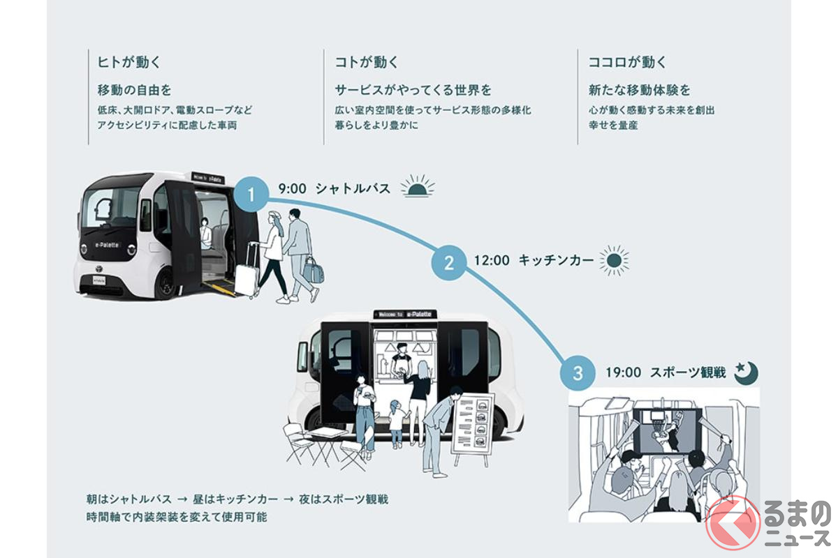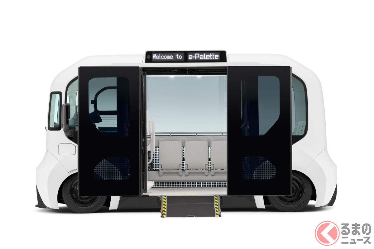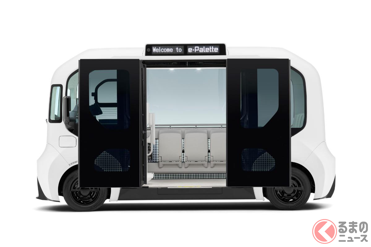 約3000万円で17人乗り! トヨタの「新型モデル」発表! 全ドア“スライドドア”×丸目のカクカクデザイン採用! 全長5m級の「イーパレット」どんなクルマ?