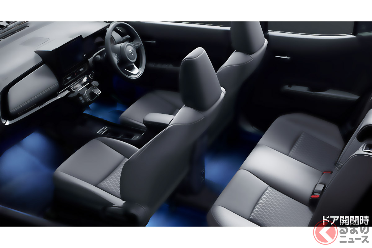 トヨタ「新型コンパクトカー」まるで“ちいさいプリウス”な高級デザインに一新! 青く光るフロアイルミがスゴい! 車内を彩るめちゃラグジュアリーな「アクア」の「斬新ドレスアップ」とは!