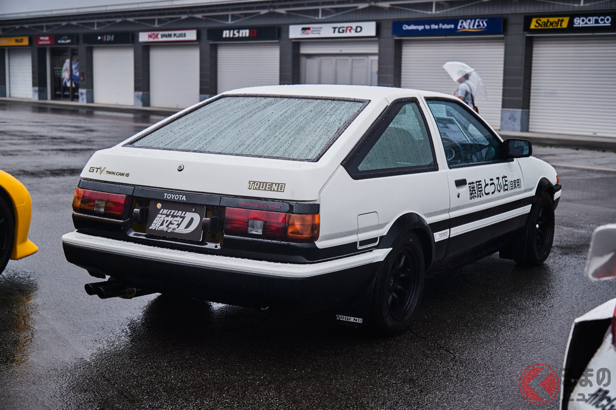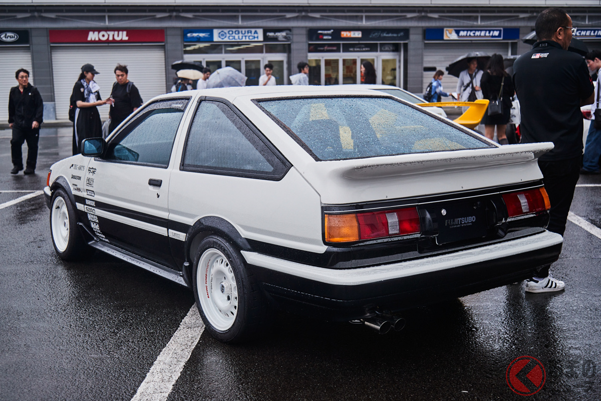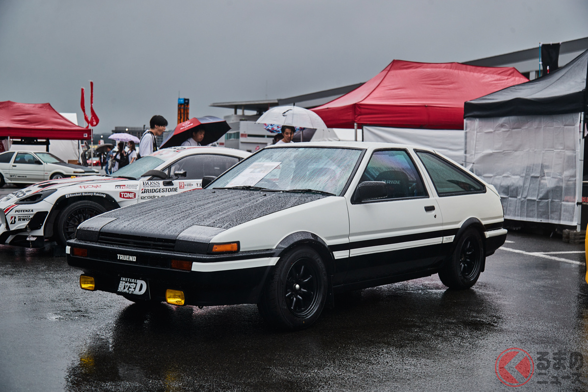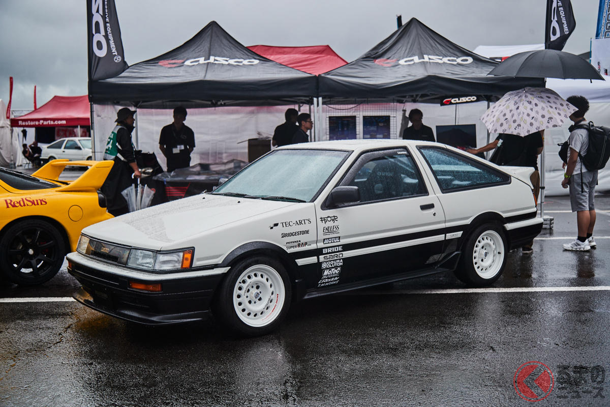 藤原拓海の「AE86」と高橋啓介の「RX-7」も登場!?「頭文字D」イベント「クスコ」「フジツボ」「プロジェクト・ミュー」ブースに最新パーツ