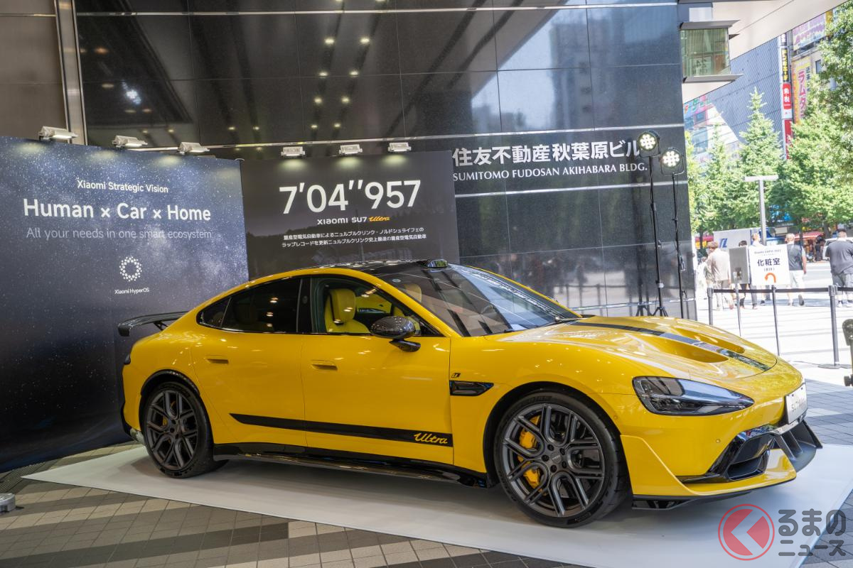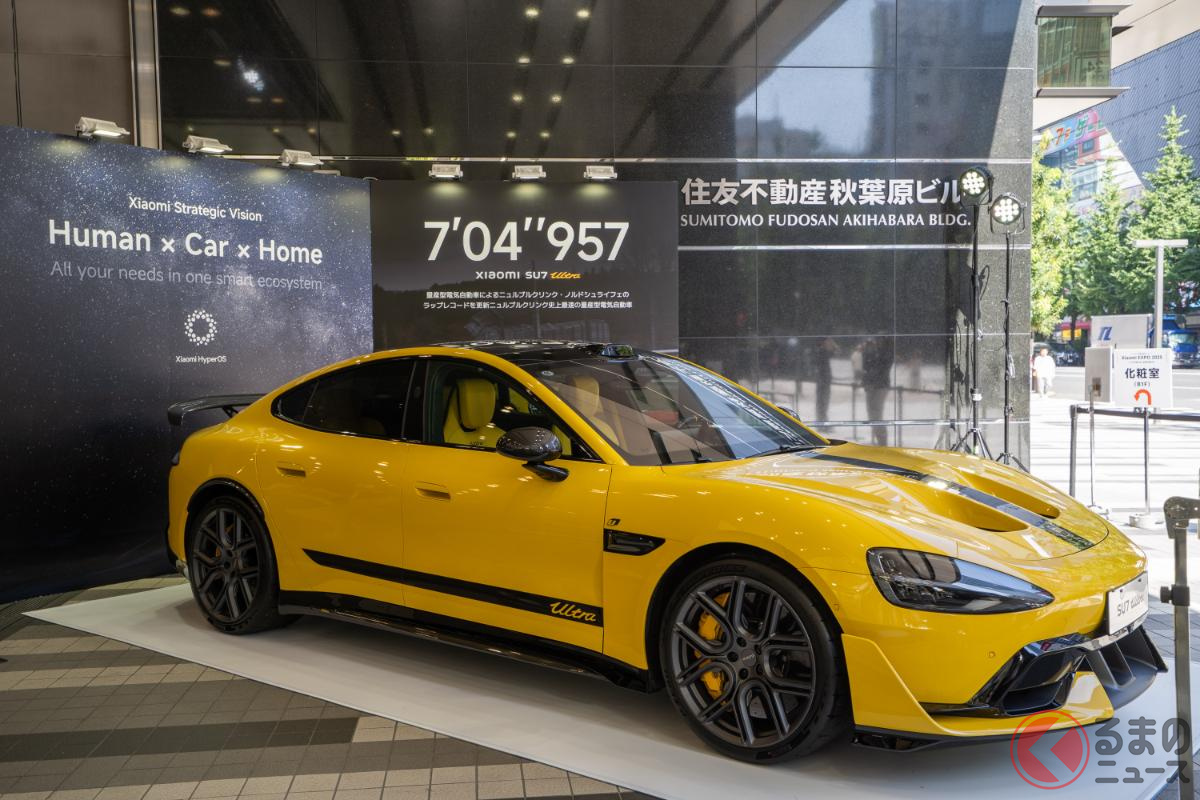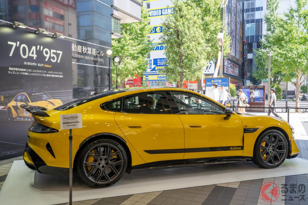 日本初公開! ハイパフォーマンスマシン「SU7 Ultra」秋葉原に現る、なぜ? スマホで有名なXiaomi製の凄いクルマとは?