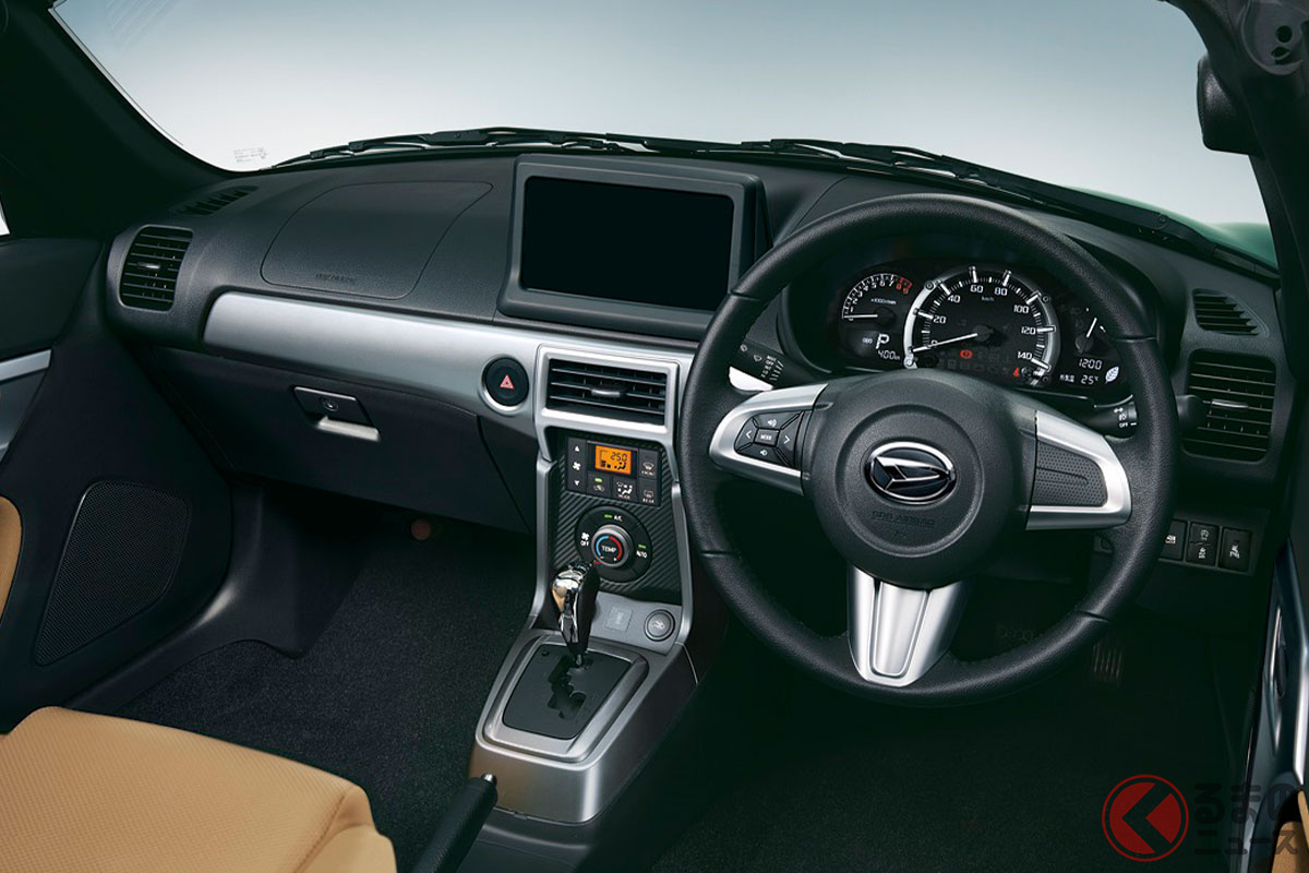 198万円! ダイハツ最新「“2人乗り”スポーツカー」がスゴイ! 最高級より「57万円オトク」で「リッター20キロ」近く走る低燃費もイイ! “ベージュ×カーボン調”内装が目を惹く「コペン」最安モデルとは?