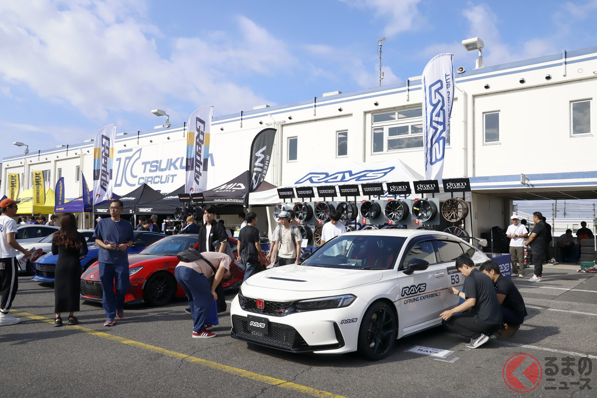 筑波サーキットにて2025年9月28日、チューニングカーの祭典とも言えるイベント「ハイパーミーティング2025」が開催されました。イベントに出展したレイズは、一般参加者に「純正ホイールと鍛造ホイールを履き比べて、クルマの性能がどう変わるかを体感してもらう」というスペシャルプログラムを実施しました。