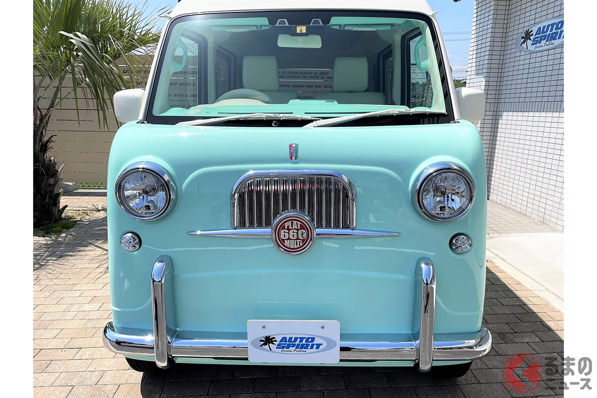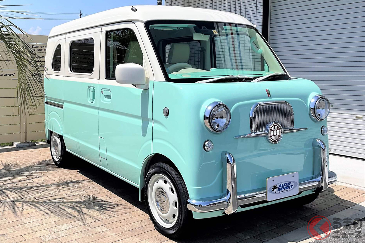 スズキ「“車中泊”軽バン」がスゴい! 全長3.4m級ボディ×「超レトロ」な丸目ライト&“なめらか”ボディ仕上げ! オートスピリットの軽キャンピングカー仕様「PLATムルティ660 コンフィIV」に注目!
