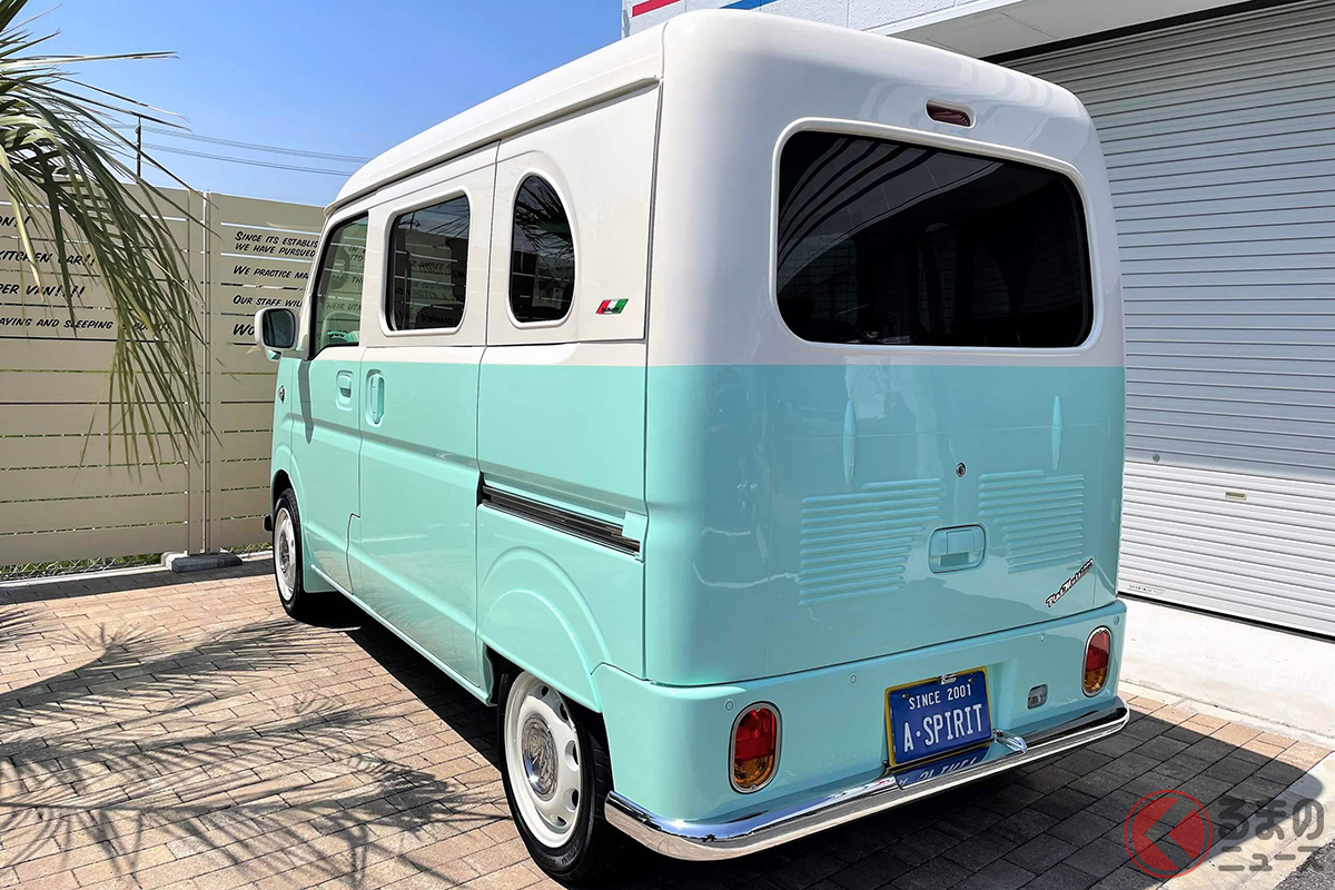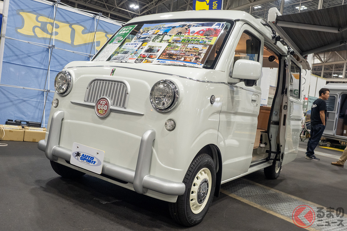 オートスピリットが、スズキ「エブリイ」をベースにしたレトロな軽キャンピングカーを「名古屋キャンピングカーフェア2025 AUTUMN」で実車展示しました。どのようなクルマなのでしょうか。