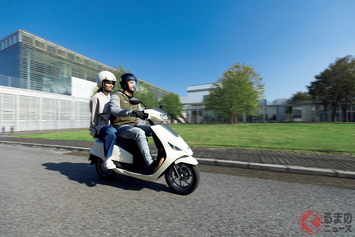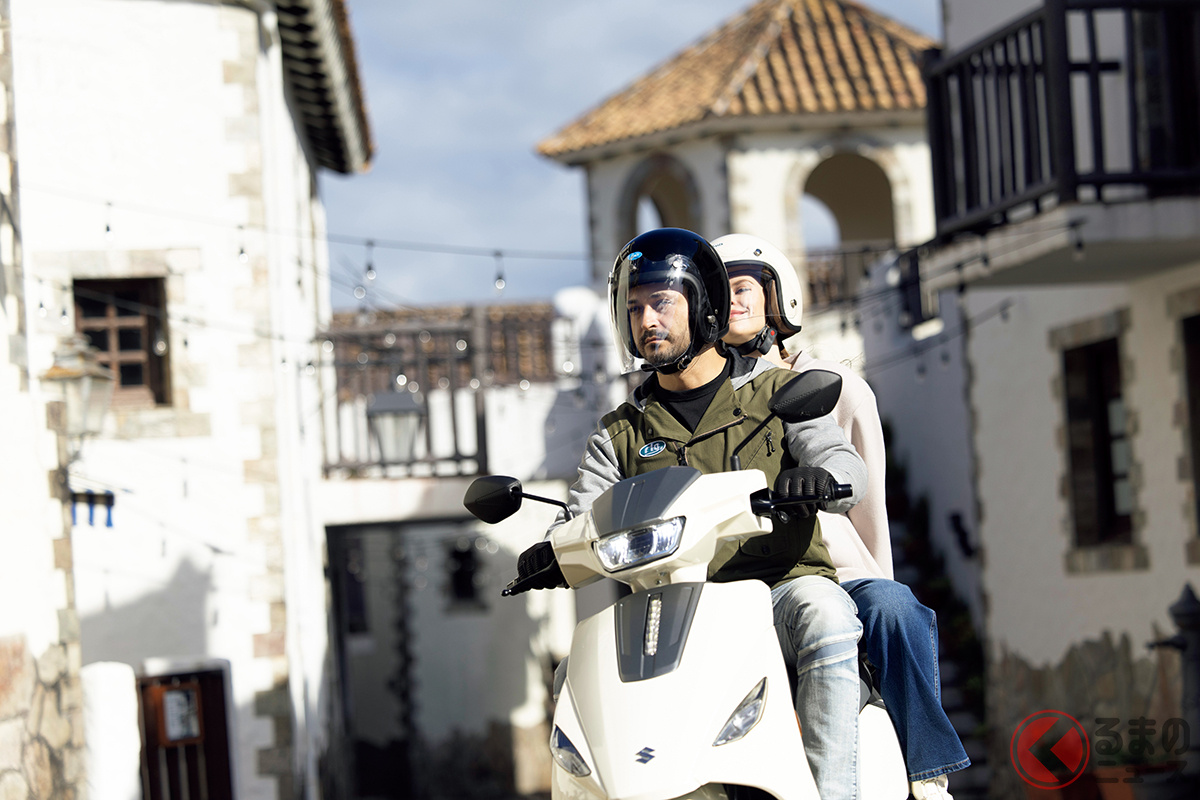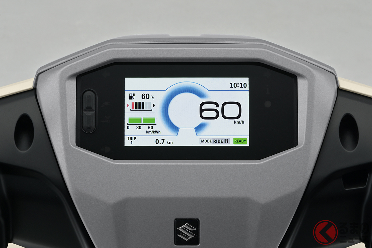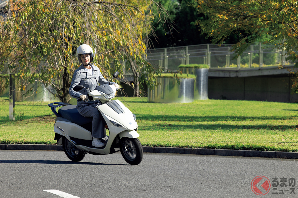 スズキが人気モデル「アドレス」の快適仕様を日本初公開! 排気ガス出ないエコモデル!? シート下には収納スペース完備! 「e-Address」をJMS2025に展示