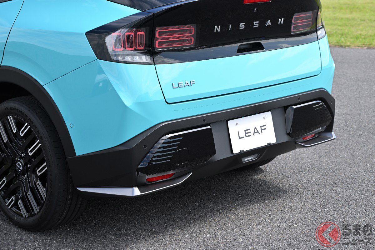 日産が「新型クーペSUV」発表! 初採用の“光るプレート”&「流れるウインカー」に大注目! エアロ風プロテクトもイイ! 新型「リーフ」純正アクセサリー発売へ