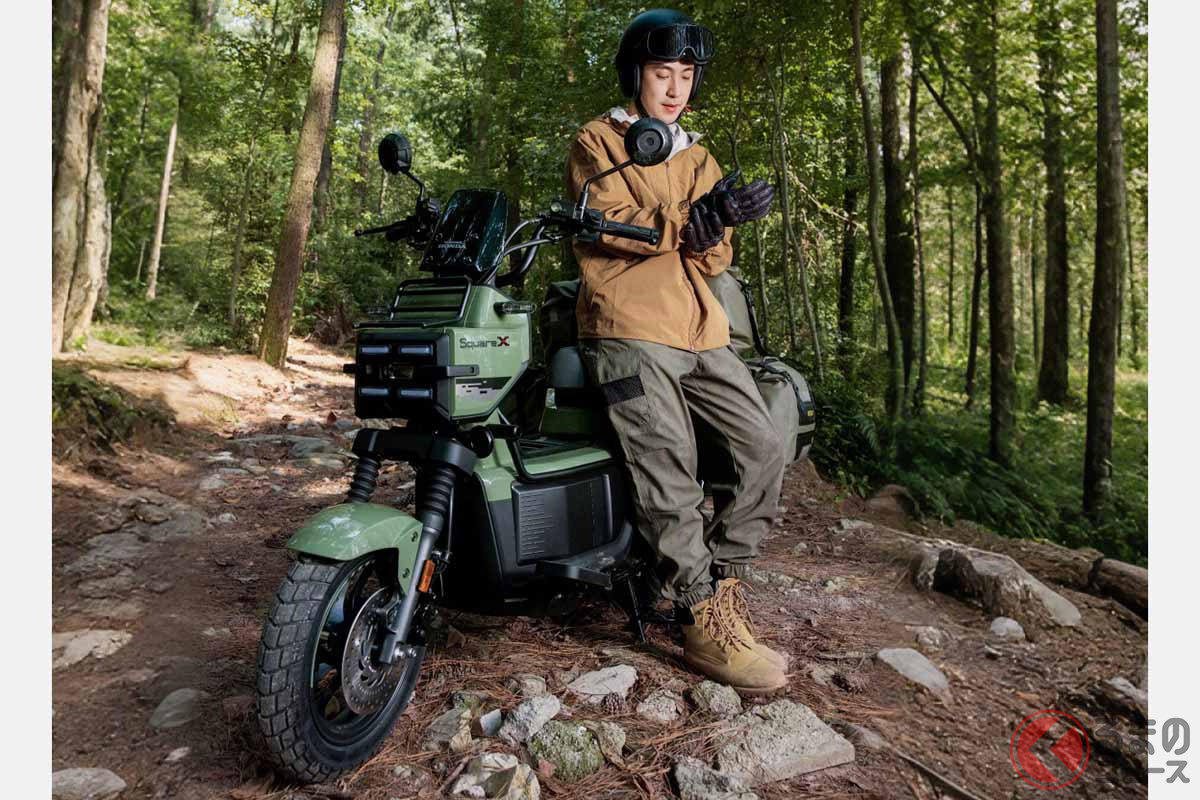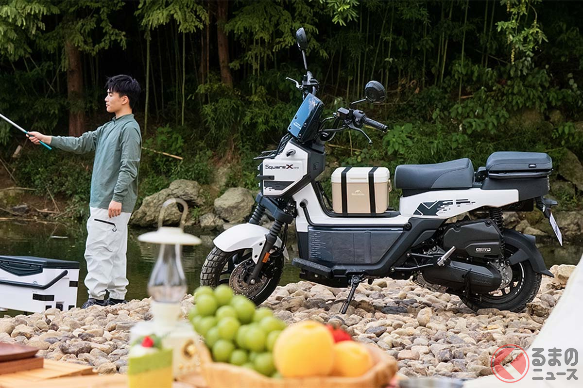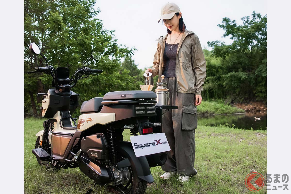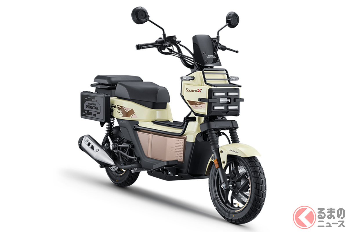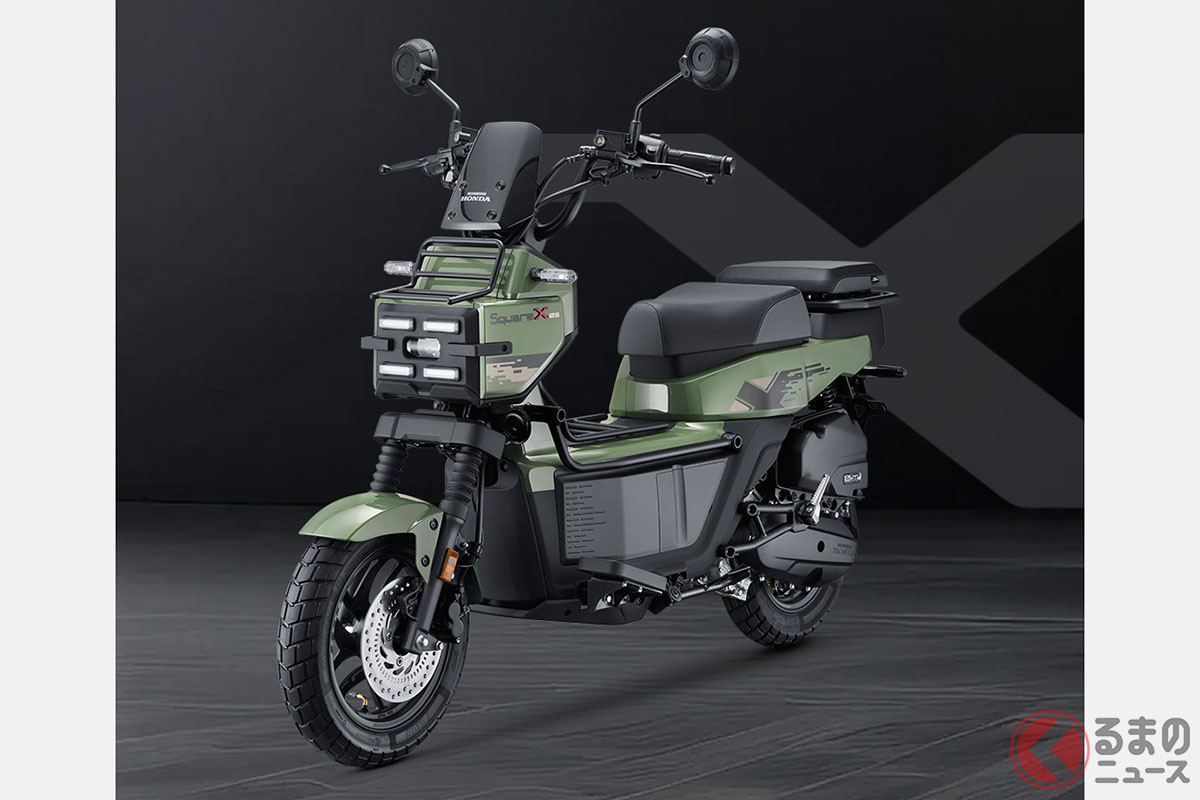 新車で約27万円! カクカクボディのホンダ「新スクーター」 四角いフロントフェイスが個性的な「スクエアX125」を中国で発表