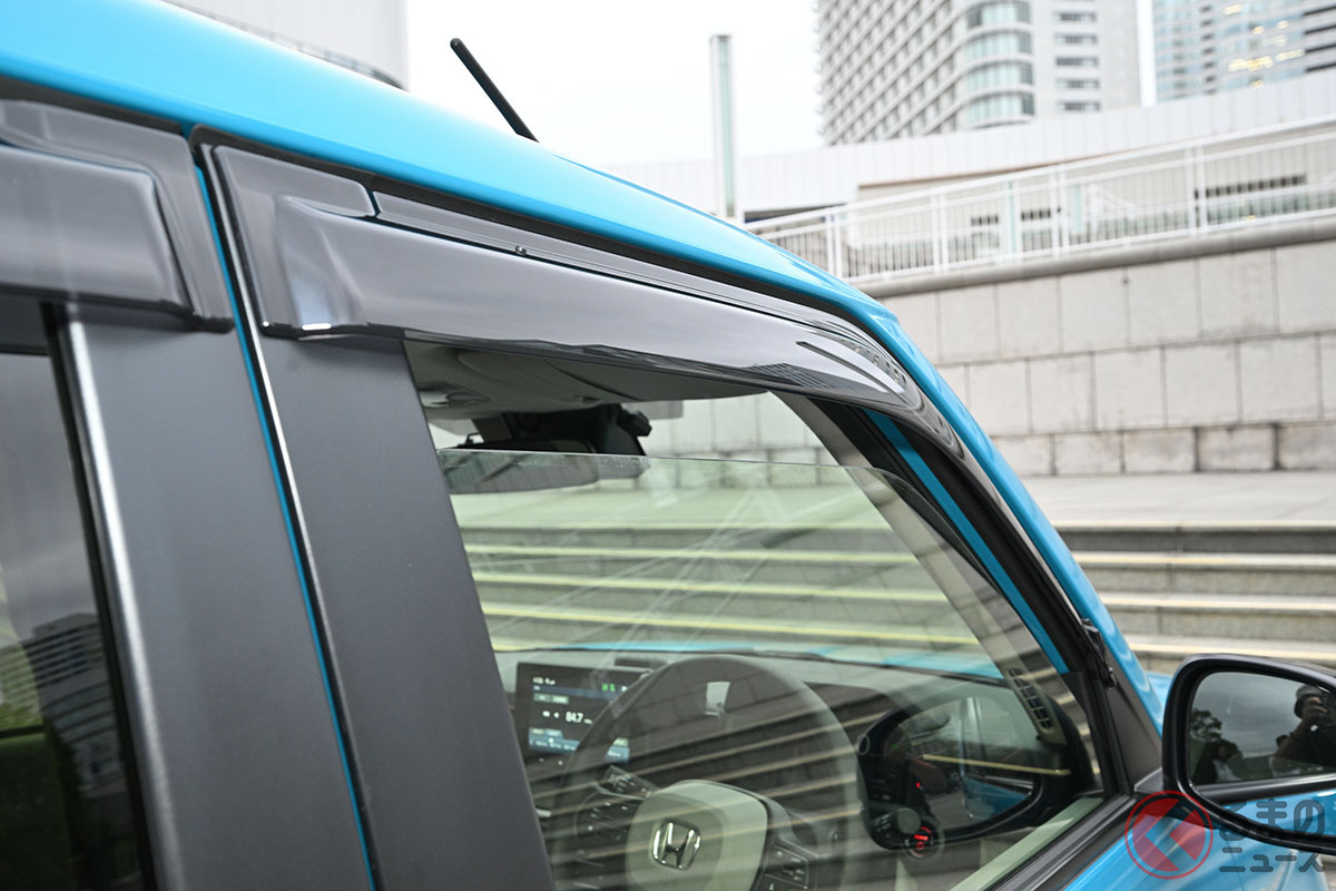 ホンダの世界初「すごいドアバイザー」に注目! 新型「軽ワゴン」で採用の“超・画期的”アイテムは「これまでにないバイザー」に大進化! 新型「N-ONE e:」に設定の斬新用品とは?