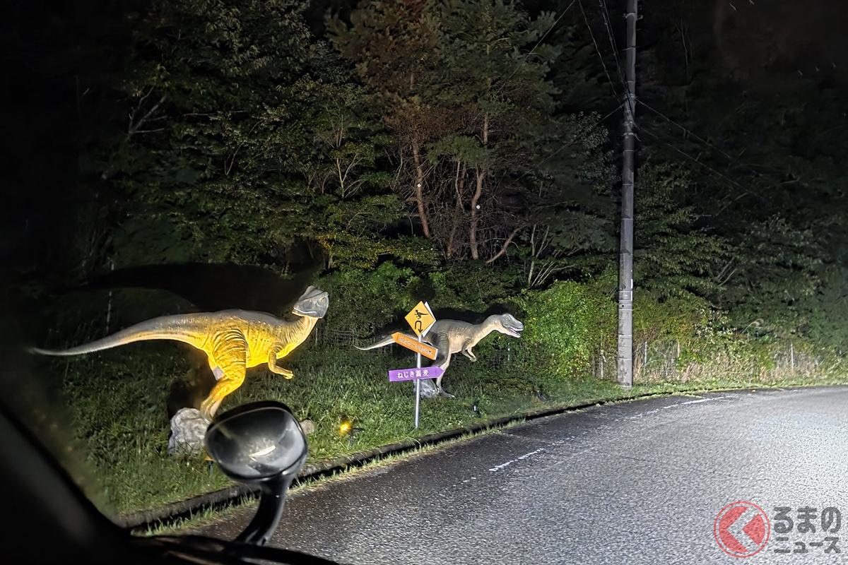 【恐竜】暗い「夜道」で「思わず“3度見”」!? 「衝撃の“光景”」がSNSで話題に! ロードサイドに現れた「生き物?」とは