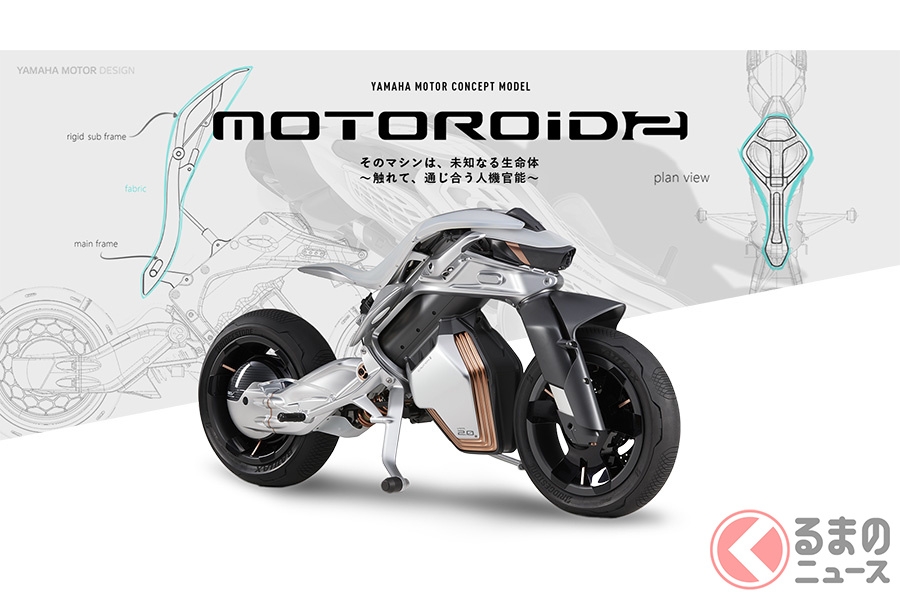 「自立」と「学習」ができちゃうヤマハの「新モビリティ」公開へ! 自ら成長する未来の二輪車「MOTOROiD:Λ(モトロイド ラムダ)」がJMS2025に登場 独自の思考能力を持ったモデルの特徴とは?