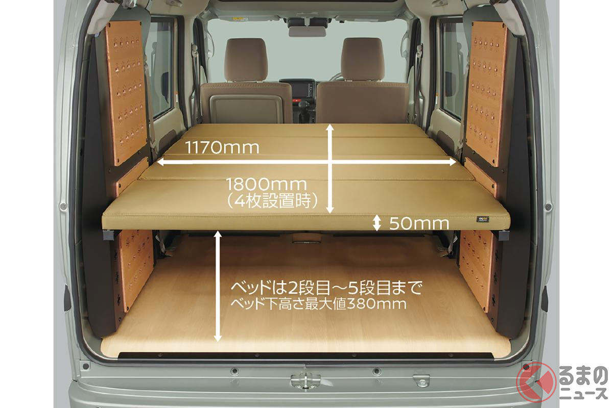 日産モータースポーツ&カスタマイズ(NMC)は2025年10月14日、軽商用バン「クリッパーバン」をベースにした新ラインナップ「マルチラック」を設定しました。車中泊需要にも対応する多用途なモデルです。