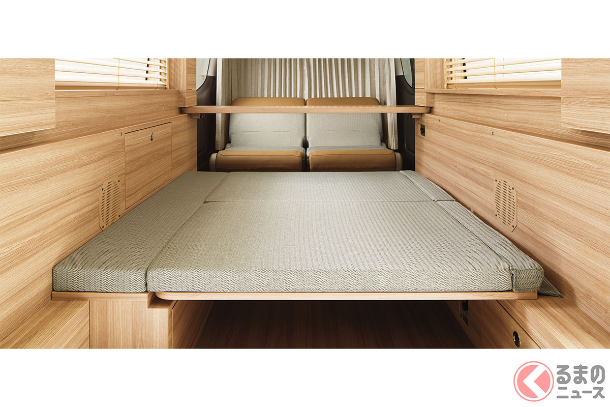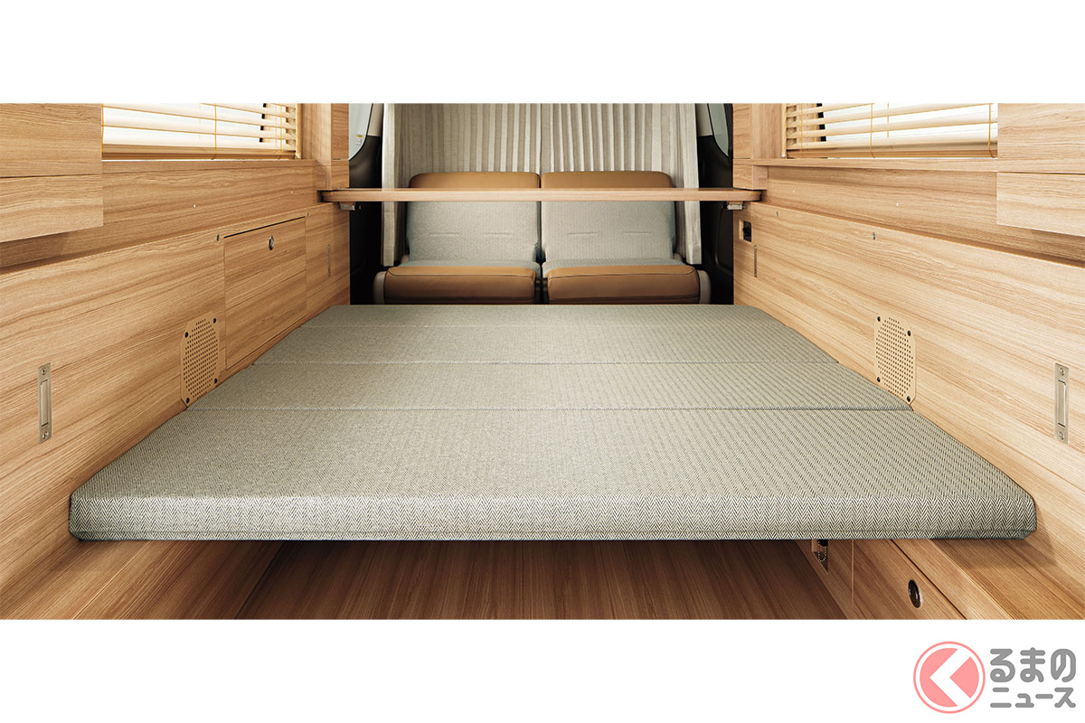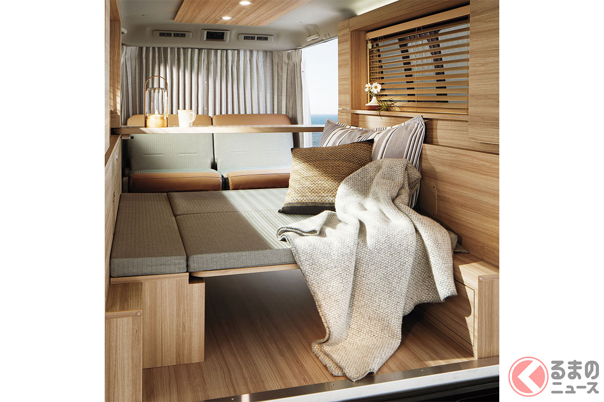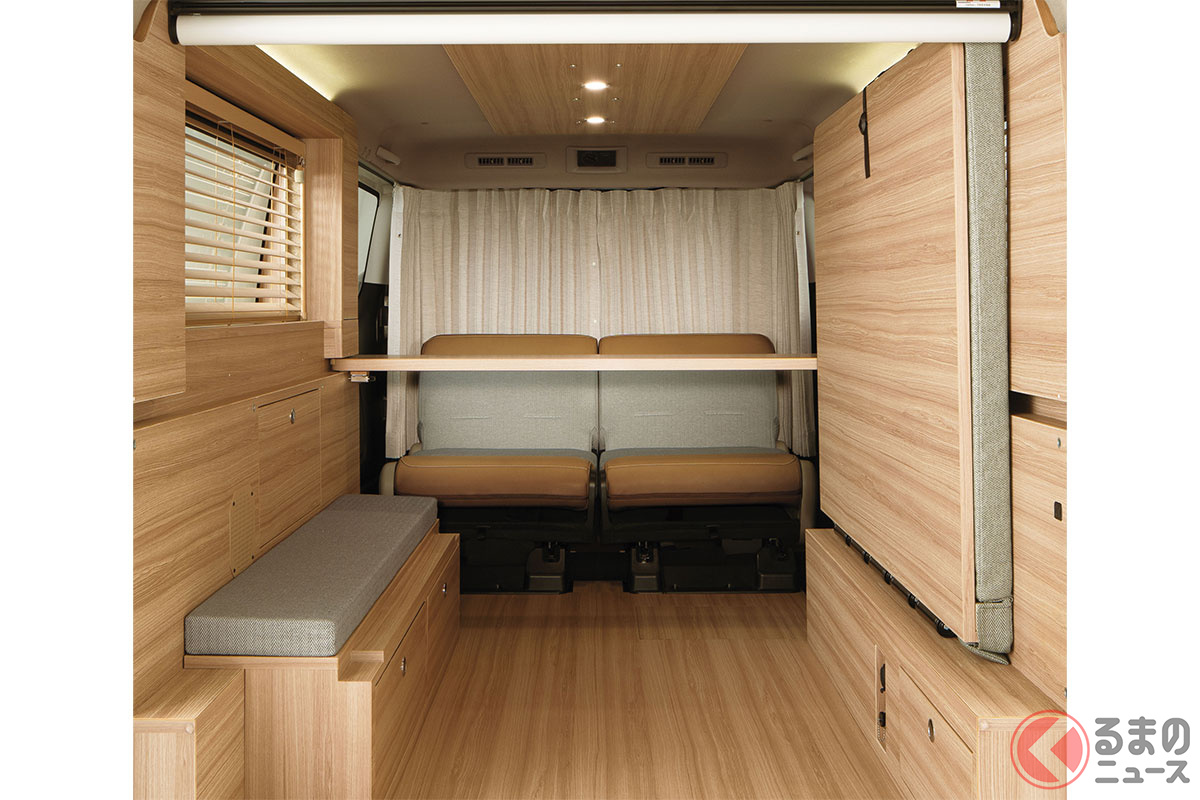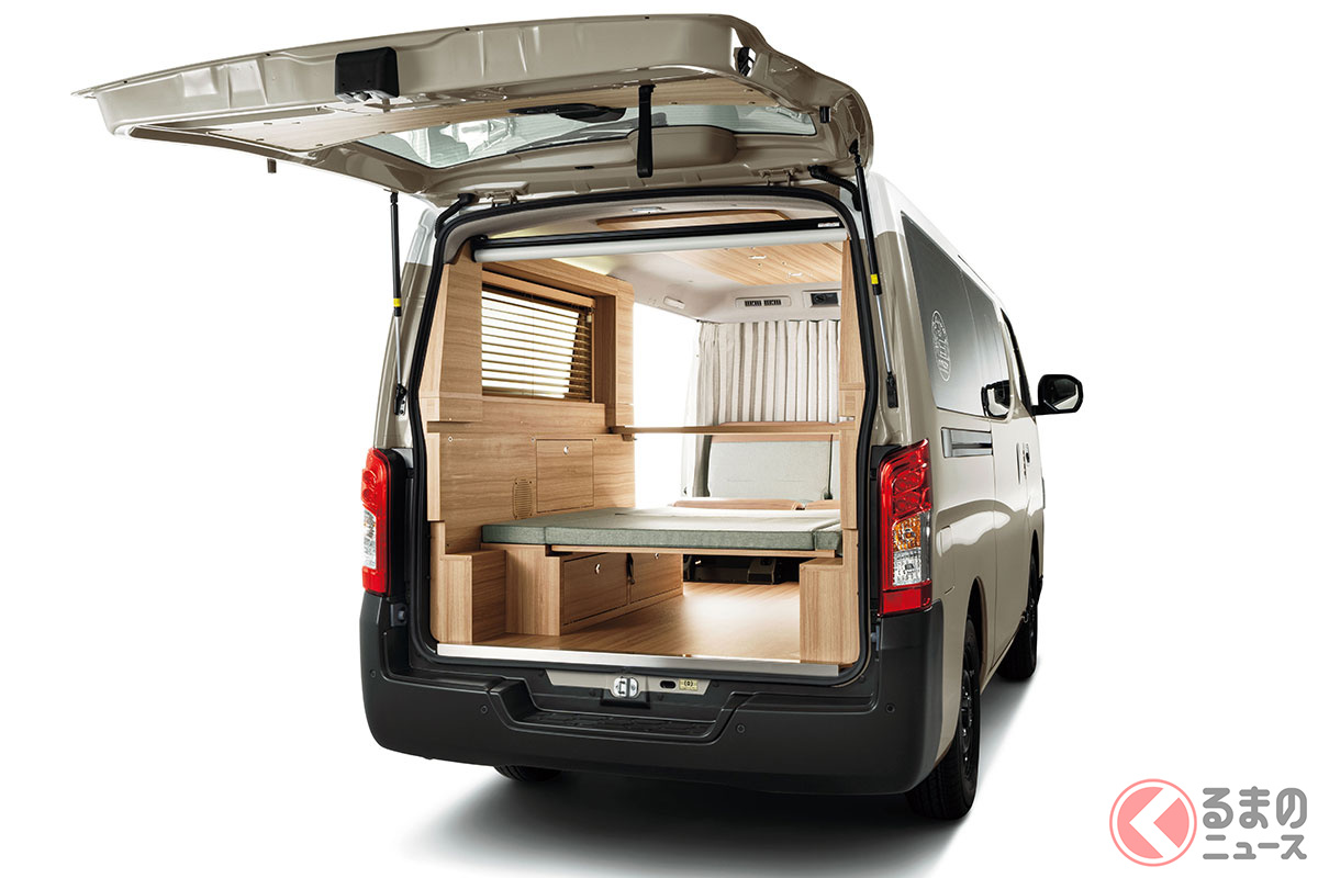 日産が新「“ベッド付き”商用バン」発表! めちゃ豪華な“木目内装”に「快適すぎるインテリア」搭載した“走る部屋”!「キャラバンMYROOM」が断熱・遮音性アップで超進化!