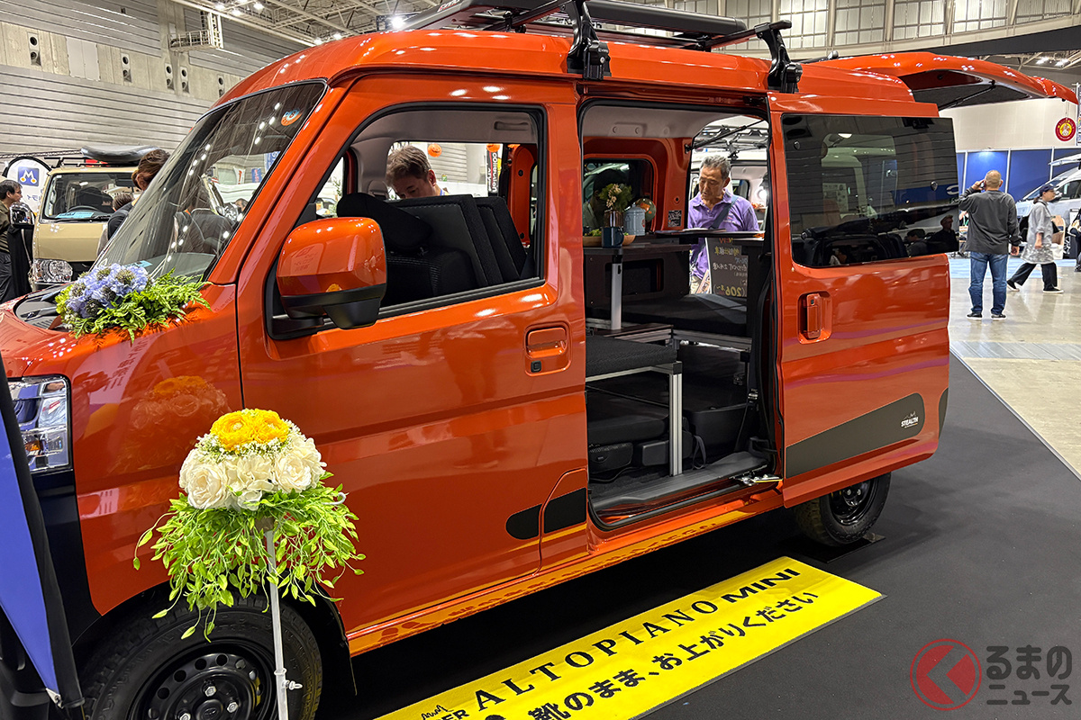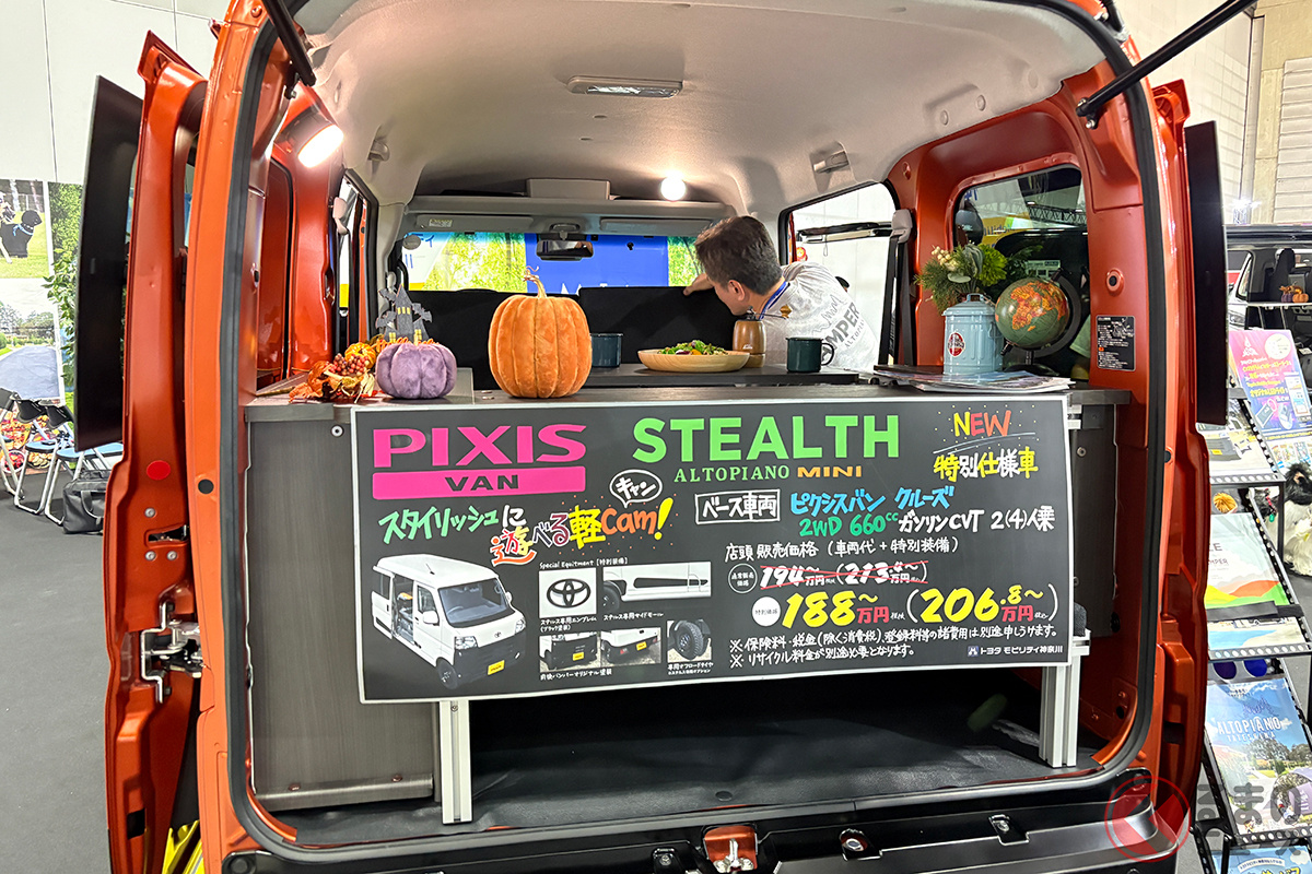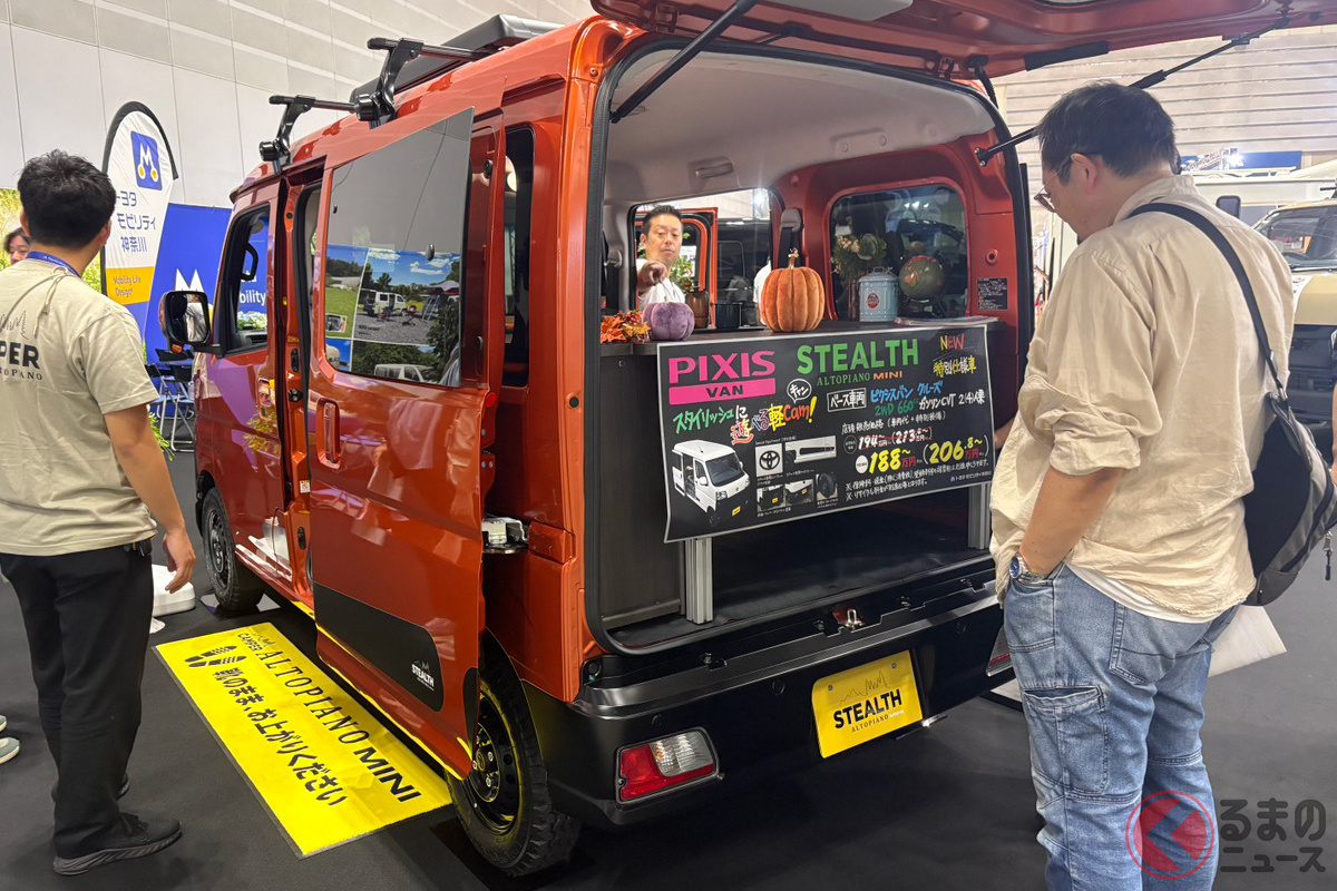 トヨタモビリティ神奈川が、トヨタの軽商用車「ピクシスバン」をベースにした「アルトピアーノ ミニ ステルス」を横浜キャンピングカーショー2025にて実車展示。軽自動車ベースながら本格装備を備えた1台として注目を集めていました。