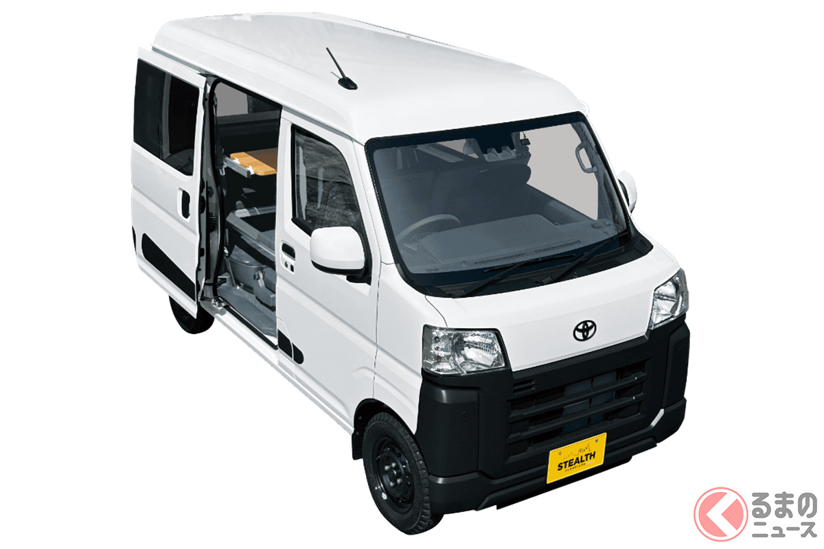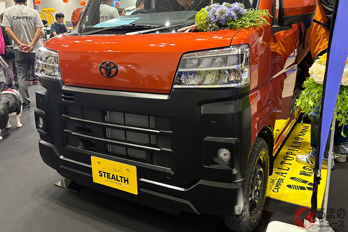 トヨタ「大人2人寝られる“軽バン”」がスゴい! 精悍「黒」マスク×全長3.4m級「ちいさいサイズ」! ゴツタイヤもカッコいい「ピクシスバン」車中泊仕様「アルトピアーノミニ」限定車「ステルス」に注目