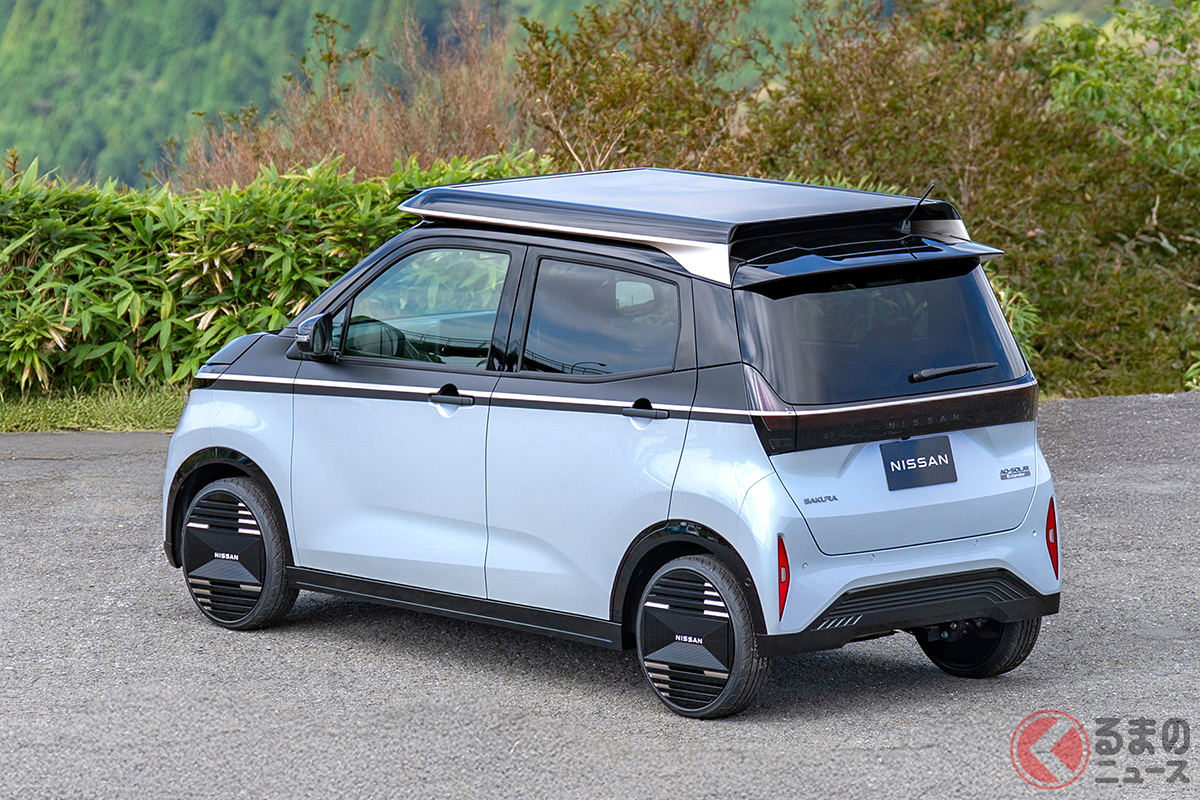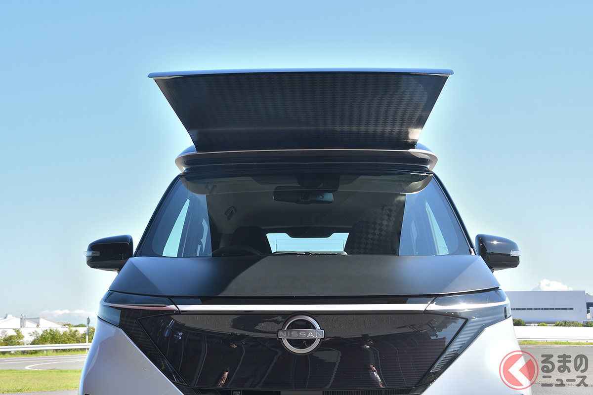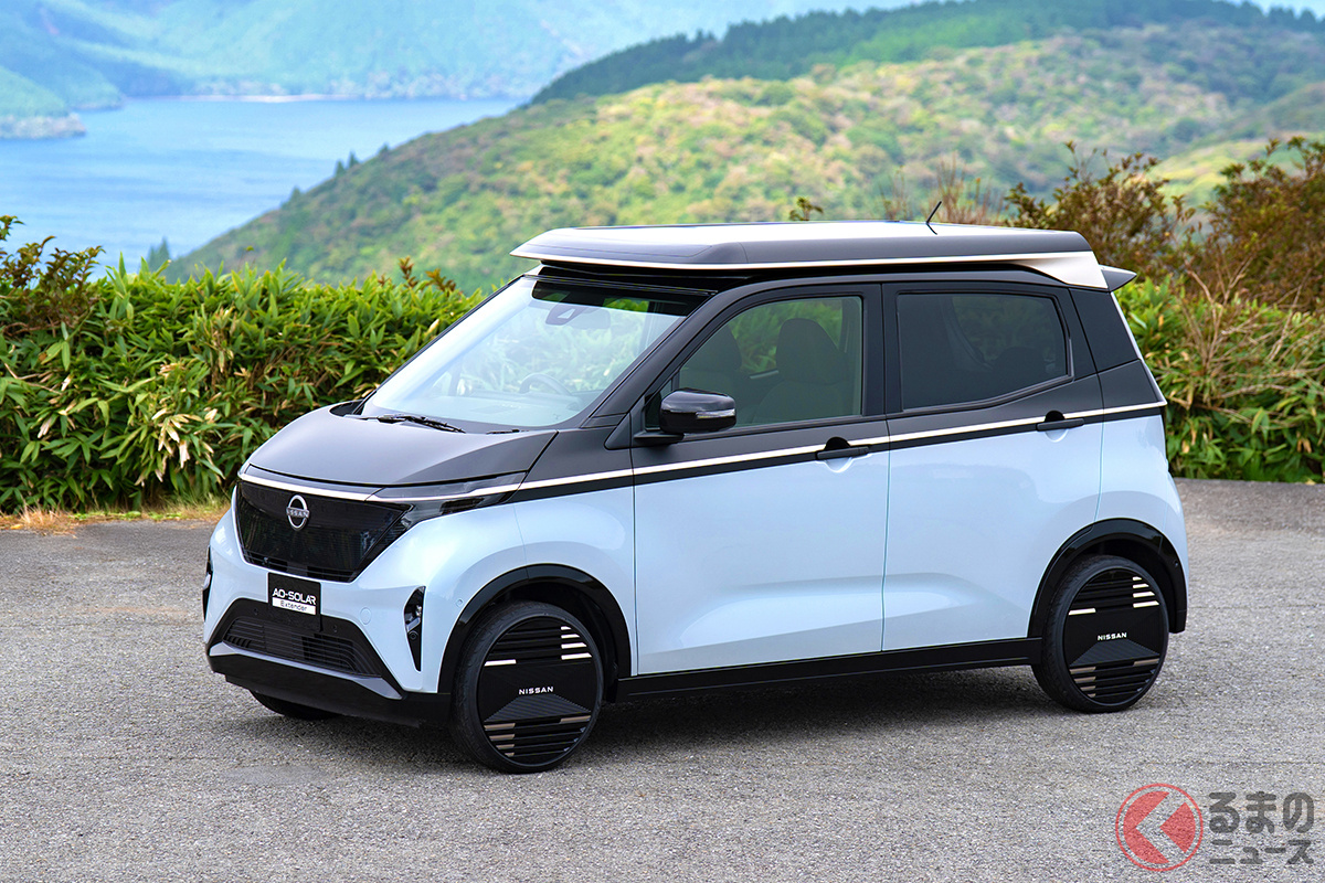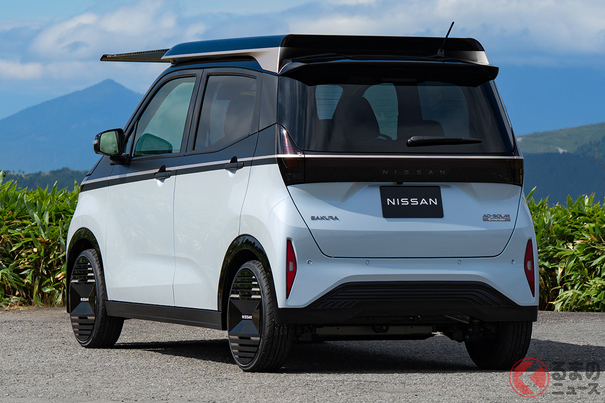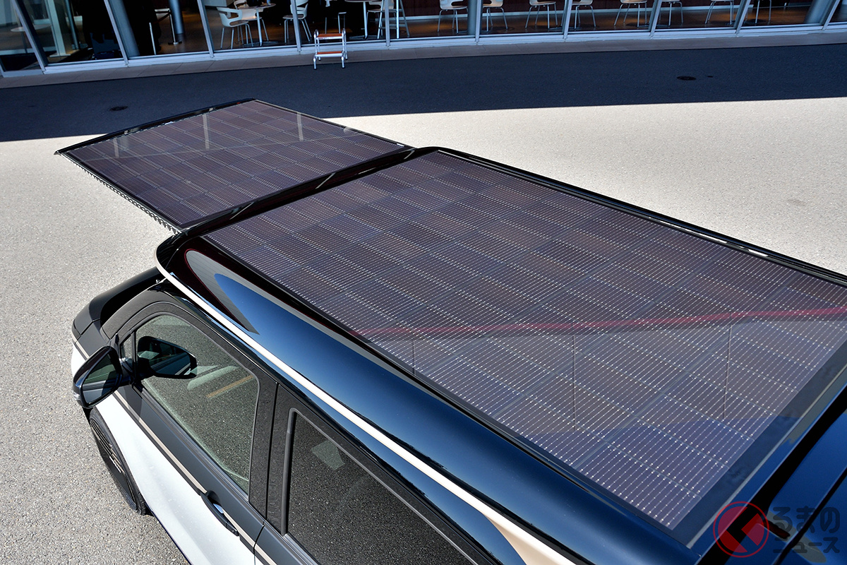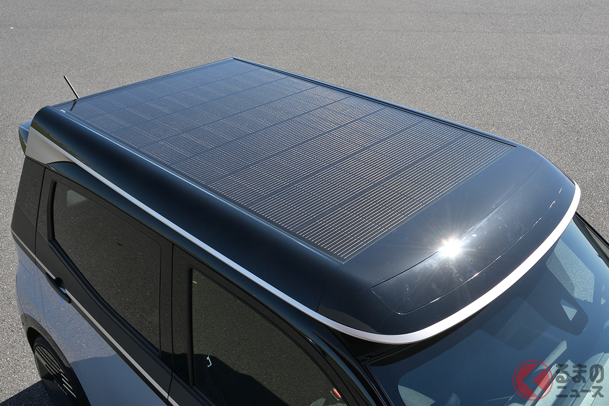 日産が「大型ソーラーパネル」搭載の新「軽EV」を発表! 500Wの「太陽光発電」可能に! 年間3千km相当の電力まかなえる「サクラ“あおぞら エクステンダー”」JMS2025に出展