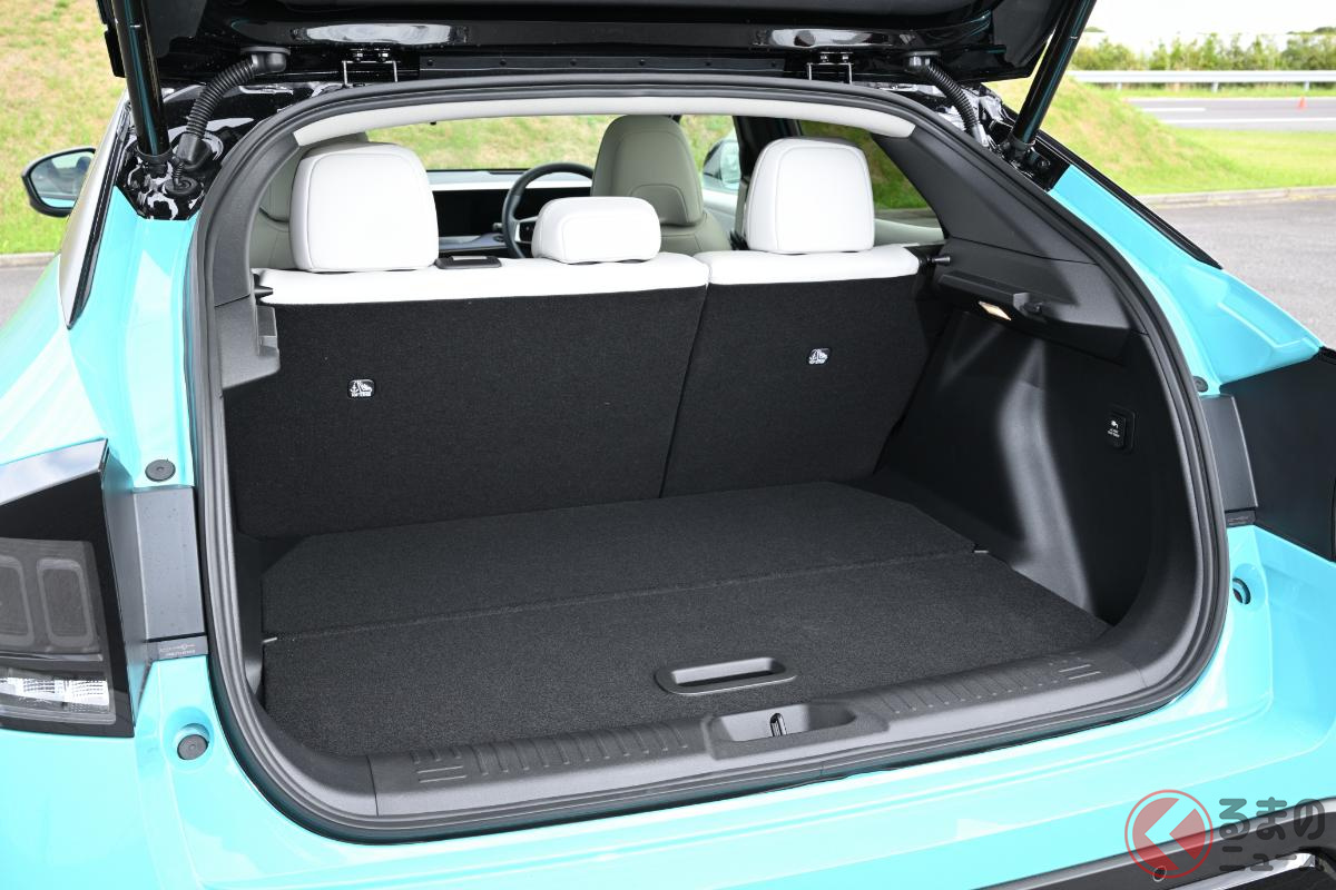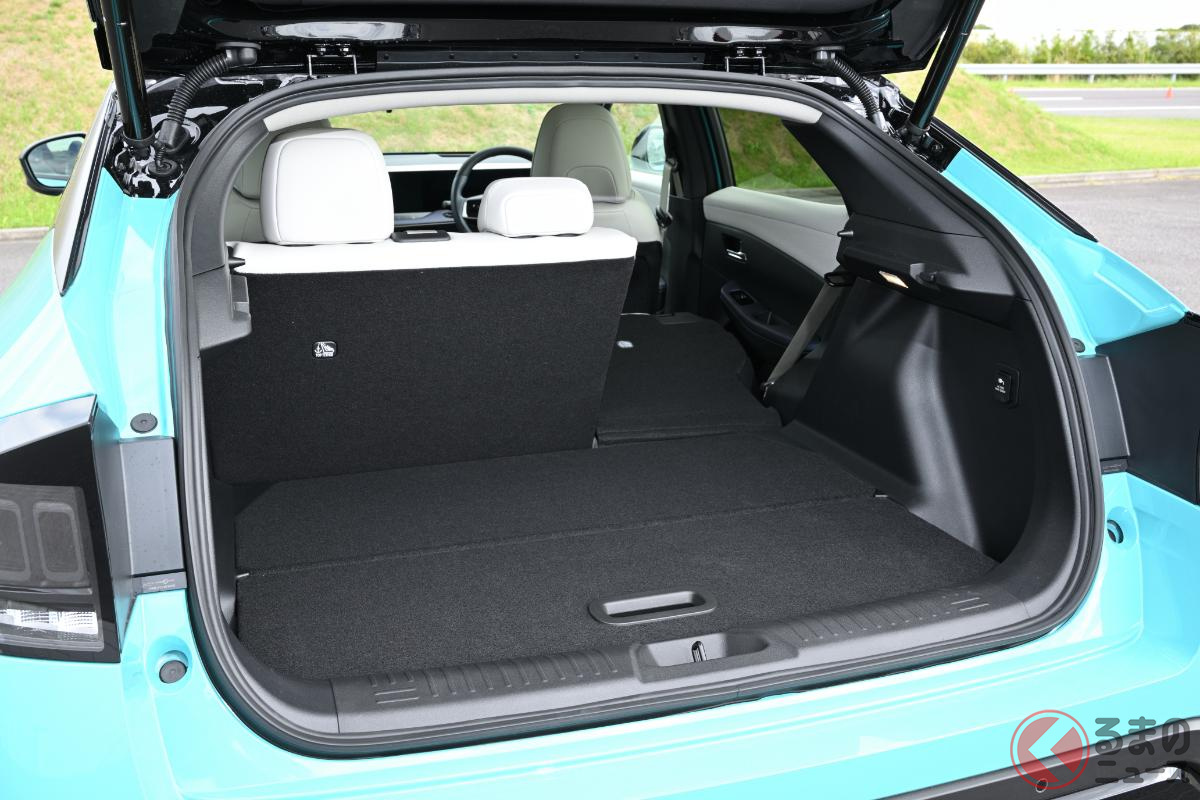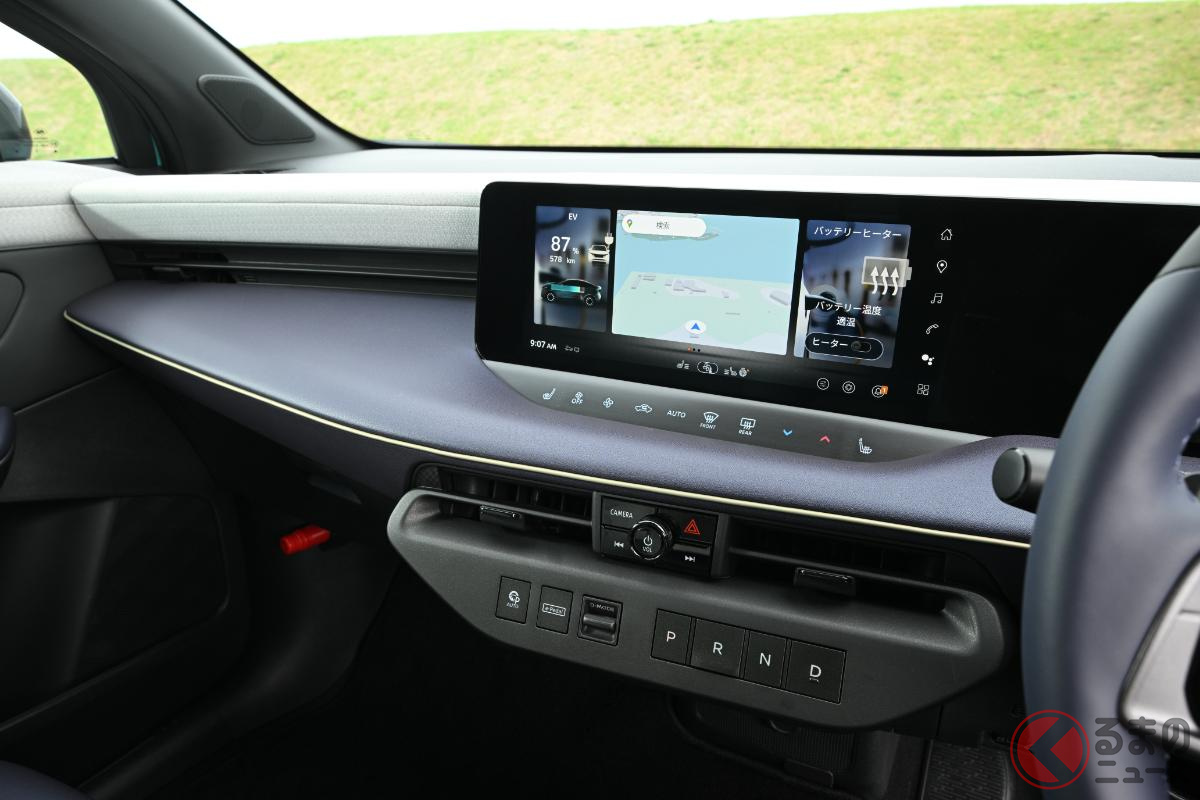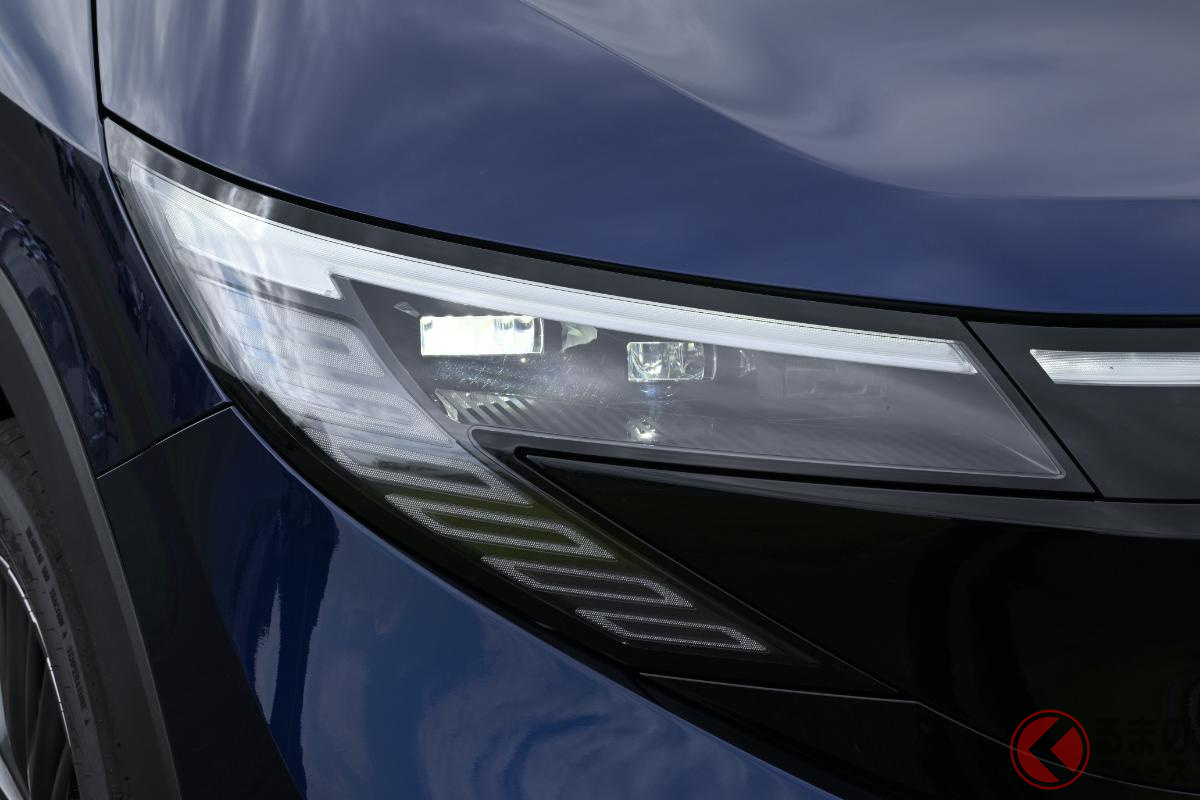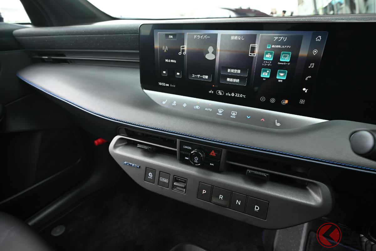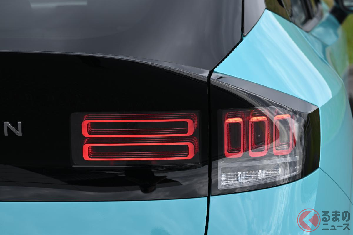 日産の新型「流麗クロスオーバー」発表! めちゃ青く光る「上質エクステリア」&“豪華内装”がカッコイイ! “専用ロゴ”で特別感満載! 全長4.3m“ちょうどいい”「リーフ」最高級モデルとは?