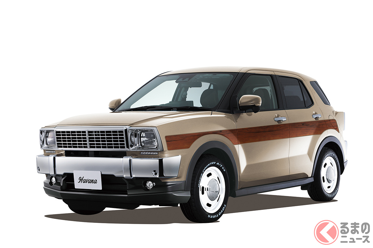 約500万円! “超レトロ仕様”のトヨタ「ライズ」!? カクカク顔×角目ライトの「新モデル」登場! 旧車デザインが良すぎるCal’s Motor「ハバナ フルーティーポップ」登場