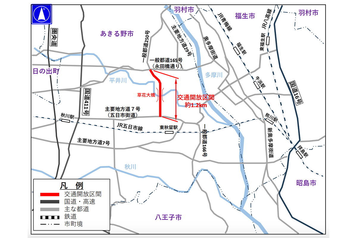 羽村〜あきる野に「新ルート」開通! 激混み国道16号&411号“完全回避”で「五日市街道」まで直結! 完成に「26年もかかった待望の道路」 都道250号の草花大橋が29日に開通