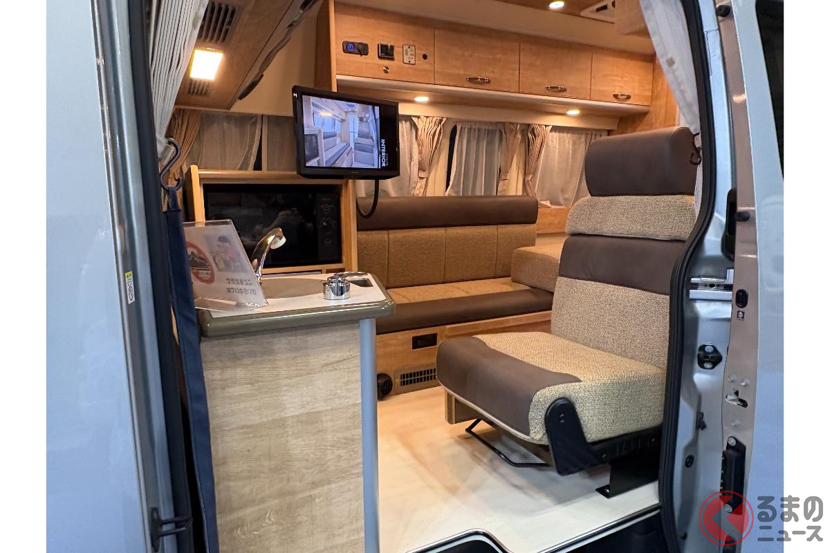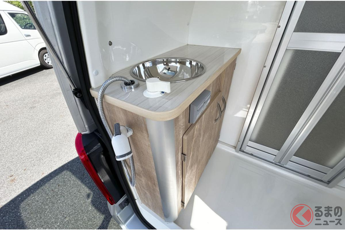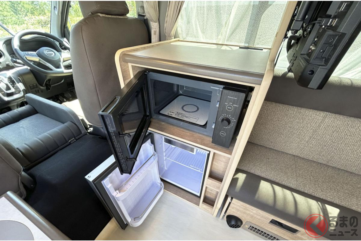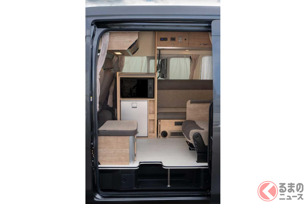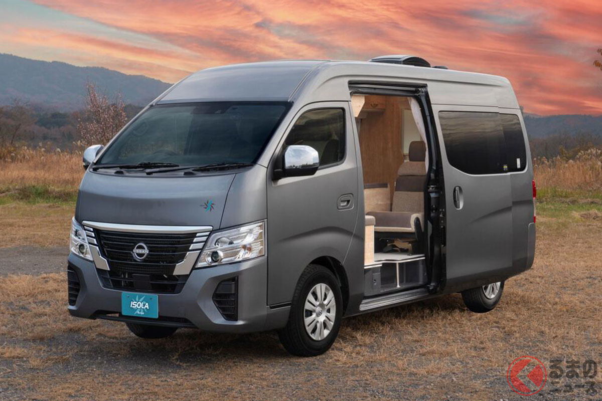 「シャワー室」完備!? 日産「大型ワンボックス商用バン」がスゴい! 全長5m級「ひろびろボディ」に「電子レンジ」「家庭用エアコン」もついてて最高です! レクビィの本格「キャラバン」キャンピングカー「イゾラ」に注目