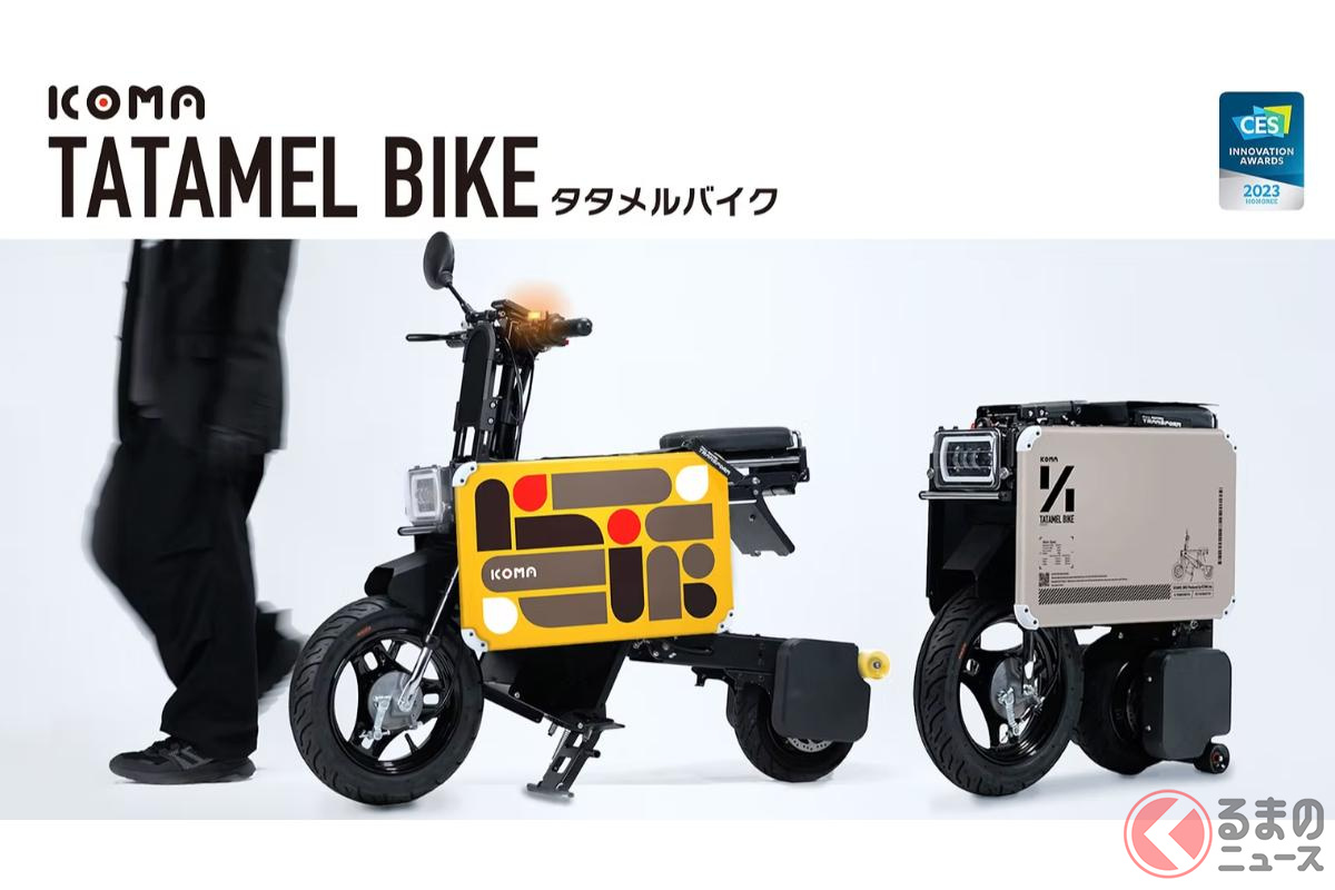 公道を走れる「本格バイク」なのに小さく折り畳める! 新車で買える「タタメルバイク」が凄い! “運べる”機能採用したICOMA「斬新モデル」は安心の“メイド・イン・ジャパン”!