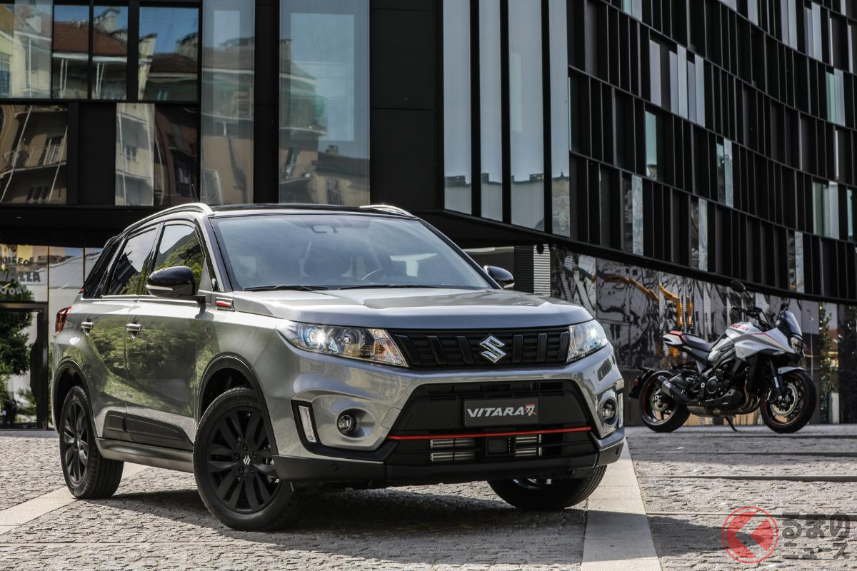 スズキ斬新「“カタナ”SUV」に大注目! “6速MT”×ターボ搭載した「KATANA」ブランドの“本格4WD”! 伝説の「刀」マーク採用で“100台限定”の「ビターラカタナ」欧州モデルが超カッコイイ!