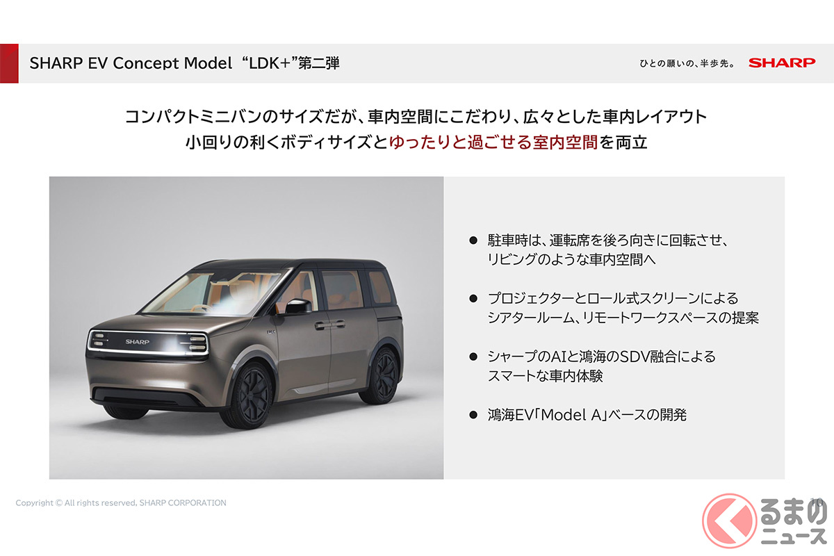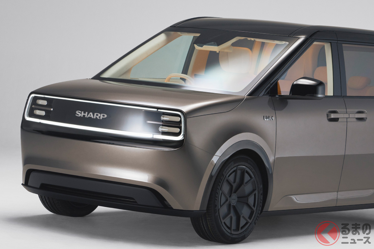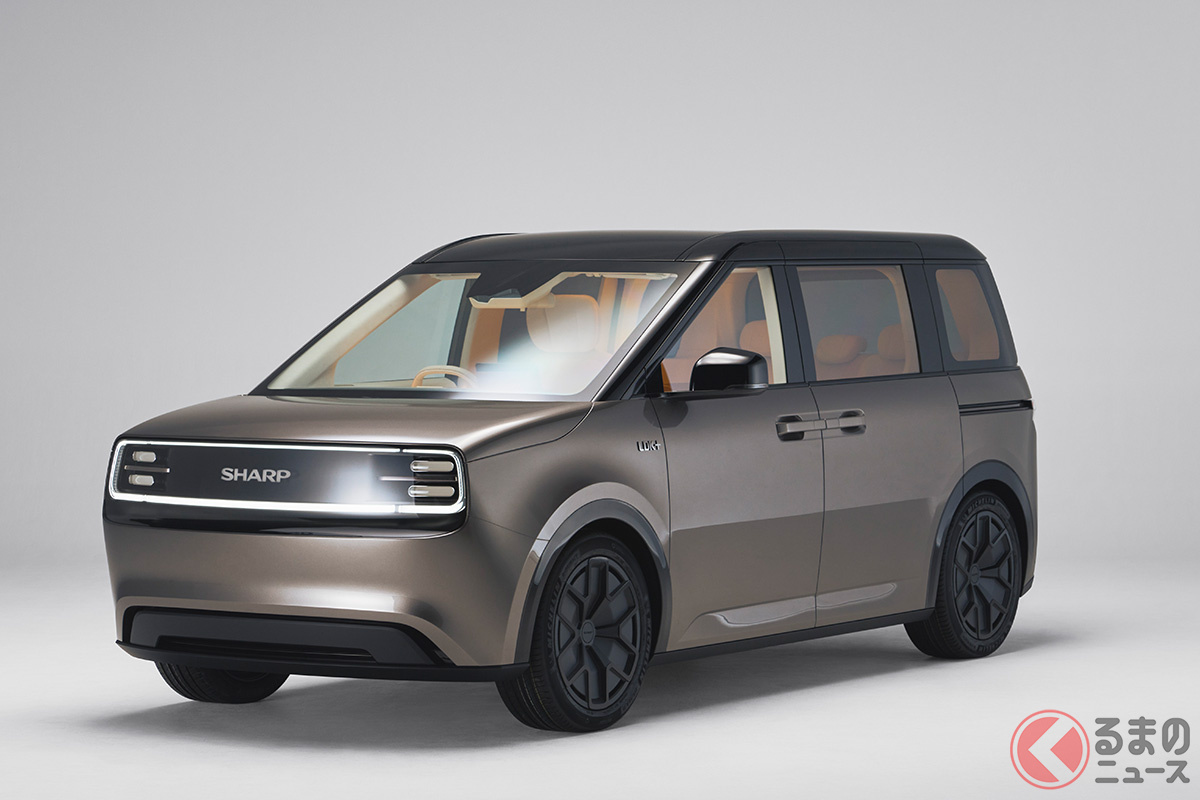 シャープが斬新「コンパクトミニバン」初公開! 全長4.3m級&駐車楽々“回転イス”採用!? 家電メーカーのクルマ、10月末お披露目へ