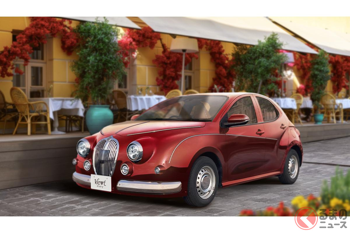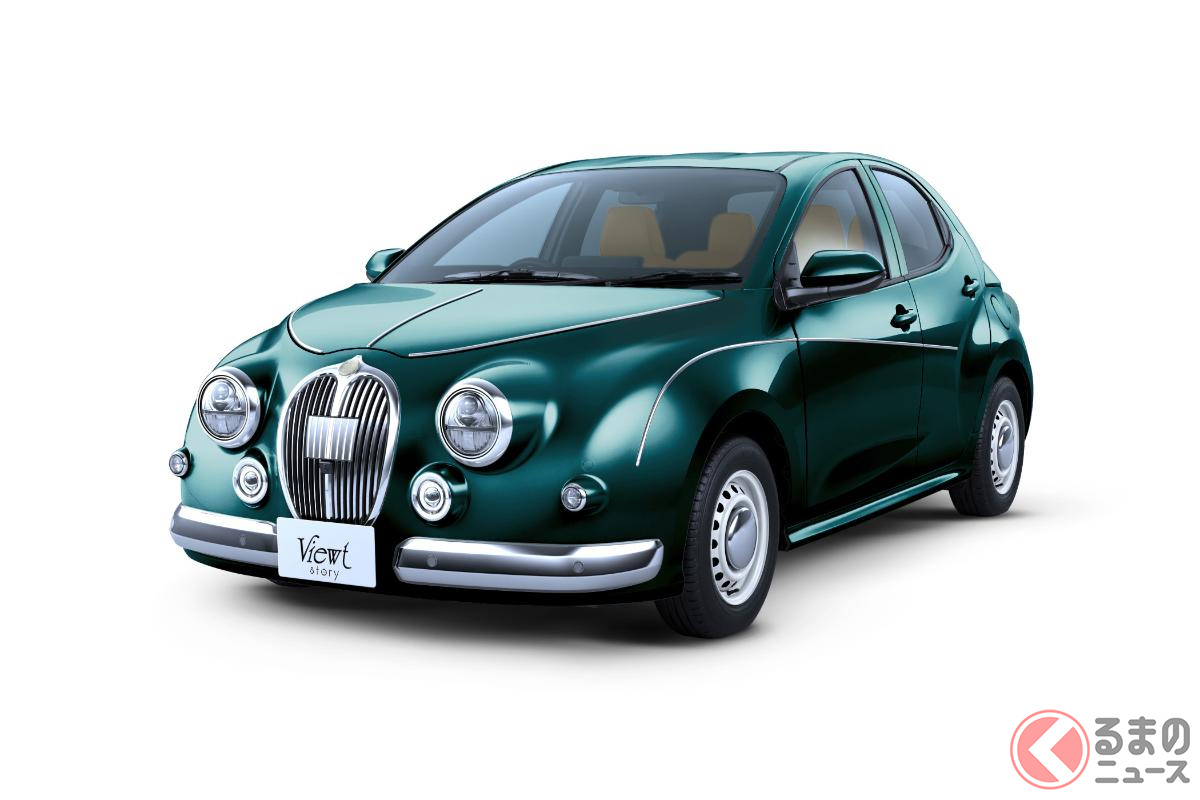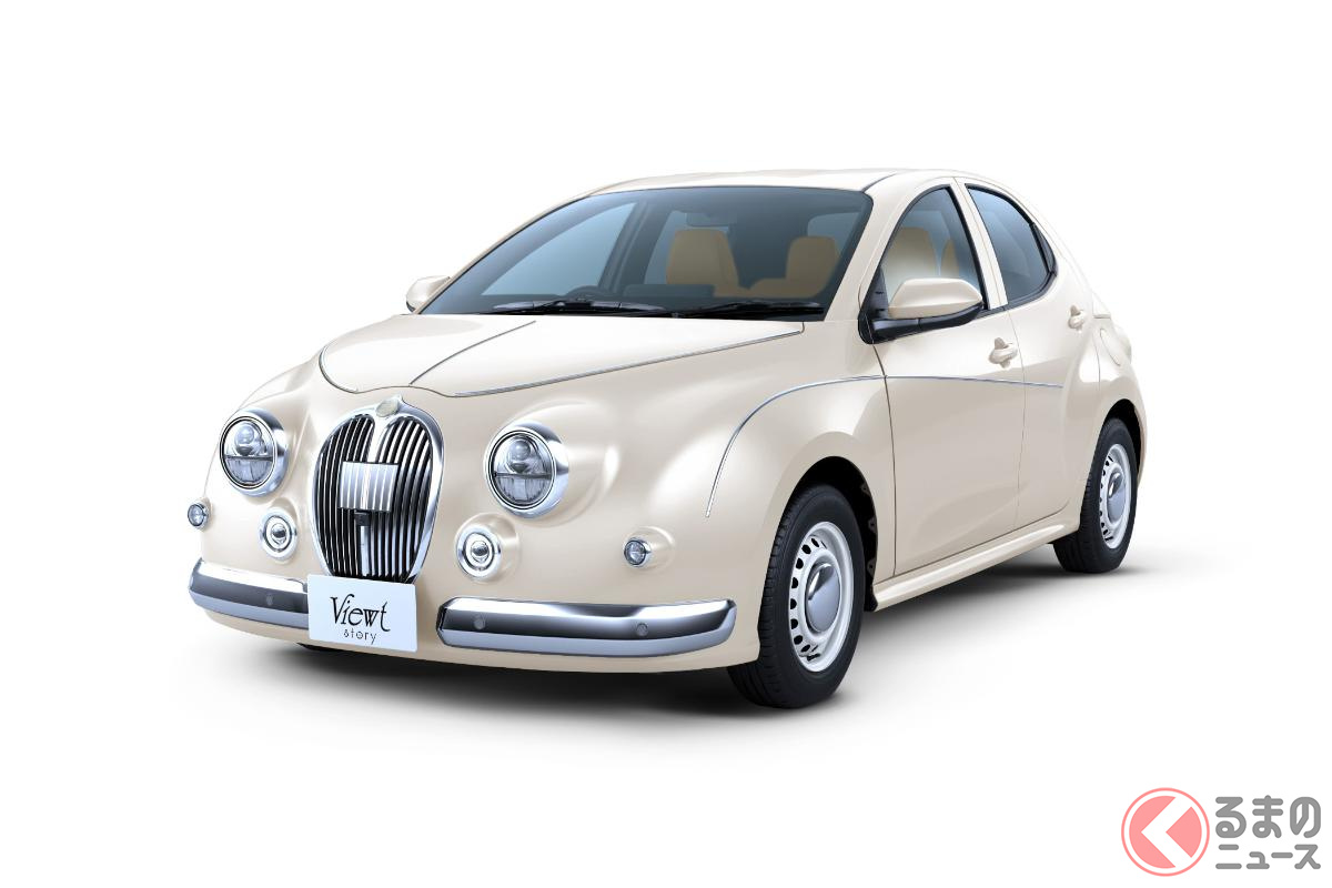 6速MTあり! 国産「ちいさな高級車」がスゴい! “匠”が手がけた「レザー」内装×全長4.1m級で「ほどよいサイズ」! レトロな「キラキラ」顔もカッコいい「“新”ビュートストーリー“ロイヤル”ED」に販売店の反響は!?