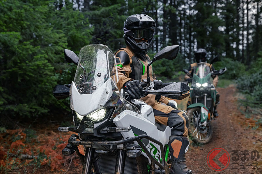 新車約100万円! カワサキから「“新”アドベンチャーバイク」登場!“ラリースタイル”でタフな仕上がりの「KLE500」シリーズを海外市場で発表