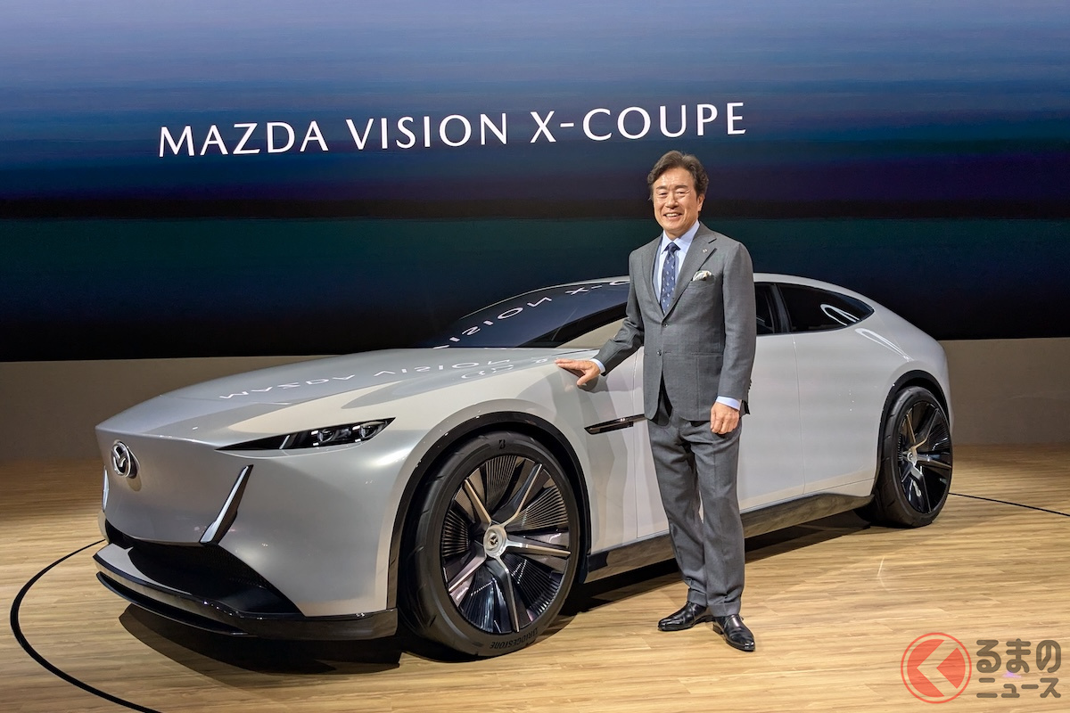 マツダが「VISION X-COUPE」を世界初公開! 「2ローター・ロータリーターボ」のPHEVスポーツクーペ! CO2回収技術も搭載