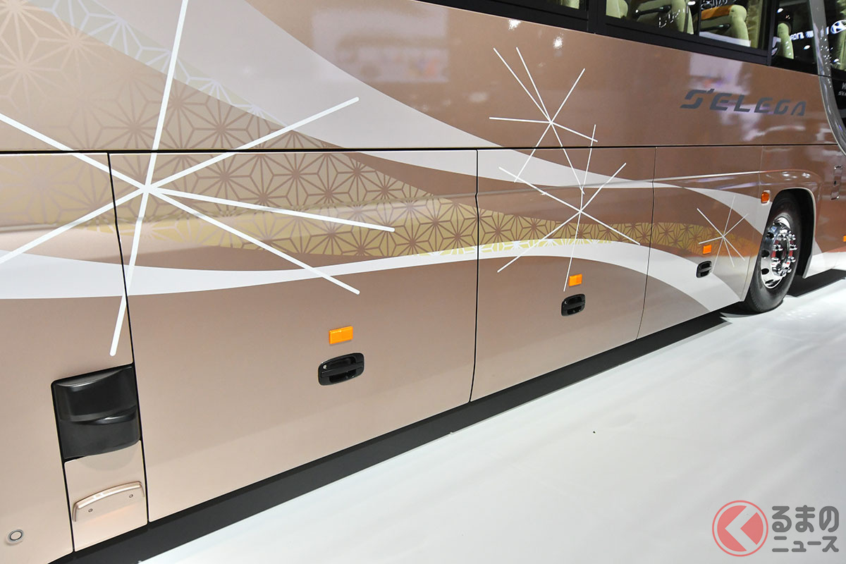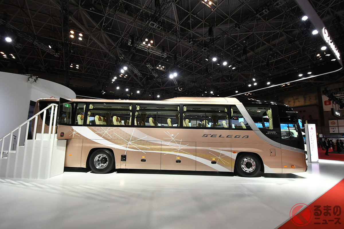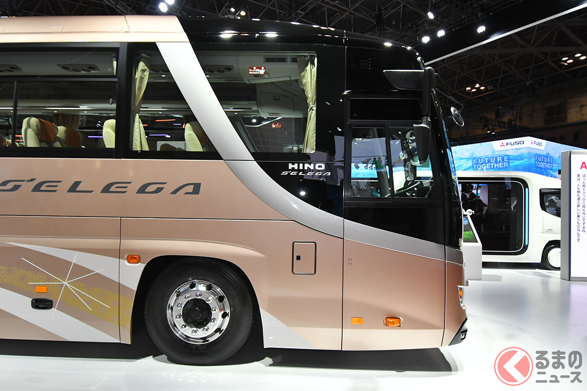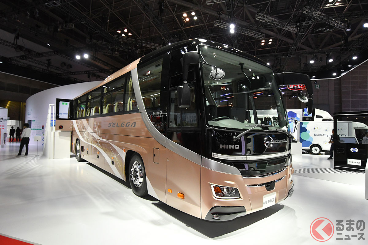 日野自動車は開幕した「ジャパンモビリティショー2025」で、大型観光バスの「セレガ」新モデルを実車初公開しました。