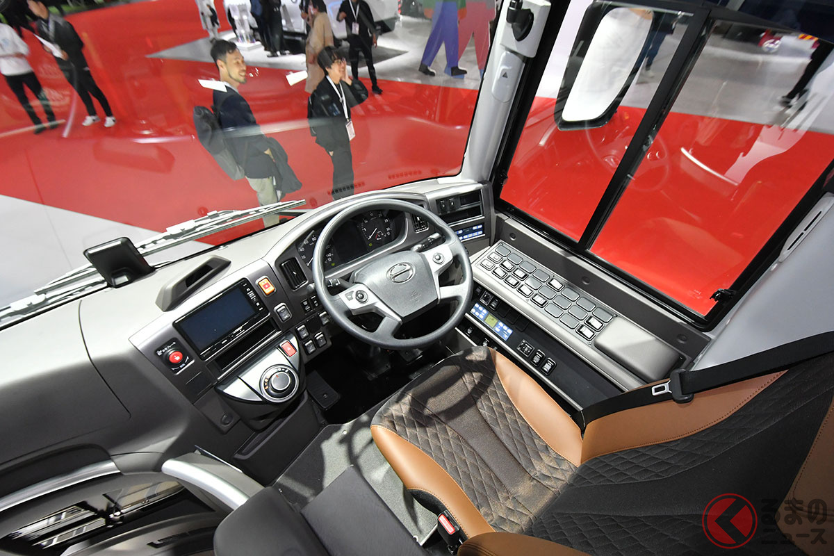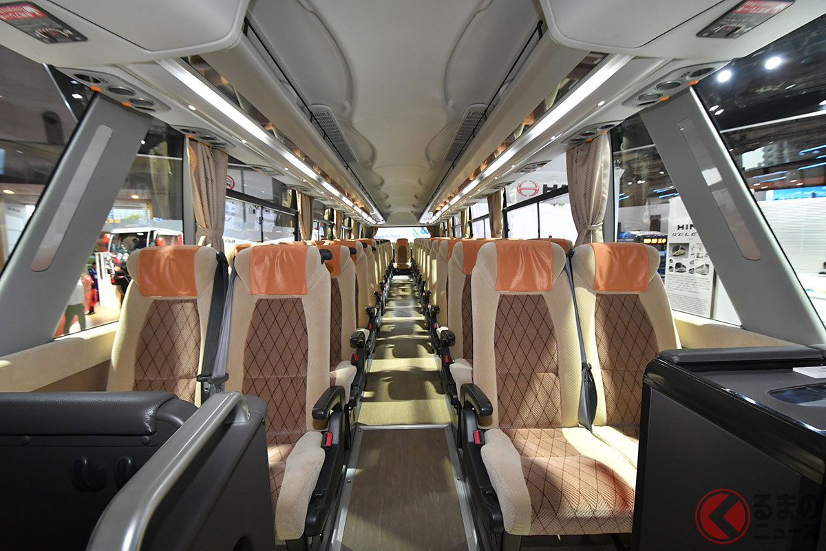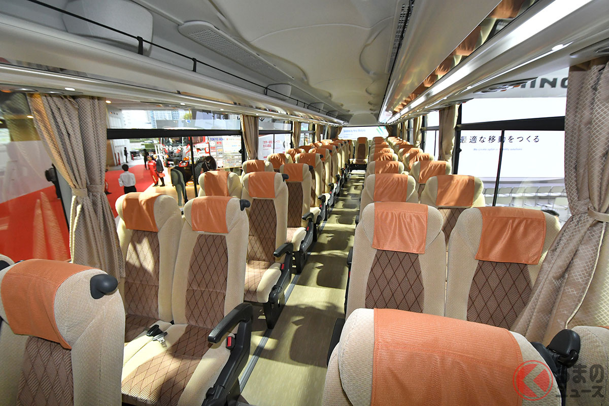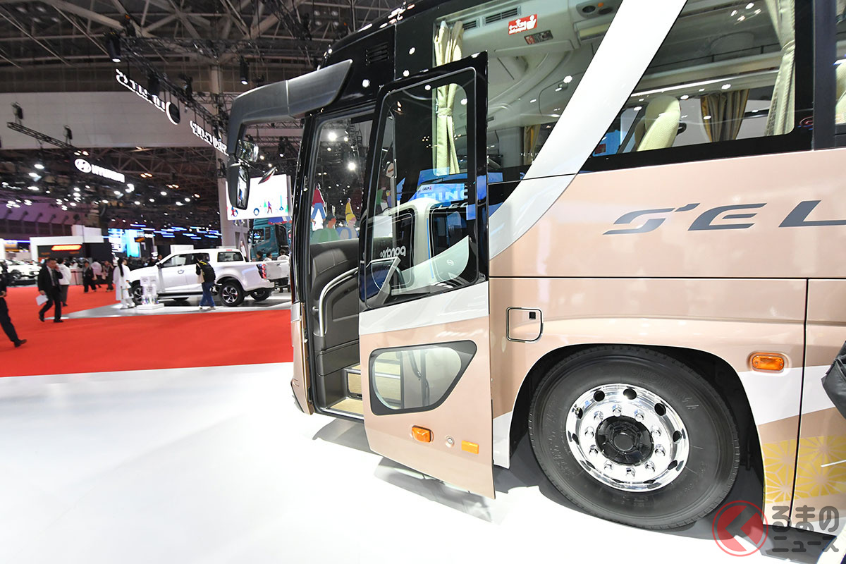 日野自動車は開幕した「ジャパンモビリティショー2025」で、大型観光バスの「セレガ」新モデルを実車初公開しました。