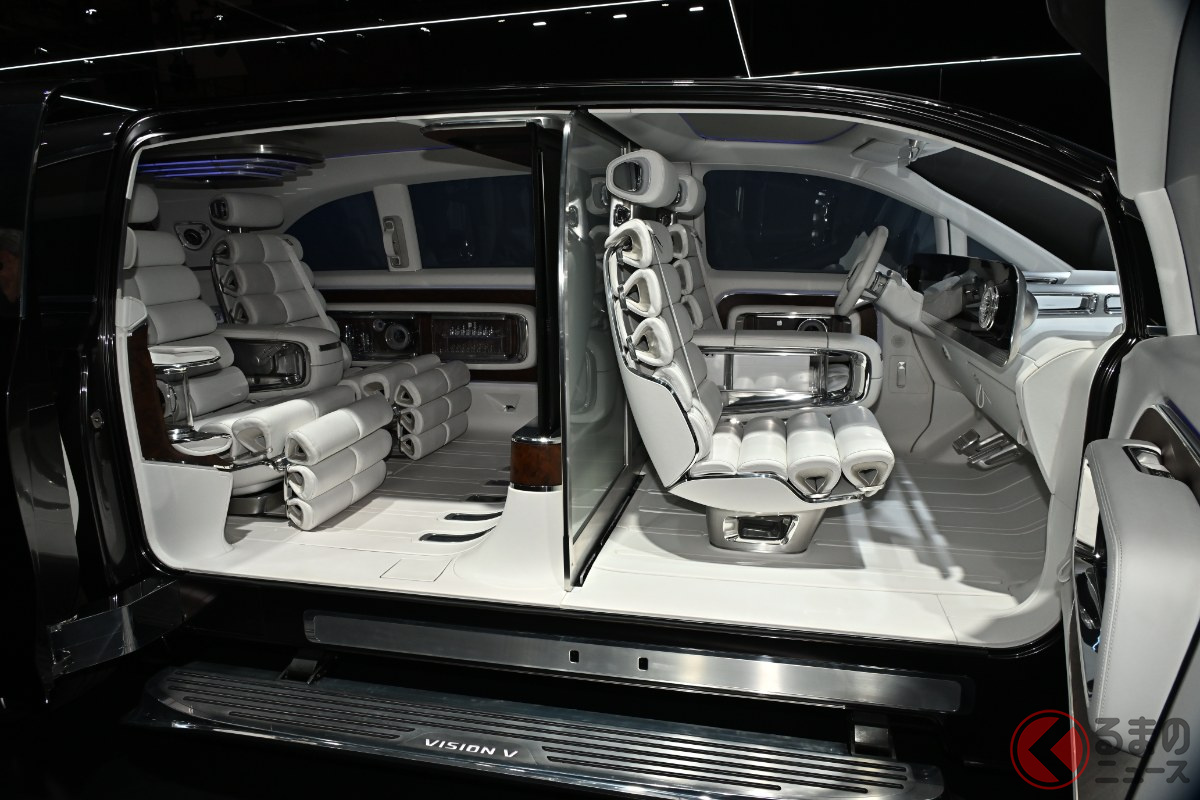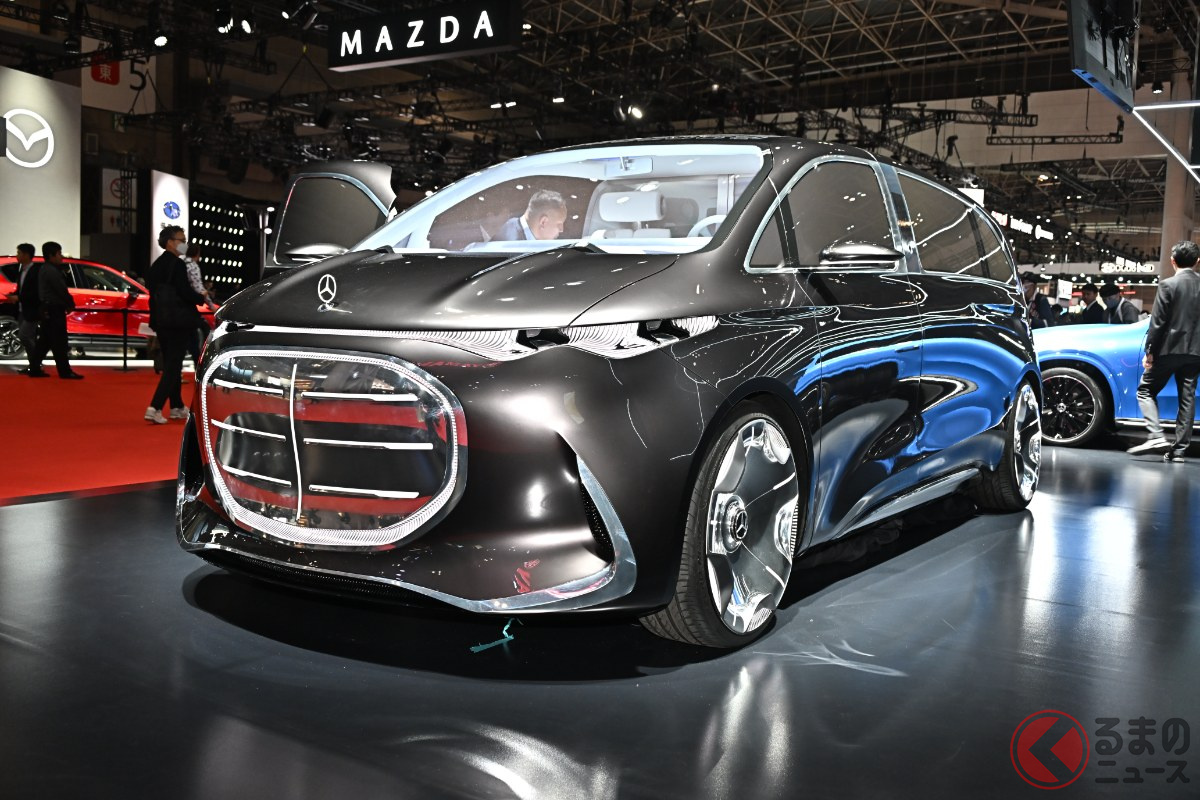 ライバルは「次世代LS」!? 新「“高級”ミニバン」日本初公開! 極上“ラウンジ”×巨大スクリーン採用! 次期型「Vクラス」!? メルセデス・ベンツを示すコンセプト「ヴィジョンV」登場