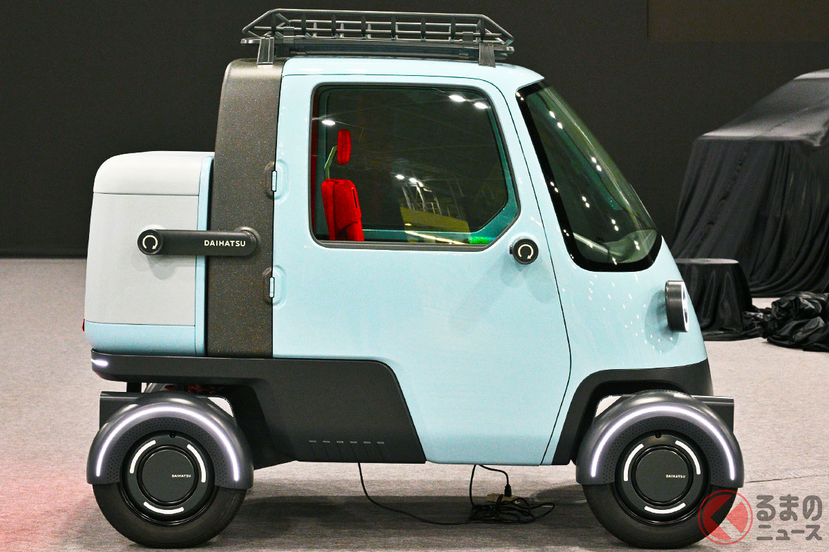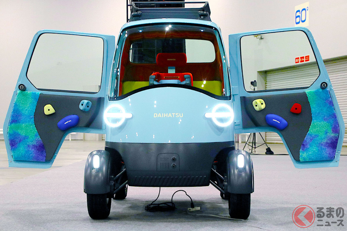 全長2.2m! ダイハツ新「ミゼットX」世界初公開! めちゃ斬新カワイイ「“3人乗り”ミニカー」に期待大! 「デザインの意図」や“今後の展開”についてデザイナーに聞いた!
