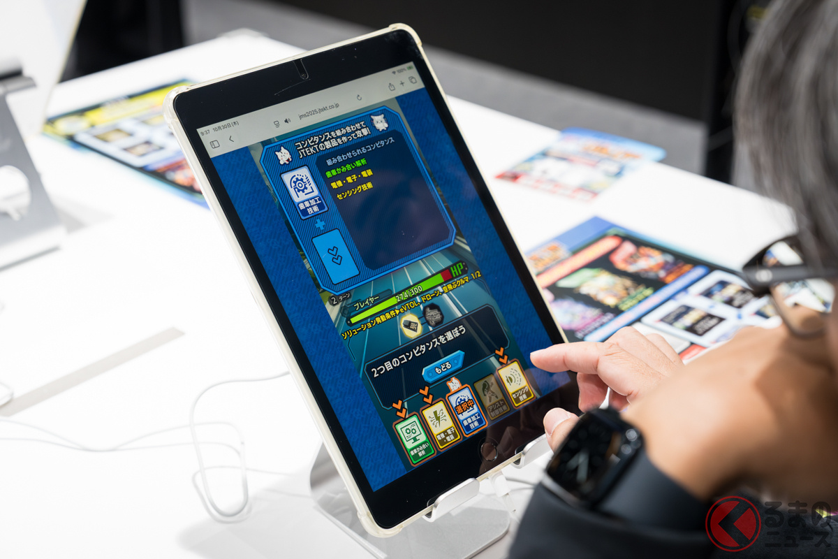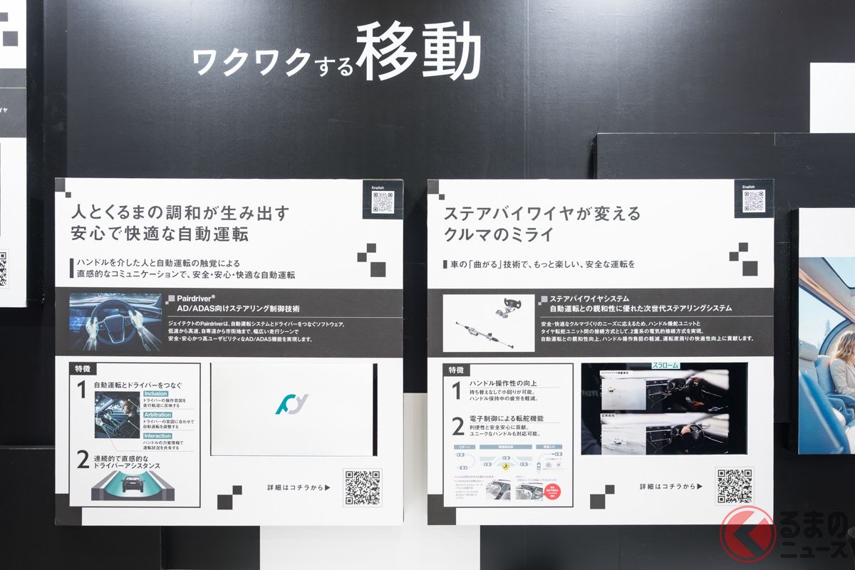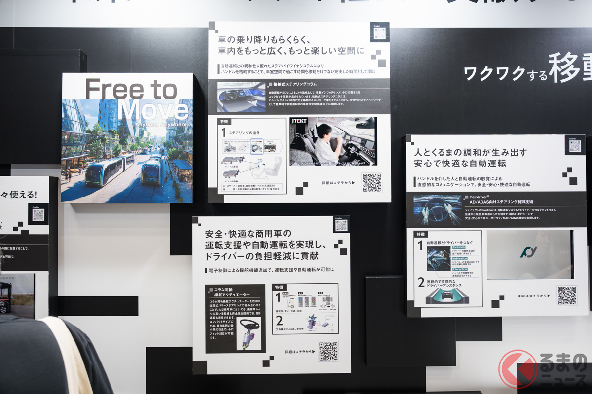 「ジャパンモビリティショー2025」に出展中のジェイテクトは、同社が得意とするステアリング技術を中心とした最先端技術を紹介しています。VRゴーグルをかけての操舵(そうだ)体験や、ゲームで同社の技術を学べる参加型展示も行われました。