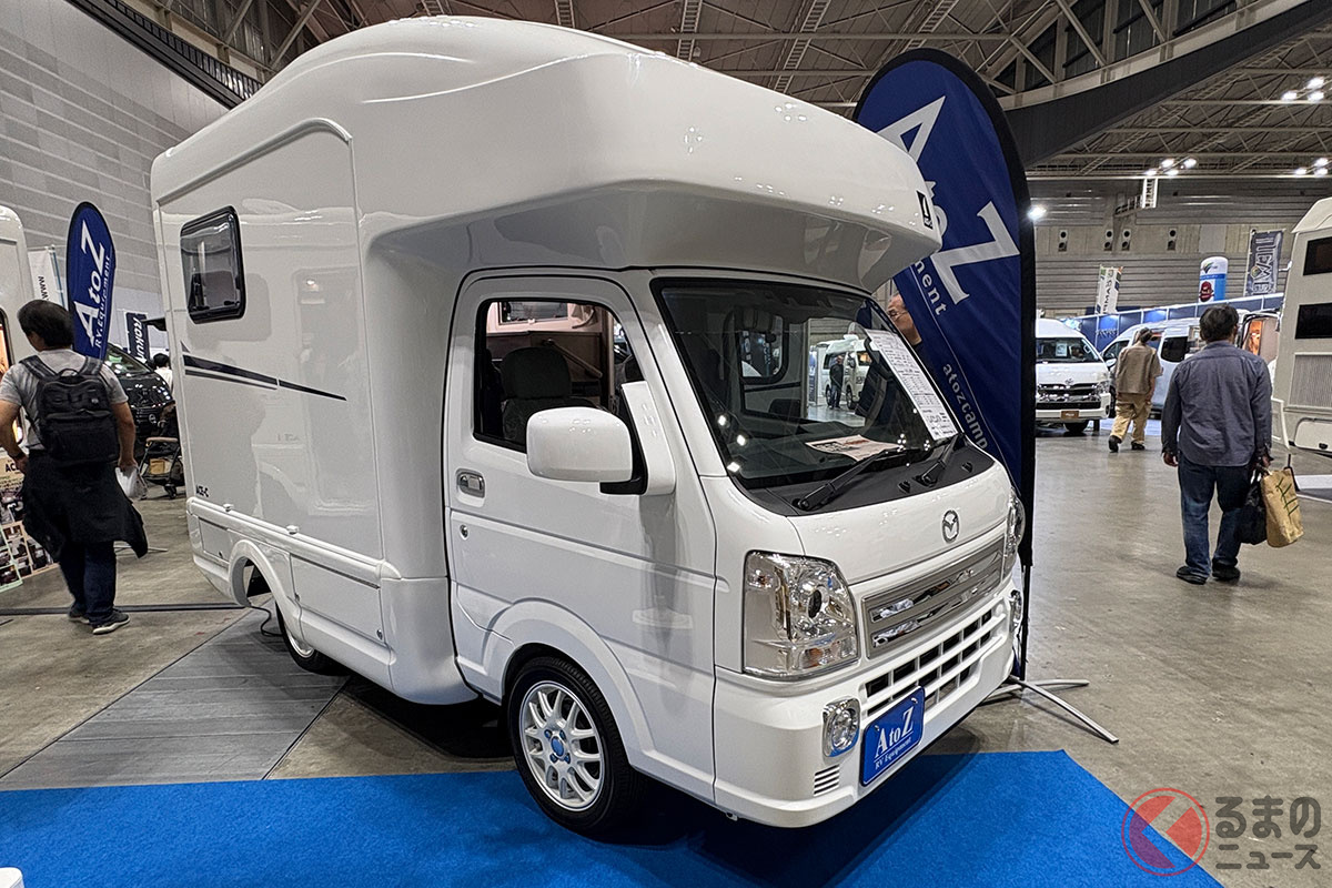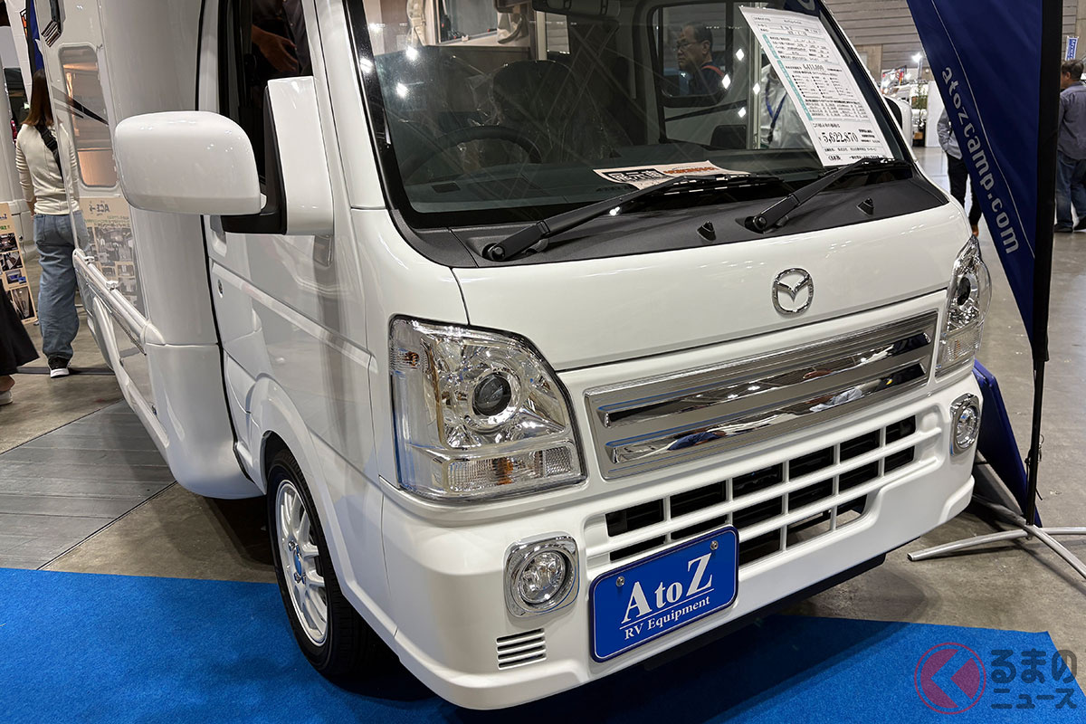 マツダの「“大人4人寝られる”軽トラ」がスゴい! 全長3.7mの「めちゃちいさいサイズ」に立って歩ける「ひろびろ室内」確保! AtoZのスクラムトラック“小型キャンパー”「ACE-C」に注目
