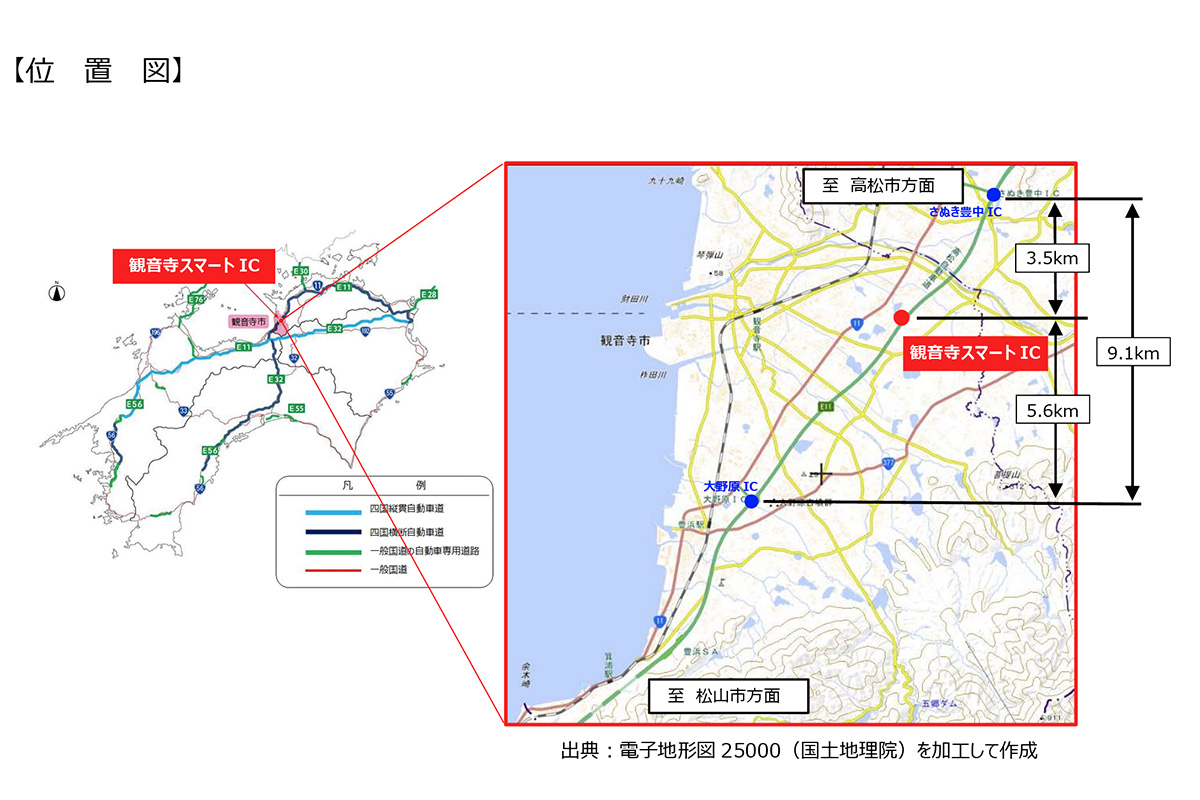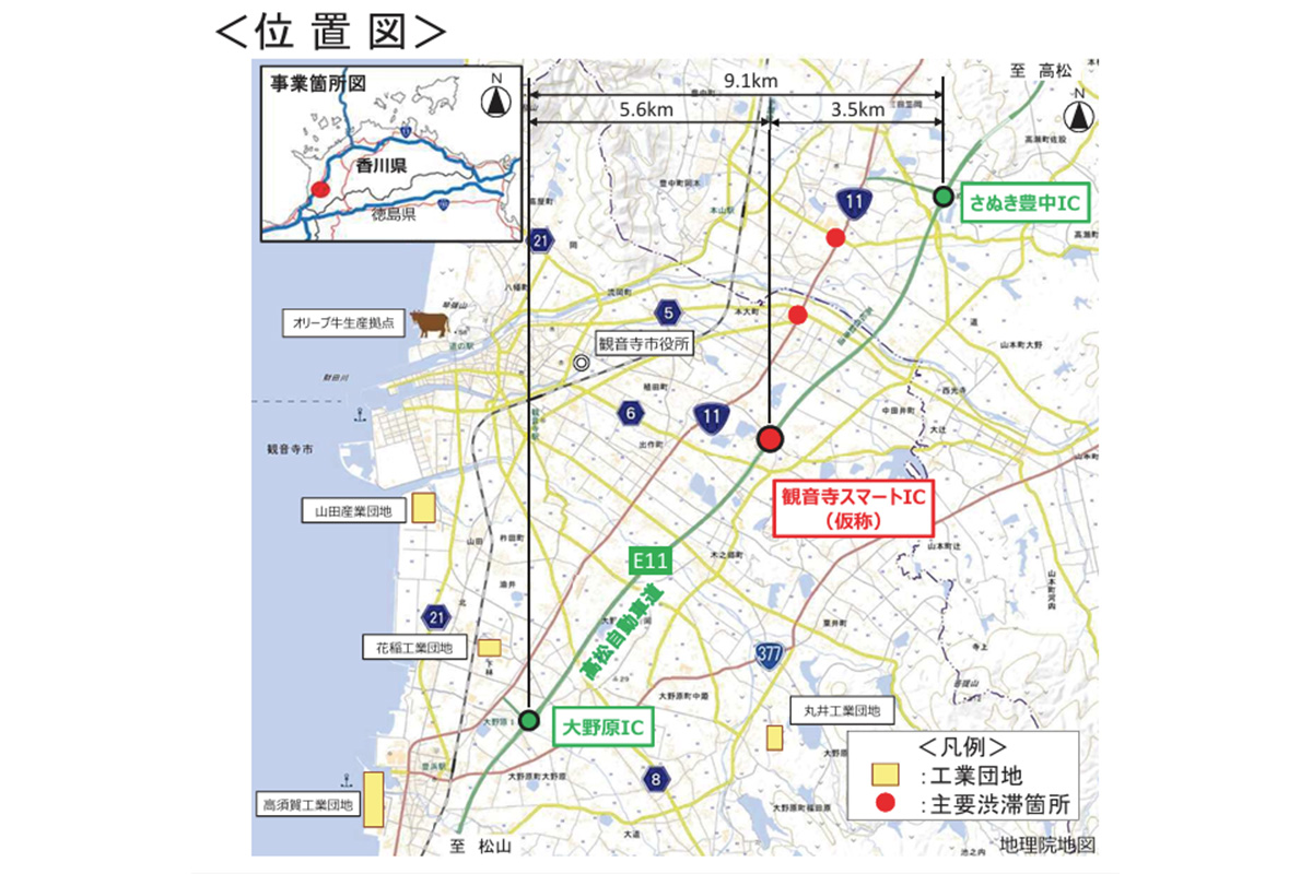 松道さぬき豊中~大野原IC間に「新インターチェンジ」誕生! 「オリーブ牛」輸送が約4分短縮!?「観音寺スマートIC」26年夏開通でどう変わる?