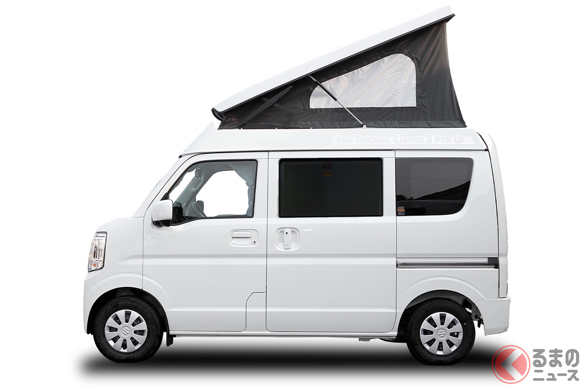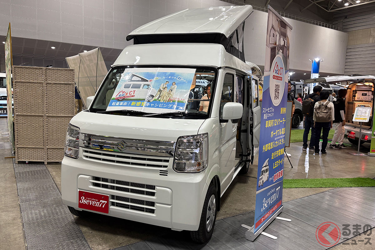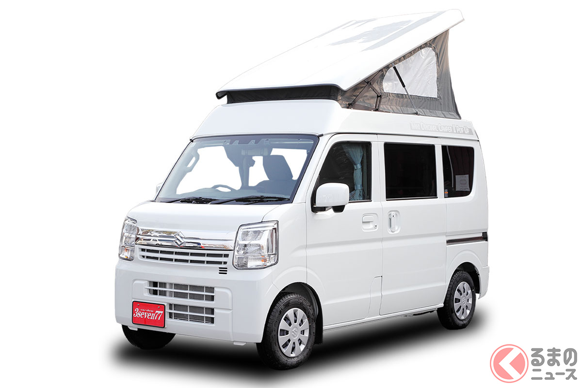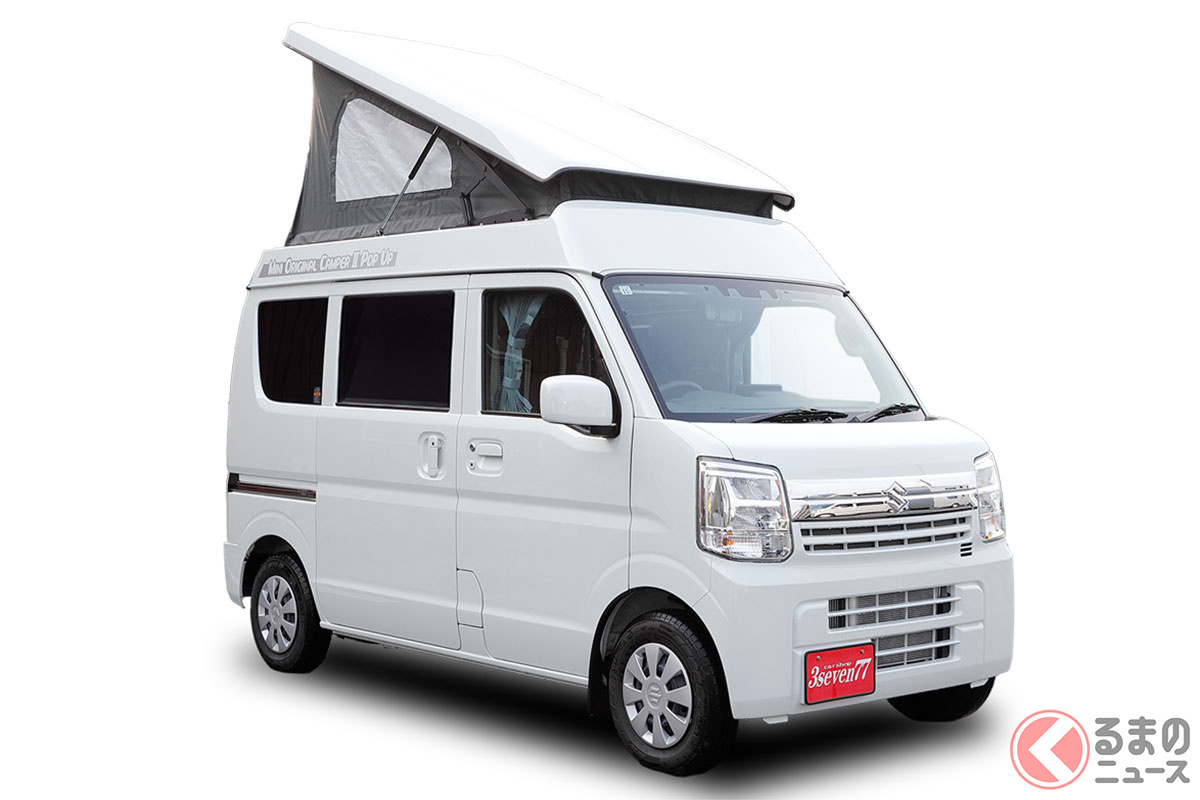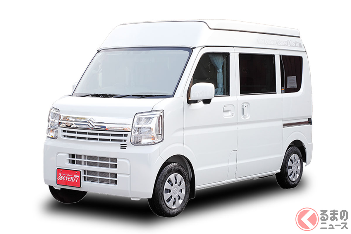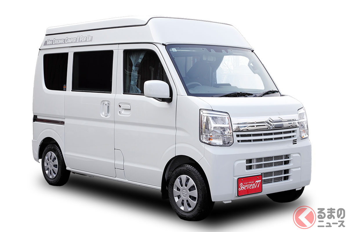 スズキの軽バン“エブリイ”に「家族4人寝られる」!? 全長3.4m級「ちいさいサイズ」で「ひろびろ寝室」完備! “快適”ターボも選べるカーショップスリーセブンの軽キャンパー「モックII CT」に注目