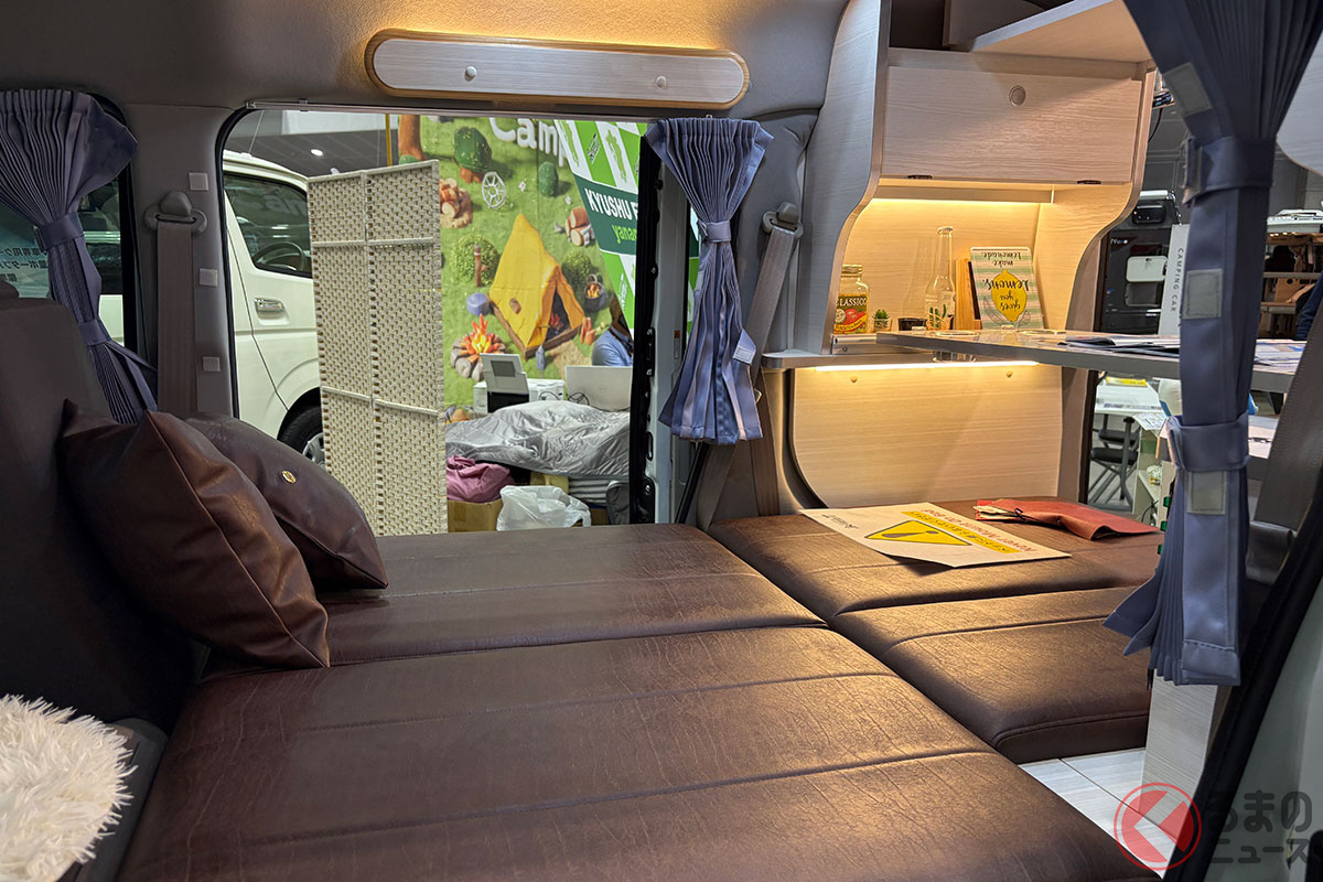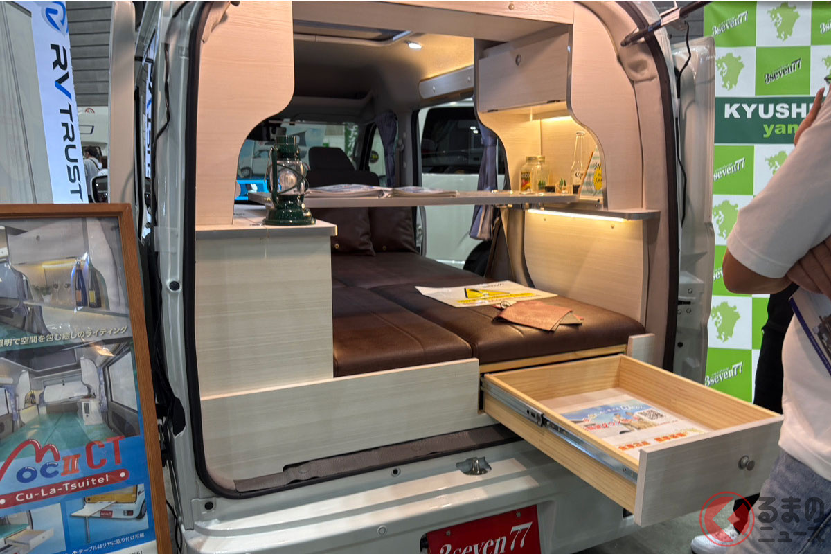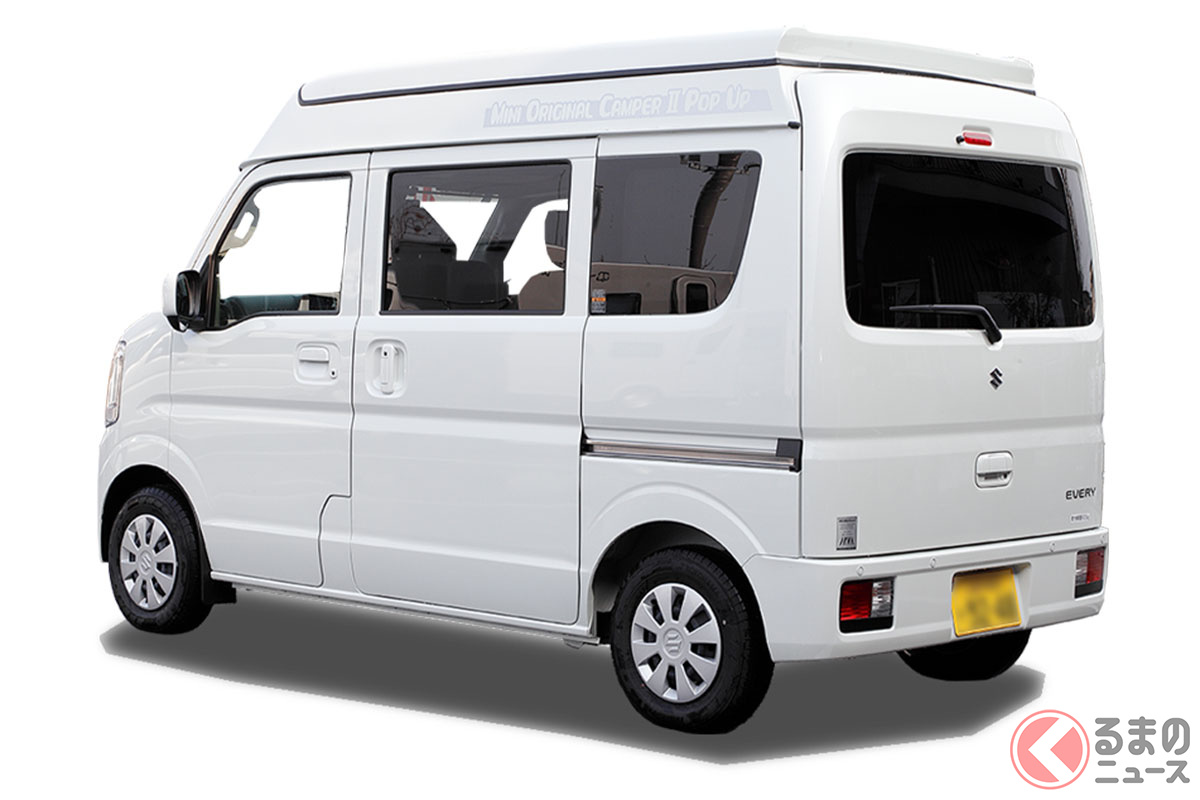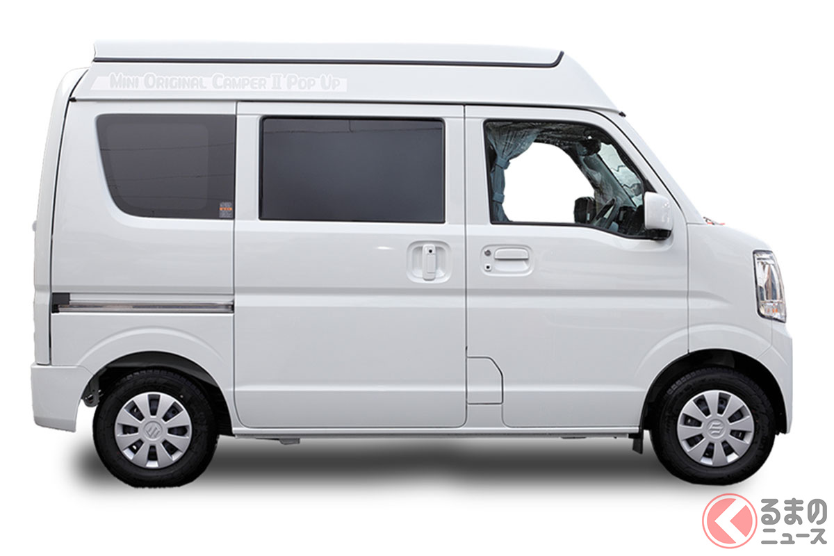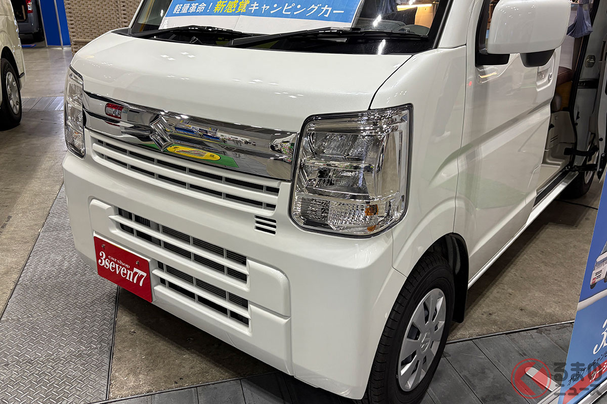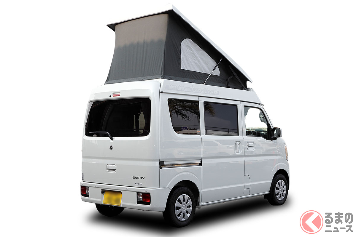 スズキの軽バン“エブリイ”に「家族4人寝られる」!? 全長3.4m級「ちいさいサイズ」で「ひろびろ寝室」完備! “快適”ターボも選べるカーショップスリーセブンの軽キャンパー「モックII CT」に注目